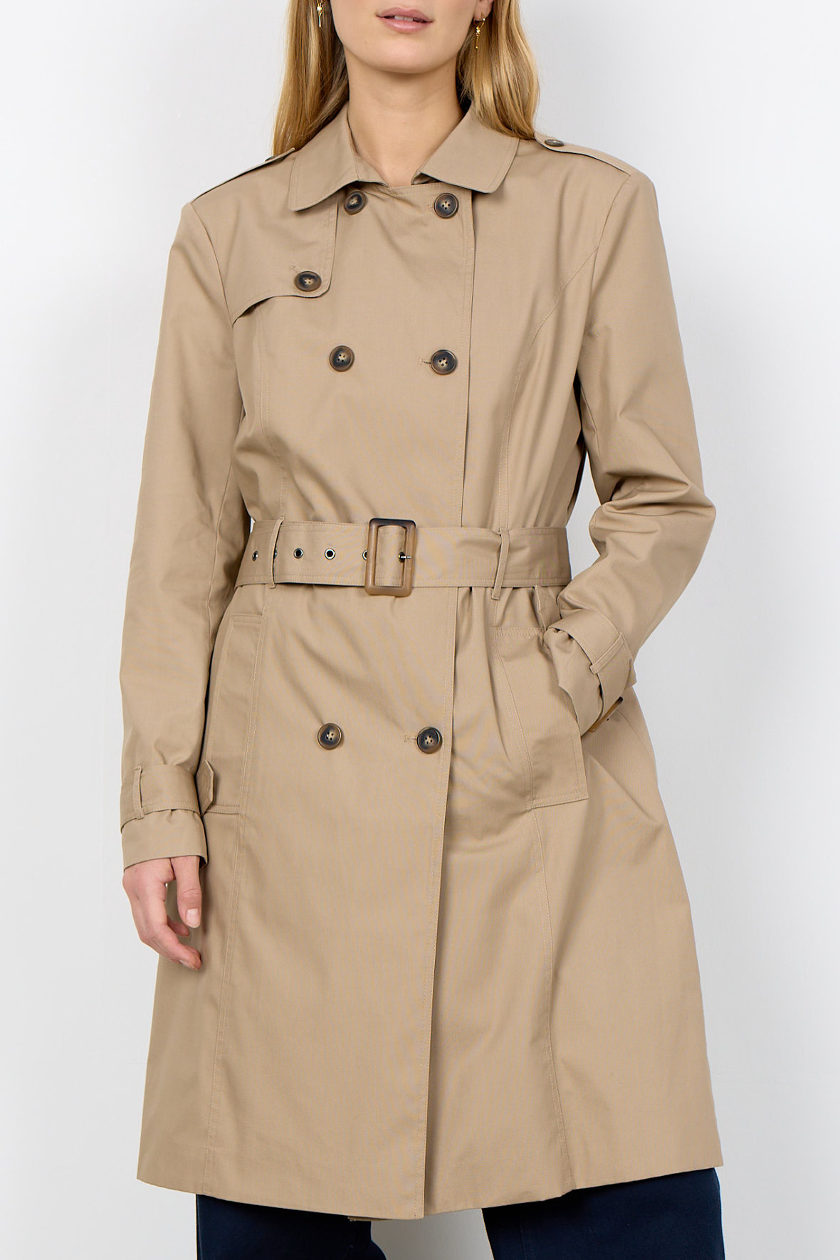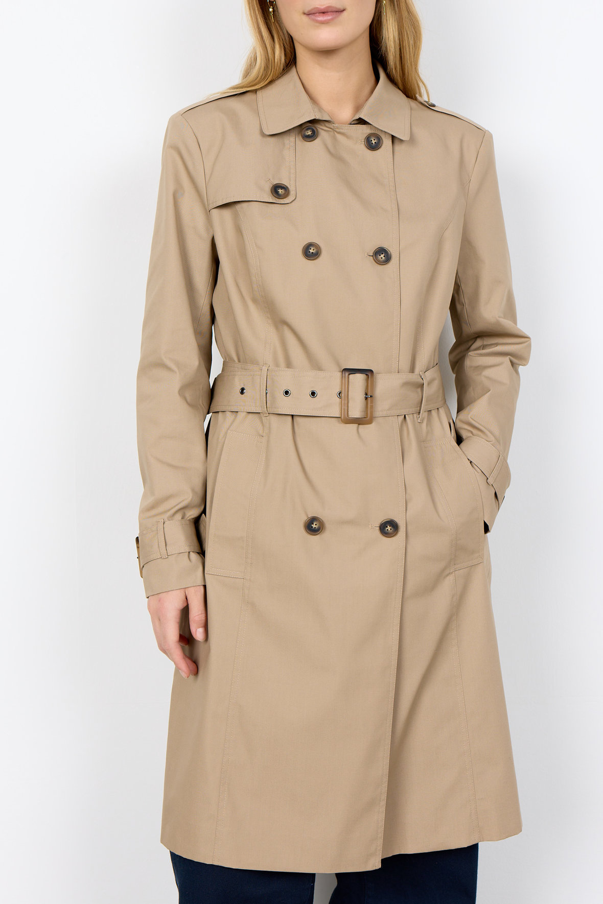 Soyaconcept sc-Lora 5 bringer Dig sikkert igennem foråret og sommeren, den har ingen mellemforing og det gør den perfekt til årstiden. En cotton coat/trench coat der er helt klassisk lavet som man forventer at den skal være, med knapper, bælte, revers, stropper og manchetspænder. Den har lommer. Den kan følge Dig igennem mange år, hvilket bare gør prisen endnu mere attraktiv.