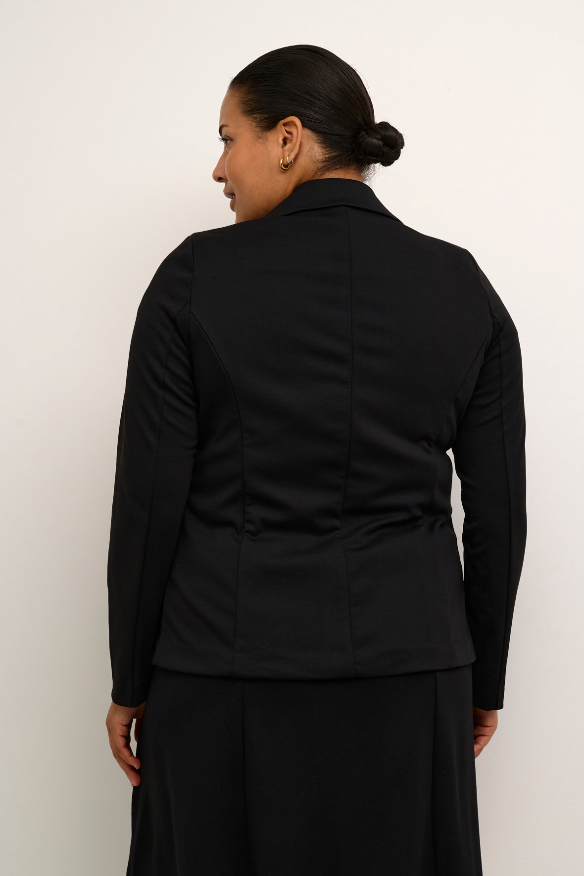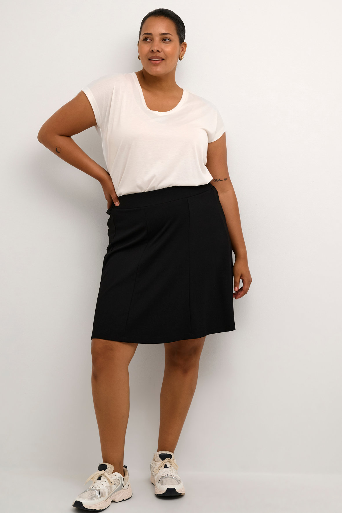 Så skal der ske noget, her kigger du på en multianvendelig nederdel til plus size kvinder. Kaffe Curve har lavet den til blazeren og anvender du den for sig hører du ikke noget fra mig. KcJada Jersey Skirt er i den her lækre strækkvalitet du ikke vil være foruden. Den har lodrette paneler der sikrer den gode figur, og bred flad elastisk elastik i livet sætter dig i stand til at bære den med en tæt bluse ved maven. Den har en god vidde og føles rigtig rar. Den er genial når varmen tager fat og du alligevel vil se skarp ud med blazer til.