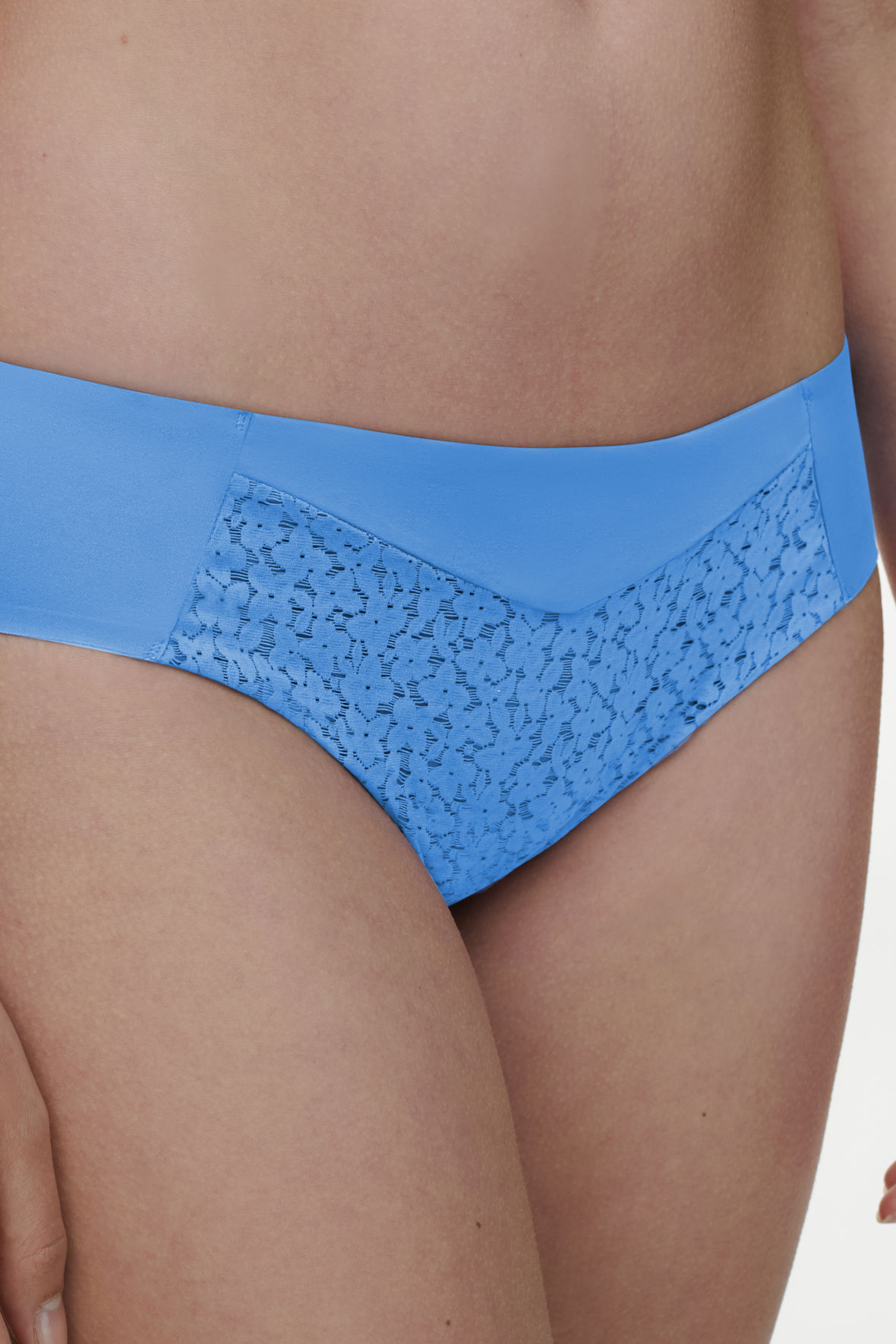 Chantelle Norah tai trusse i flot ny farve. Den viderefører stafetten fra det tidligere Femilet, EasyFeel serien har fokus på bløde detaljer der gør hele forskellen og er Øko-Tex certificeret. Tai trussen her er med limede kanter og er sømløse samt er med bomulds kile i bunden. En trusse der på trods af blonden foran er helt usynlig under tætsiddende tøj. Den er lavet så den er uigennemsigtig. Klassisk tai snit med lidt lavere talje, smalle sider/høje ben skæringer samt god dækning af numsen.