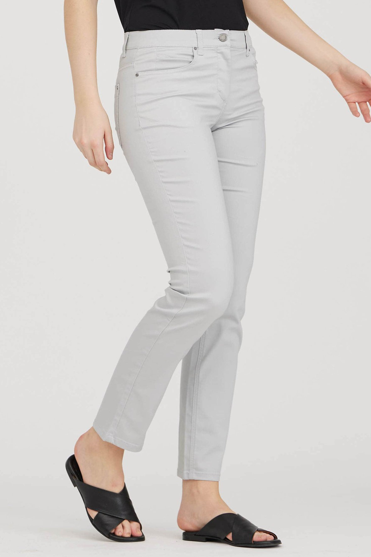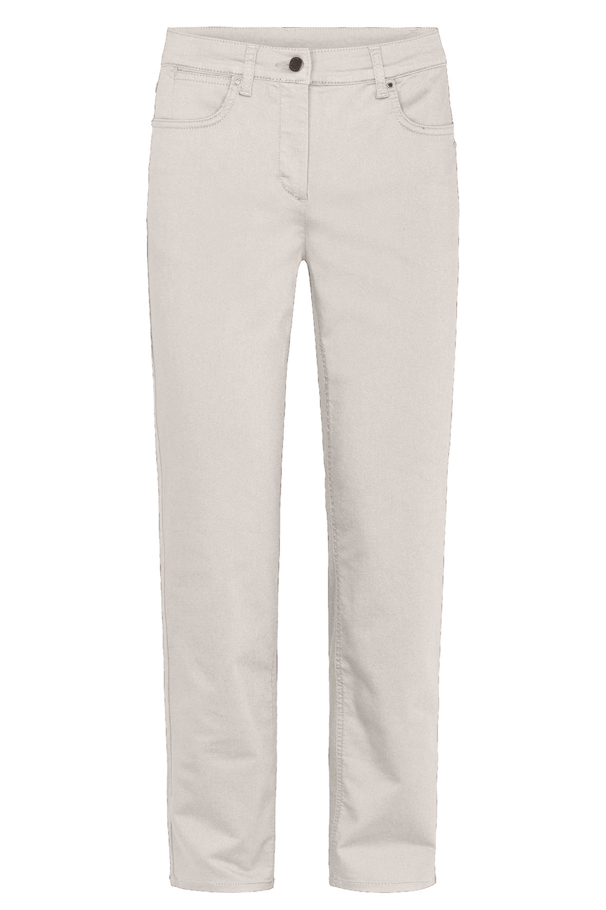 Laurie Charlotte regular i medium length og farven grey sand (sandfarvet). Et par bukser der har mere traditionel elastisk linning der er helt glat og er med bæltestropper, de er lavet med knap, gylp og lynlås så de sidder dejligt på kroppen - frihed uden gener kunne man fristes til at sige. Ensfarvet twill og med tone i tone stikninger. Let bomuldskvalitet med stræk - en rar oplevelse mod huden. De har tre forlommer og to baglommer så også her traditionel som five pocket. En jeans fremstillet uden skadelige kemikalier, indeholder økologisk bomuld samt er Øko-Tex certificeret og produceret i Europa. Samme pasform hver gang også plus size.