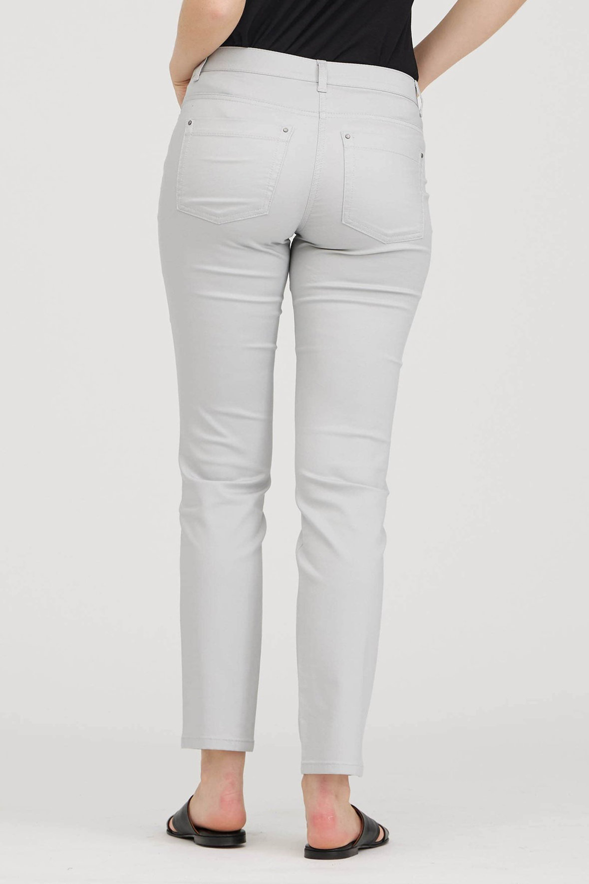 Laurie Charlotte regular i medium length og farven grey sand (sandfarvet). Et par bukser der har mere traditionel elastisk linning der er helt glat og er med bæltestropper, de er lavet med knap, gylp og lynlås så de sidder dejligt på kroppen - frihed uden gener kunne man fristes til at sige. Ensfarvet twill og med tone i tone stikninger. Let bomuldskvalitet med stræk - en rar oplevelse mod huden. De har tre forlommer og to baglommer så også her traditionel som five pocket. En jeans fremstillet uden skadelige kemikalier, indeholder økologisk bomuld samt er Øko-Tex certificeret og produceret i Europa. Samme pasform hver gang også plus size.