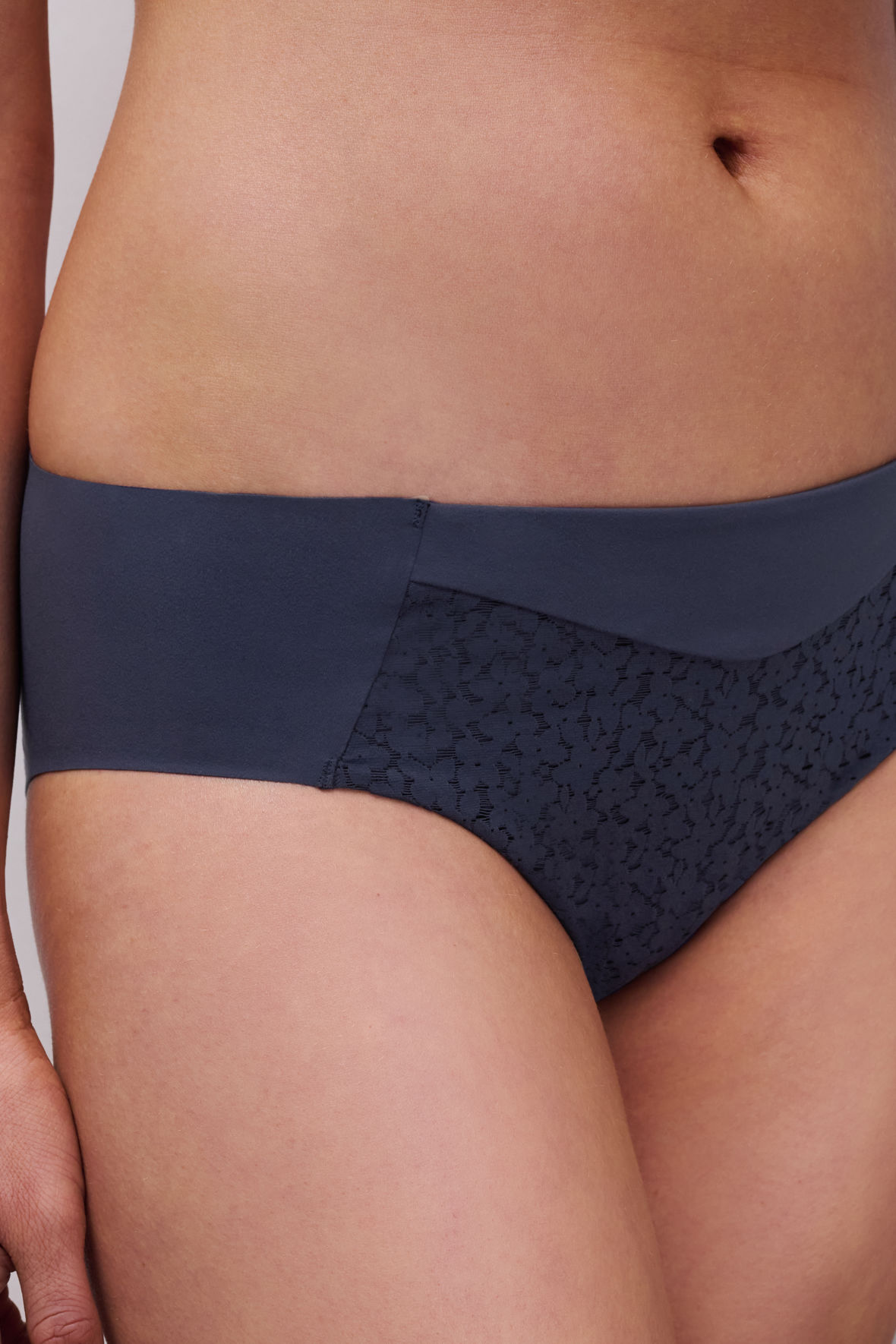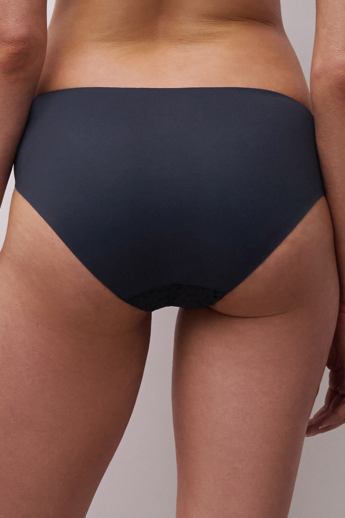 Chantelle Norah tai trusse i flot ny farve. Den viderefører stafetten fra det tidligere Femilet, EasyFeel serien har fokus på bløde detaljer der gør hele forskellen og er Øko-Tex certificeret. Tai trussen her er med limede kanter og er sømløse samt er med bomulds kile i bunden. En trusse der på trods af blonden foran er helt usynlig under tætsiddende tøj. Den er lavet så den er uigennemsigtig. Klassisk tai snit med lidt lavere talje, smalle sider/høje ben skæringer samt god dækning af numsen.