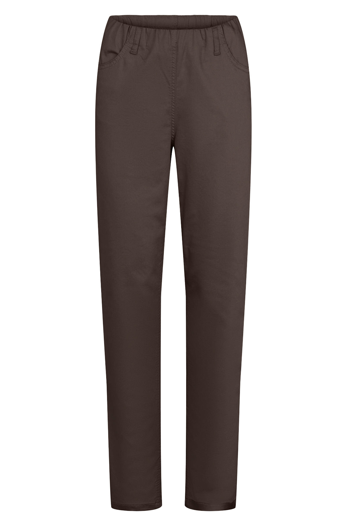 Laurie Kelly regular i medium length og i den flotte brune farve. Et par bukser der er der har flad bred elastik i livet samt er med bæltestropper, de er lavet uden knap, gylp og lynlås så de sidder dejligt på kroppen - frihed uden gener kunne man fristes til at sige. Ensfarvet uden slid og med tone i tone stikninger. Let bomuldskvalitet med stræk - en rar oplevelse mod huden. De har forlommer men er uden baglommer, og nu vi er ved bagen har den fået indsnit der får den til at sidde så flot. En jeans fremstillet uden skadelige kemikalier, indeholder økologisk bomuld samt er Øko-Tex certificeret og produceret i Europa. Samme pasform hver gang også plus size.