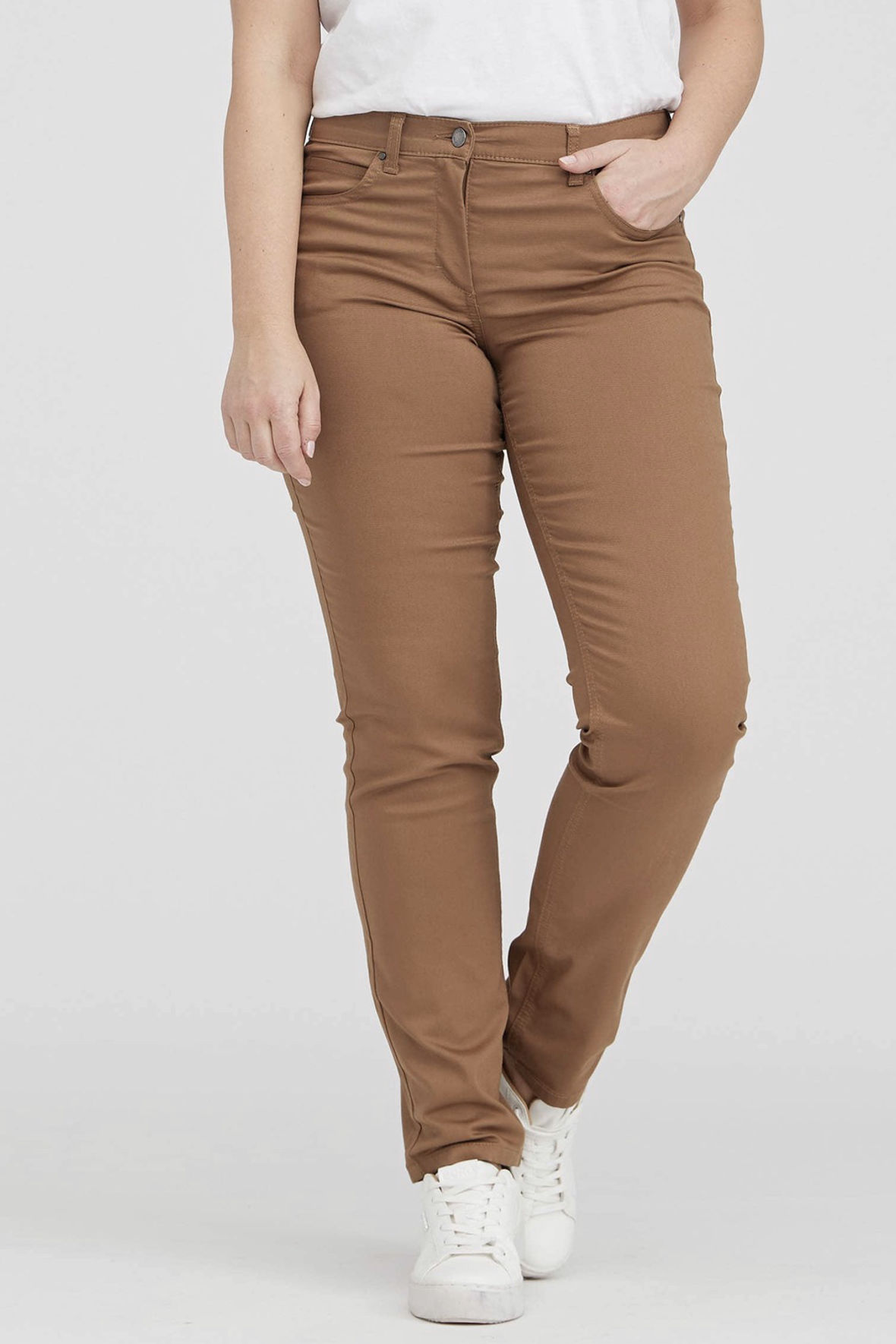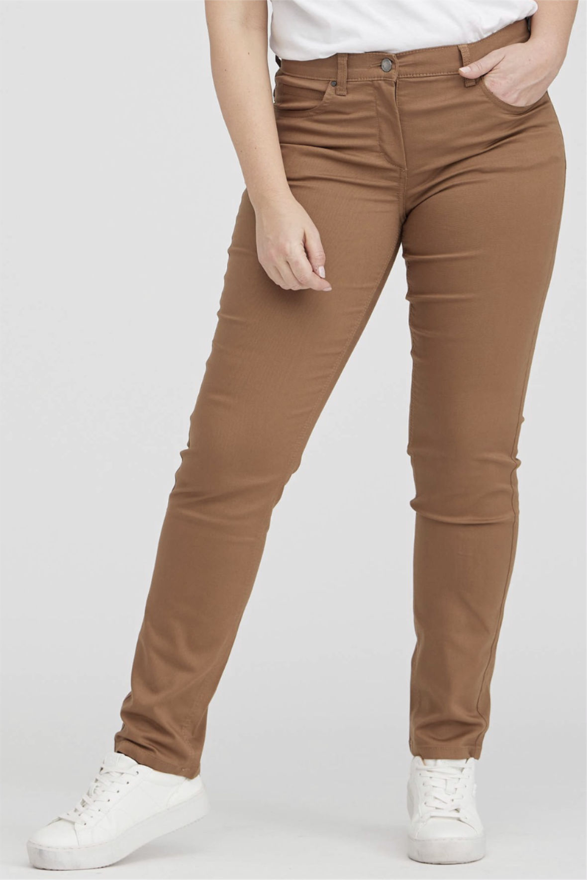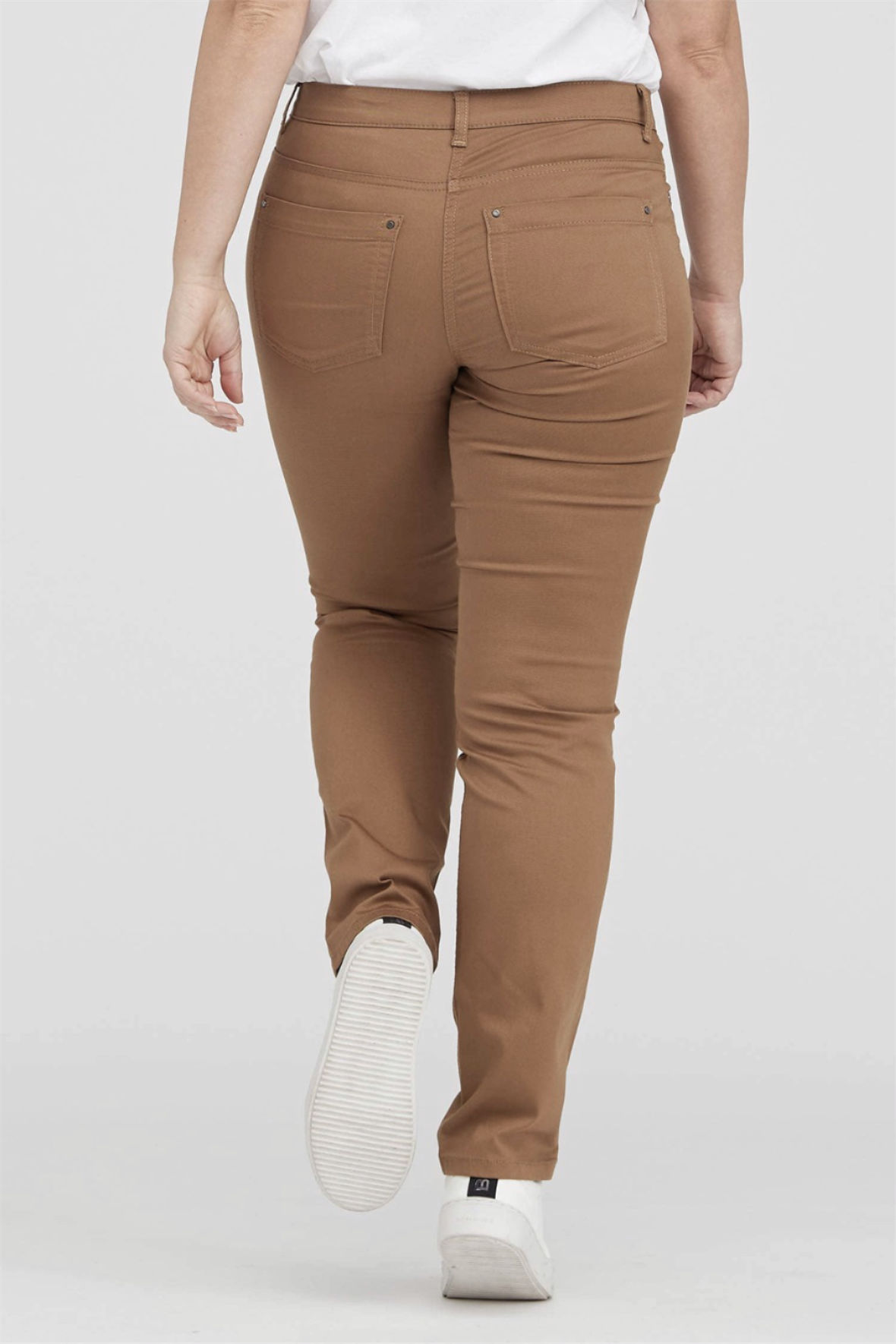 Laurie Charlotte regular i medium length og farven sika der er en lysere brun. Et par bukser der har mere traditionel elastisk linning der er helt glat og er med bæltestropper, de er lavet med knap, gylp og lynlås så de sidder dejligt på kroppen - frihed uden gener kunne man fristes til at sige. Ensfarvet twill og med tone i tone stikninger. Let bomuldskvalitet med stræk - en rar oplevelse mod huden. De har tre forlommer og to baglommer så også her traditionel som five pocket. En jeans fremstillet uden skadelige kemikalier, indeholder økologisk bomuld samt er Øko-Tex certificeret og produceret i Europa. Samme pasform hver gang også plus size.