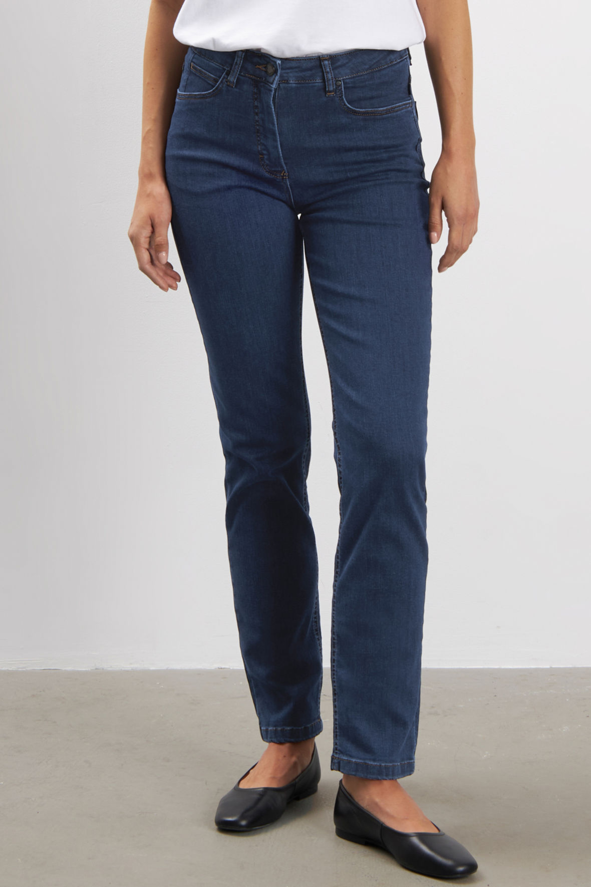 Laurie Charlotte regular i medium length og som alm denim buks. Et par bukser der har mere traditionel elastisk linning der er helt glat og er med bæltestropper, de er lavet med knap, gylp og lynlås så de sidder dejligt på kroppen - frihed uden gener kunne man fristes til at sige. Ensfarvet denim uden slid og med orange stikninger. Let bomuldskvalitet med stræk - en rar oplevelse mod huden. De har tre forlommer og to baglommer så også her traditionel som five pocket. En jeans fremstillet uden skadelige kemikalier, indeholder økologisk bomuld samt er Øko-Tex certificeret og produceret i Europa. Samme pasform hver gang også plus size.