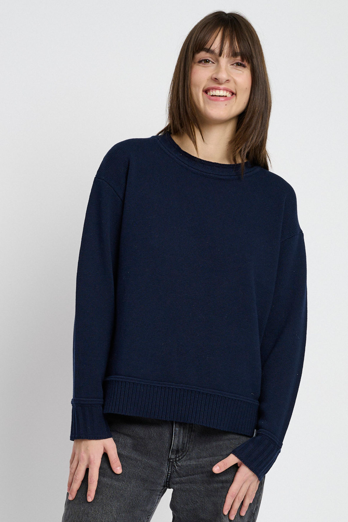 Mød LiTrine – din nye bedste ven i garderobeskabet, der kan hjælpe dig igennem de afslappede dage. Denne uundværlige striktrøje er skabt i ren og åndbar bomuld, der føles blød og behagelig mod huden. Modellen har en klassisk lige pasform, en pæn rund hals samt ribkanter ved ærmer og bund, hvilket giver et stilrent og tidløst udtryk. Den er perfekt til dig, der værdsætter kvalitet frem for flygtige trends. Den har rund halslinje med flot mønstret kant. Med påsat ærme hvor skuldersømmen er trukket ned på overarmen. Den slutter helt typisk for Lind strik med et fenomenalt mønster ved håndled samt nederst på kroppen.