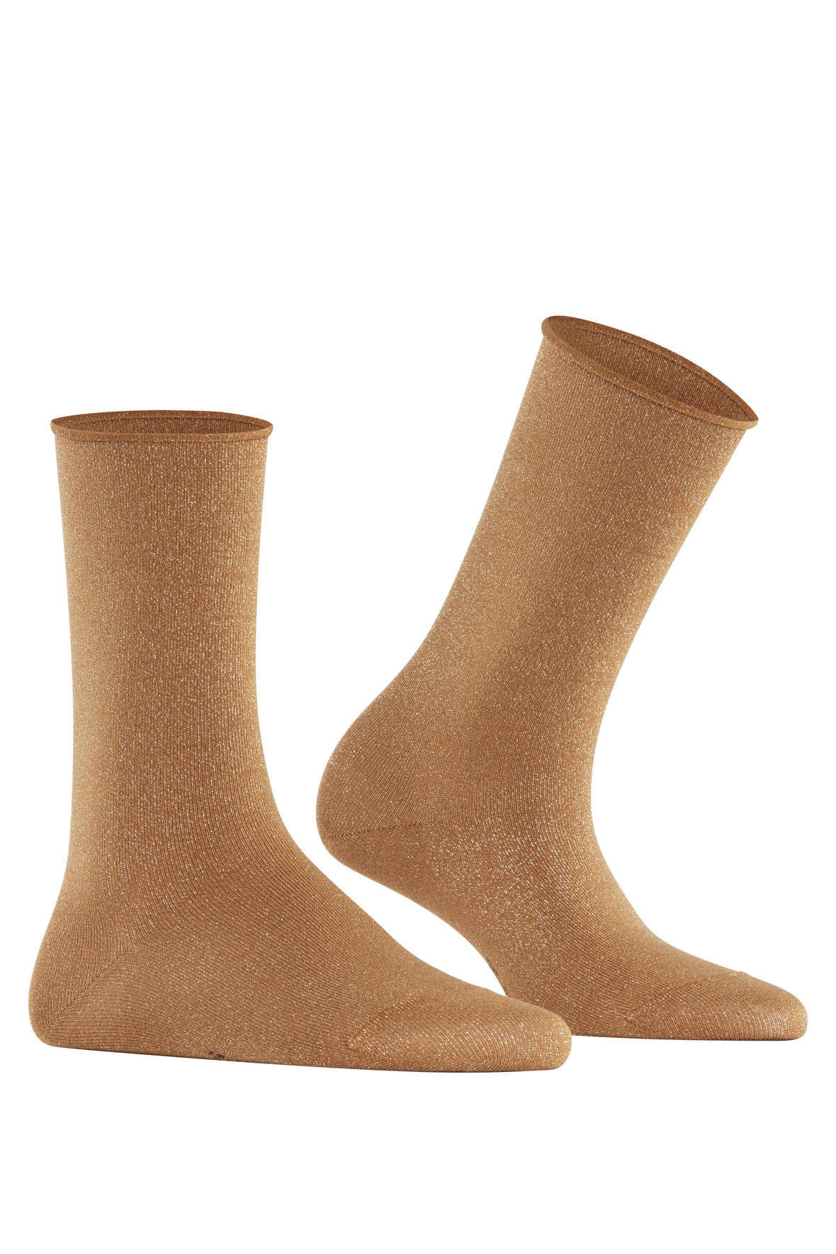 Her skruer Falke altså op for charmen med Shiny som de her lette ankelsokker hedder. Skabt til at blive set og uden at det er på bekostning af komforten som det ofte er når at de skal skinne. Det er opnået ved brug af bæredygtig Tencel Lyocell og genanvendte garner. Sokkerne har all-over shine der skinner guld. De har lille rul øverst på manchet. Masser af stil.