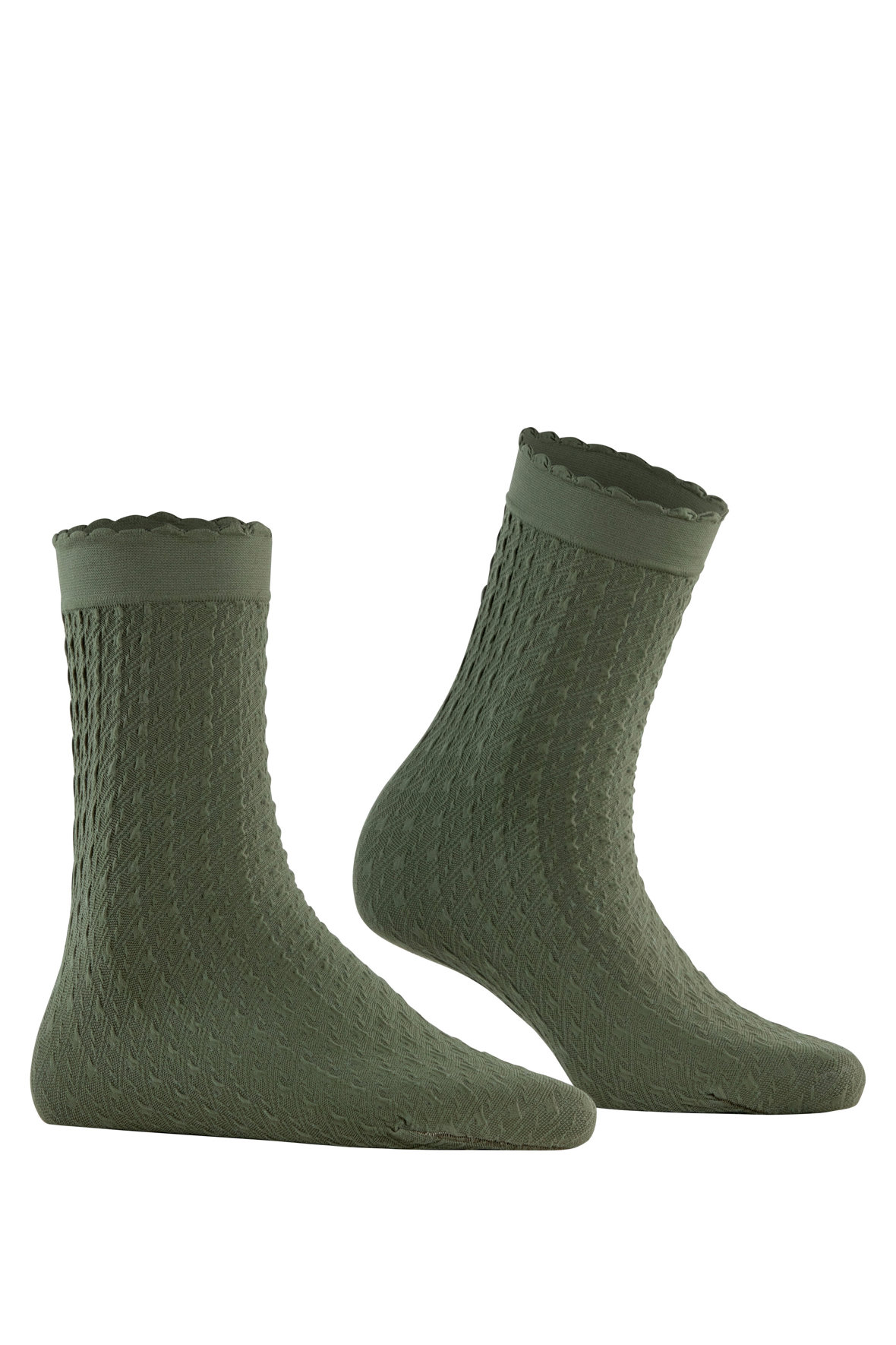 Posh Pulse er Falke's flotte ankletter en finstrømpe i 50 denier med et crepe/Jacquard udtryk. En sød og detaljerig strømpe der er fin og meget holdbar. Det er så flot når der sker lidt på strømperne, og her er det holdt helt elegant tone i tone.