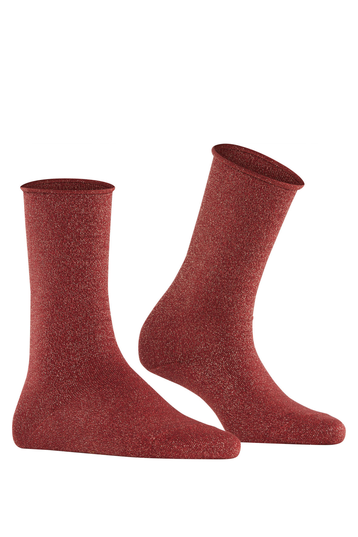 Her skruer Falke altså op for charmen med Shiny som de her lette ankelsokker hedder. Skabt til at blive set og uden at det er på bekostning af komforten som det ofte er når at de skal skinne. Det er opnået ved brug af bæredygtig Tencel Lyocell og genanvendte garner. Sokkerne har all-over shine der skinner guld. De har lille rul øverst på manchet. Masser af stil.