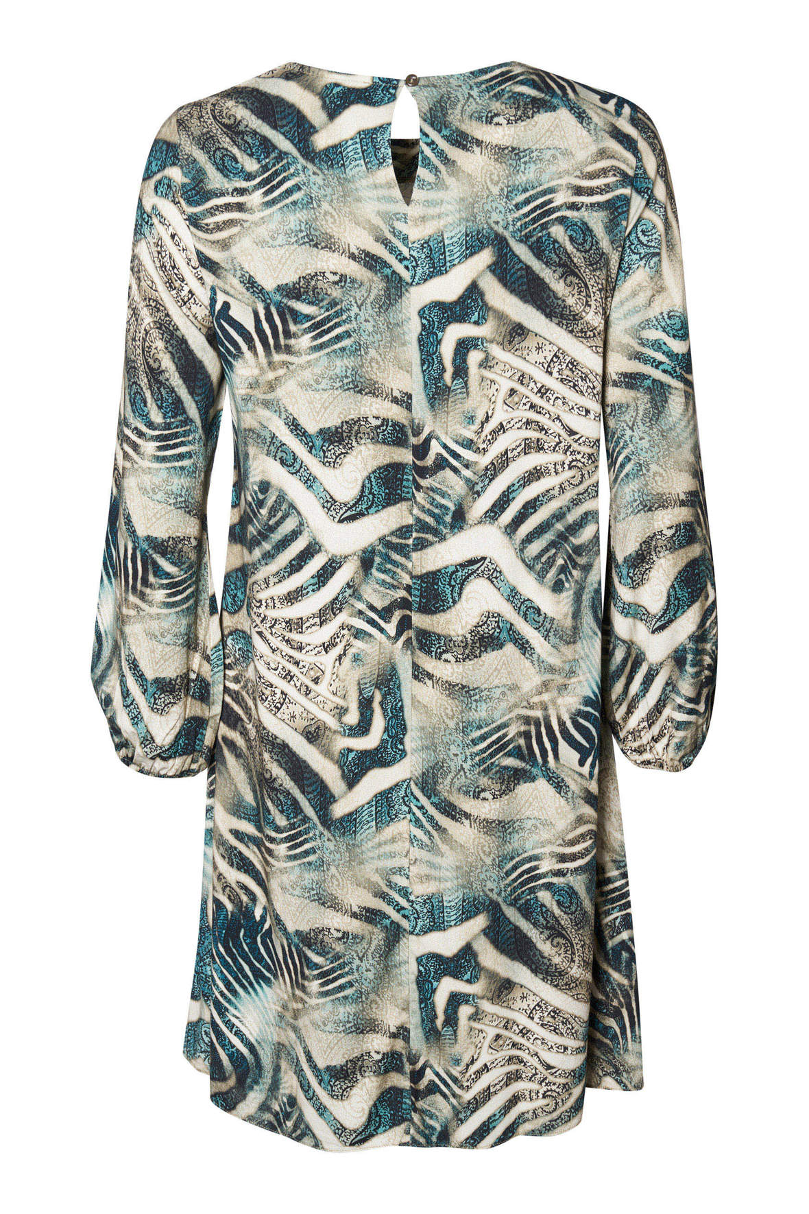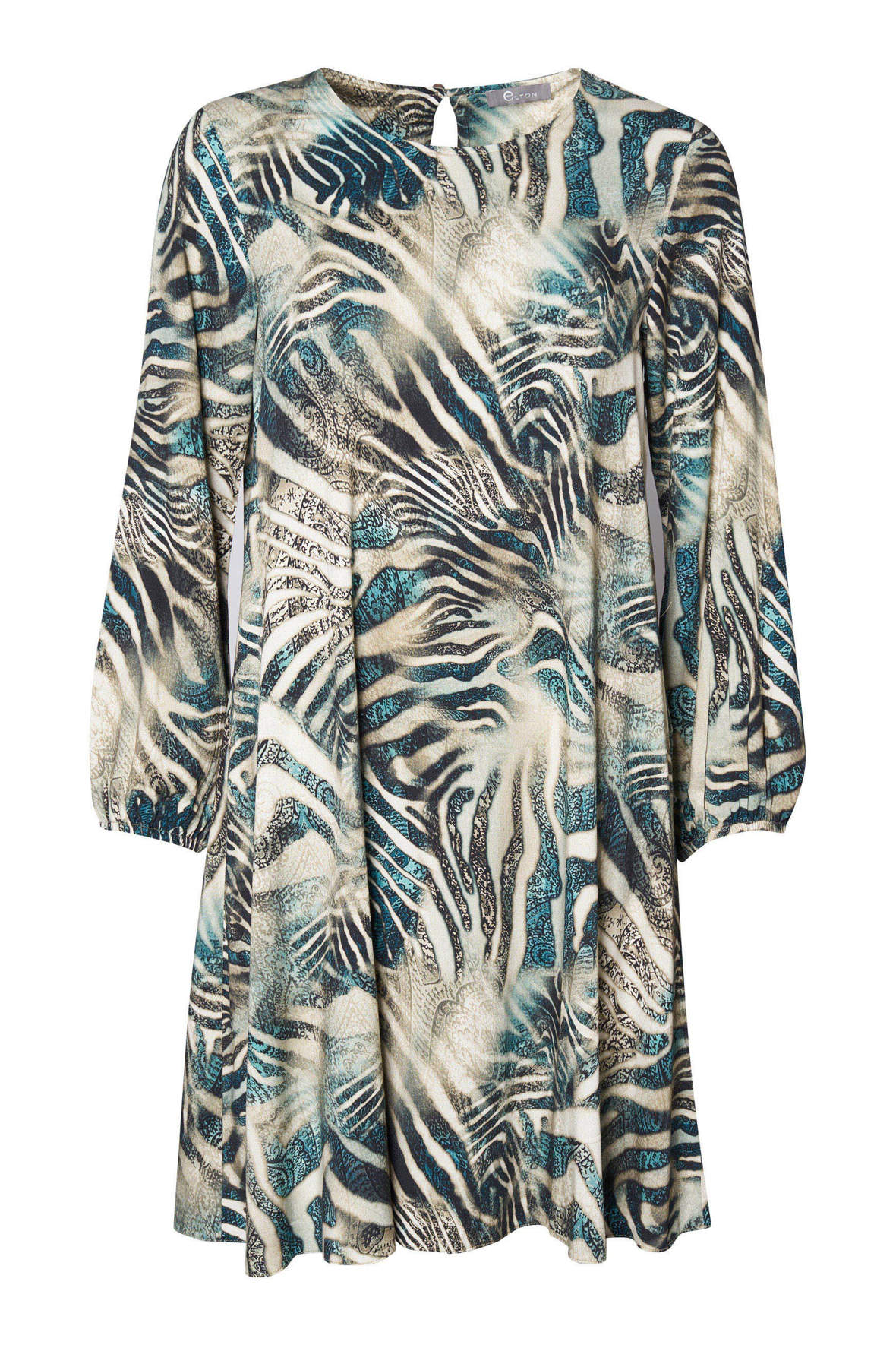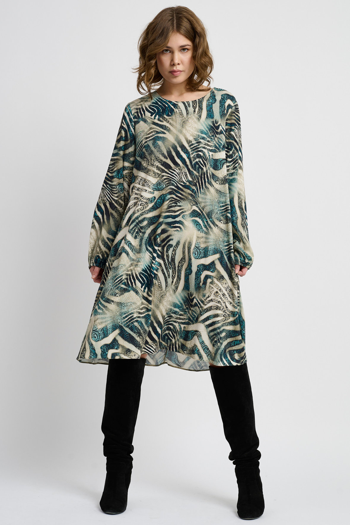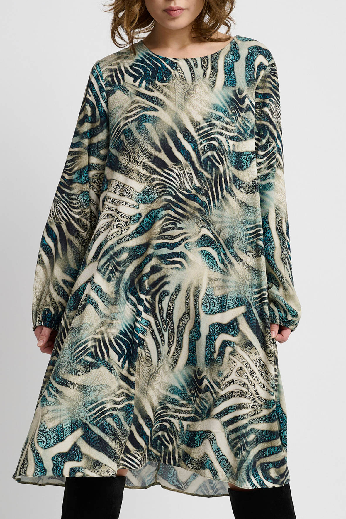 Ingen gider falde i et med tapetet og hvorfor også. ETPatricia er livlig med et lidt mere vildt print hvor der er svaj i skørtet. Den garanterer blikfang io hvert et skridt. Lavet i elastisk og rigtig lækker viskose. Den følger kroppen og lader dig yde dit gennem hele dagen. Linjen er i halsen er valgt som rund og der er lavet lille kighul i ryggen med knap over. Den er udstyret med lommer i sidesømmen der falder fuldstændig sammen med printet. Ærmer er luftige med smal elastik som afslutning ved håndled. Du går aldrig galt i byen med Elton det er smukt lavet med øje for alle finesser. Her er ingen kompromisser og sikke et flot farvespil i printet.