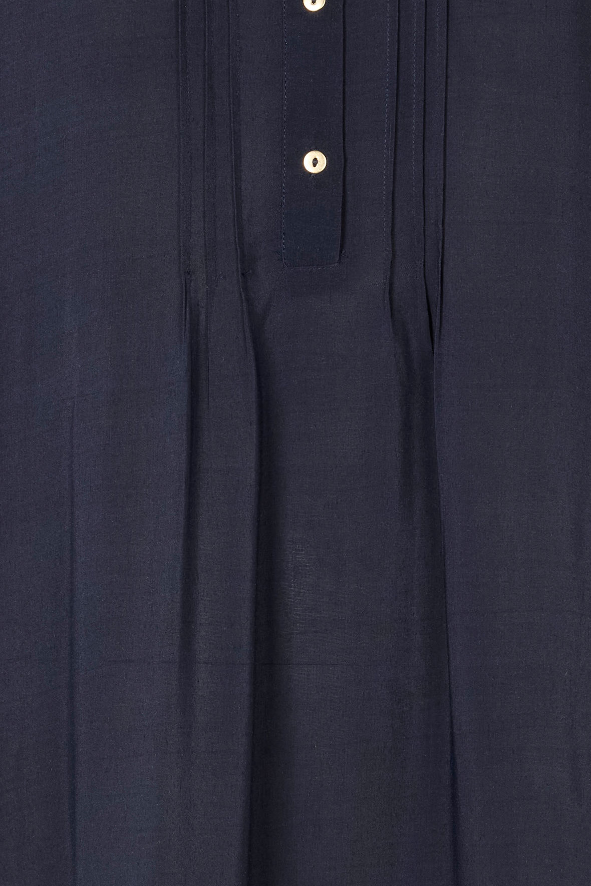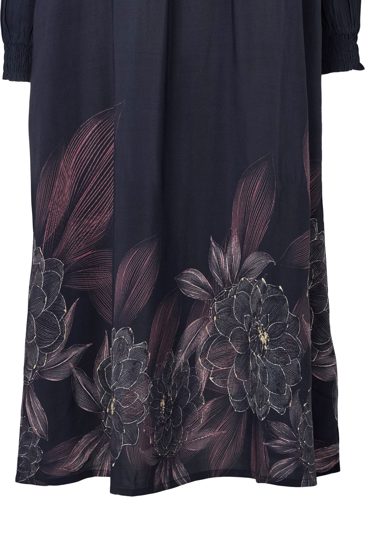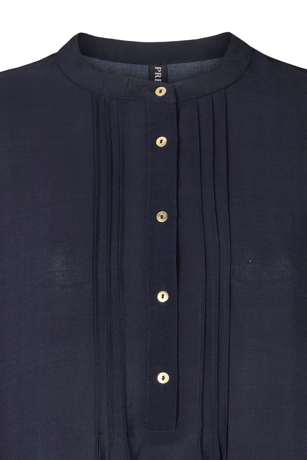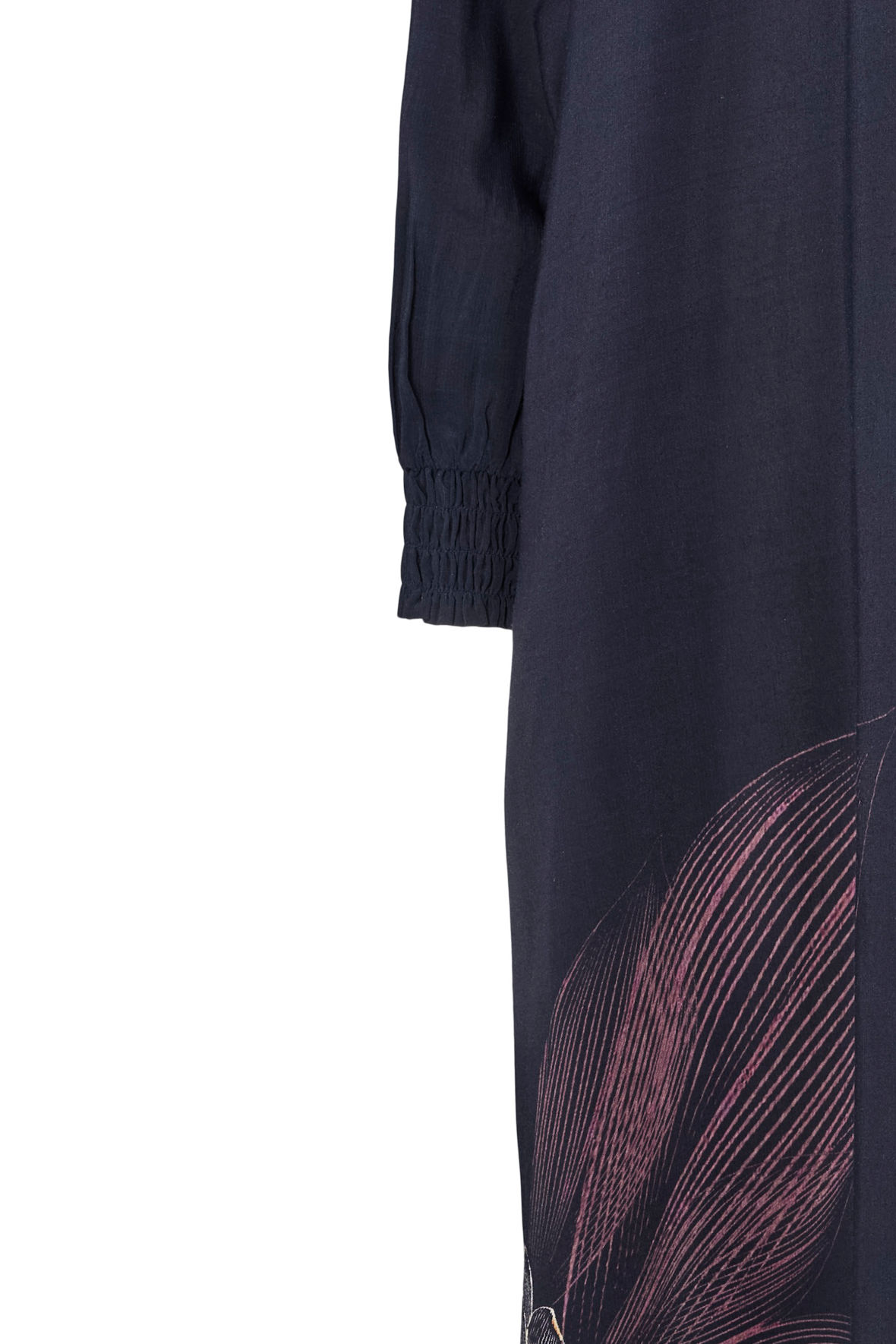 Caroline pasformen kender du måske i forvejen, her er hun som en maxi kjole i viskosekvalitet. Sikke en flot farvesammensætning med print nederst. Caroline har rund Kina krave der ligger ned, herunder kort knapstolpe med guldknapper og de her flotte små læg ved siden af. Ærmer har afslutning ved håndled med smockelastik. I sidesømmen har den fået lommer, et smart trick der skjuler dem lidt. Rygen er helt glat og farve og print går igen. Den er lavet som sigle layer - altså i et lag uden foring. Vanen tro har Prepair lavet den lidt til den store side, det giver dig mulighed for at gå en str. ned hvis du almindeligvis ligger i mellem to str.