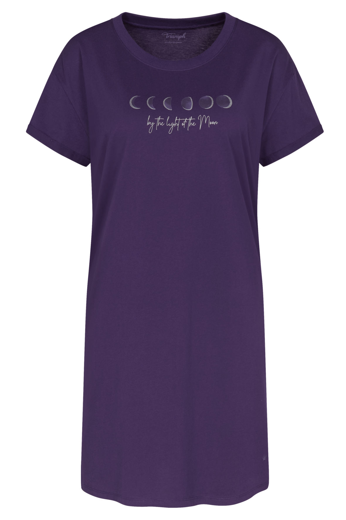 Nattesøvnen kan drille mange, derfor skab ro i soveværelset. Sørg for at dit nattøj er blødt åndbart og giver dig den rare oplevelse det skal være at krave i seng. Her en lidt yngre natkjole i ren bomuld. Den har ribstrikket rund halslinje samt korte ærmer med lille fast opsmøg hvor skuldersømmen er trukket lidt ned. Den har en længde til lige over knæ. Sødt print på brystet "By the light af the moon".