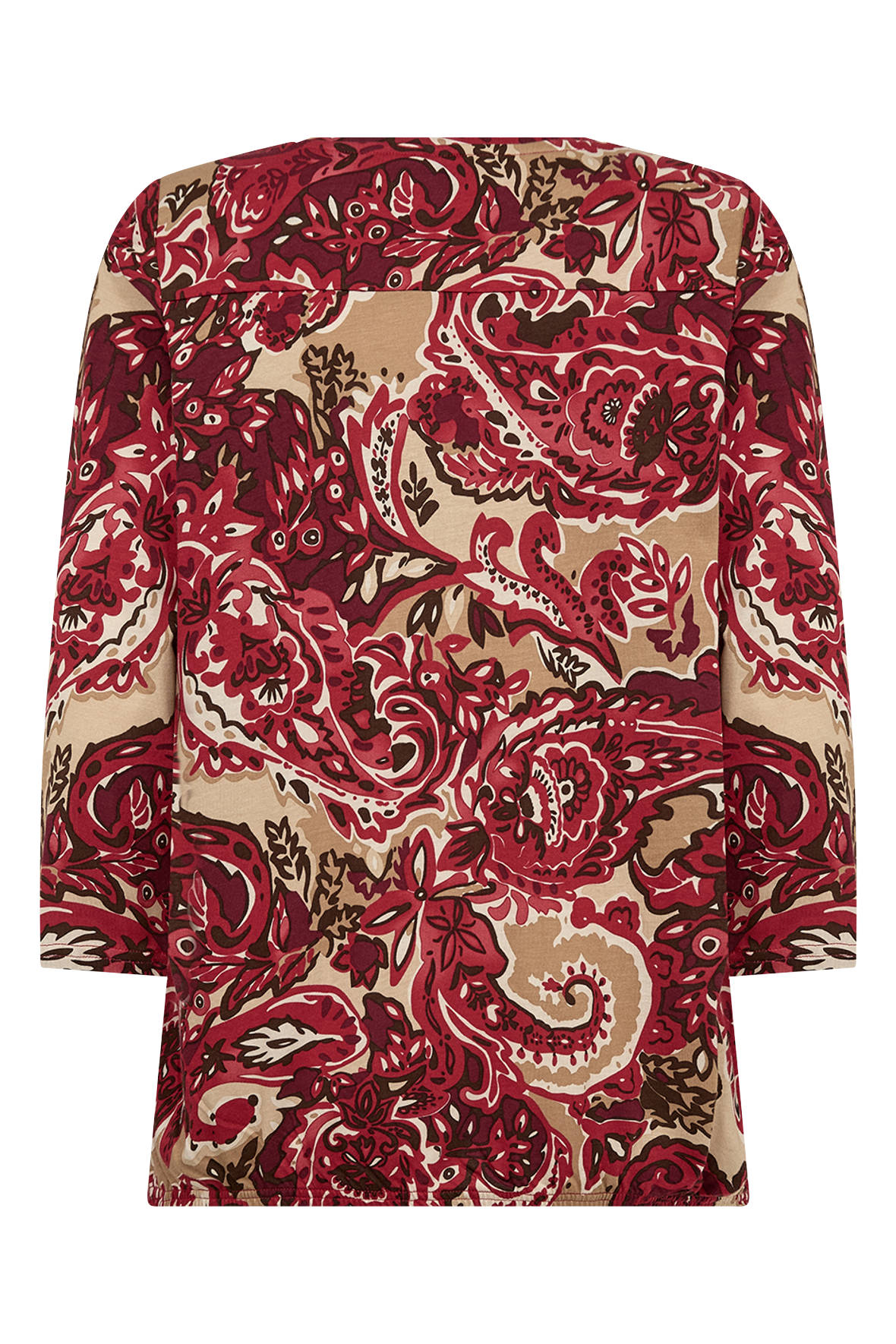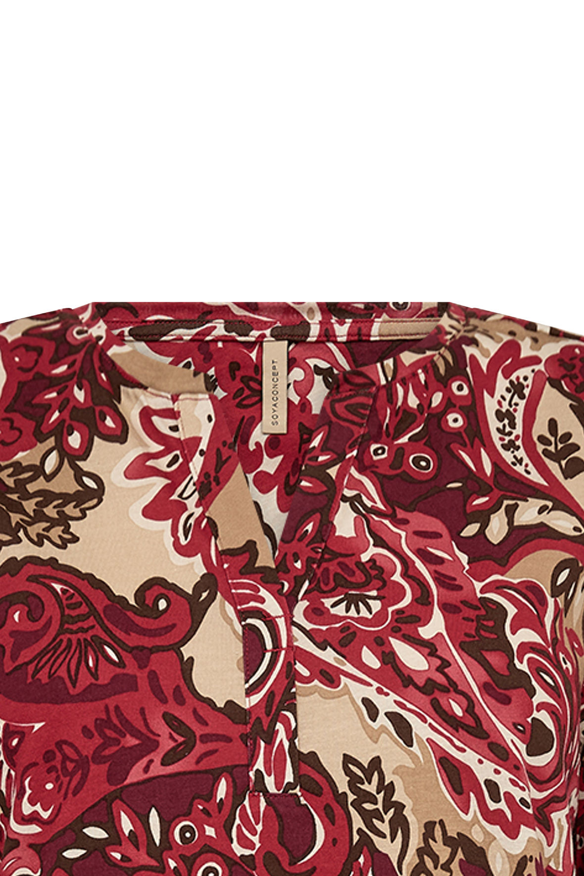 Flot og super effektfuld t-shirt med det her flotte print all over. Kvaliteten er en blanding af økologisk bomuld og viskose der lavet helt let. SC-Felicity 517 har rund halsudskæring med åben V-stolpe og ærmerne er 3/4 lange, den slutter ved hoften med elastik så den får en luftig pasform ved maven. Med flot kant i halsen. SoyaConcept har holdt prisen helt i bund.