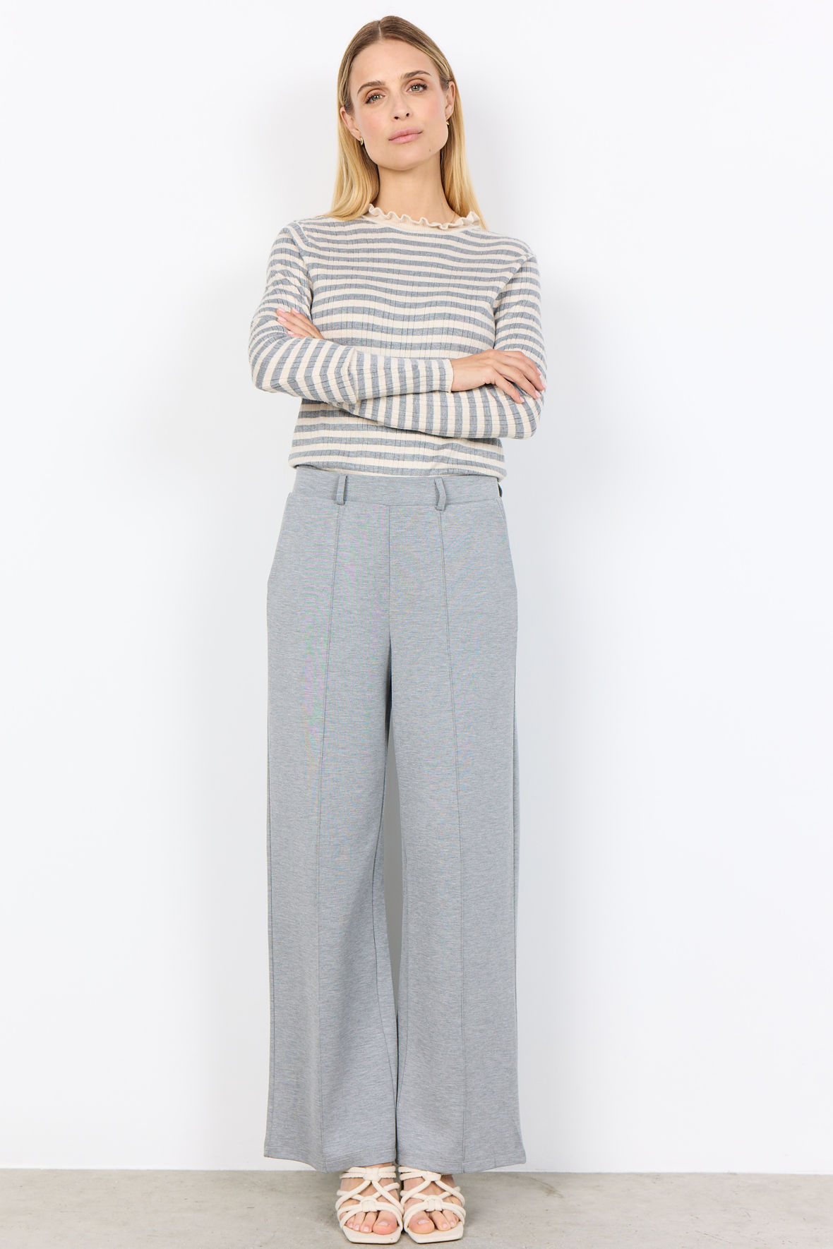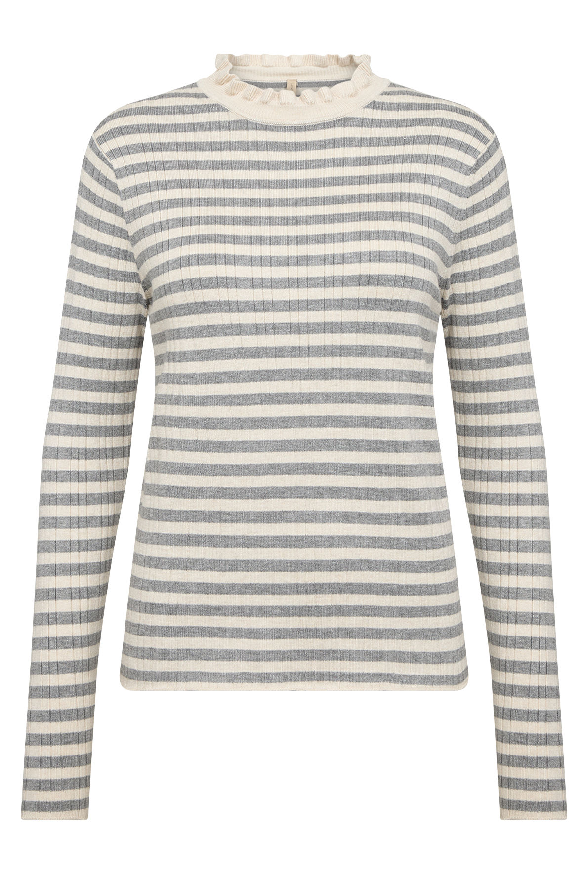 SC-Vana 3 - Stribet Ribstrik Bluse - Creme