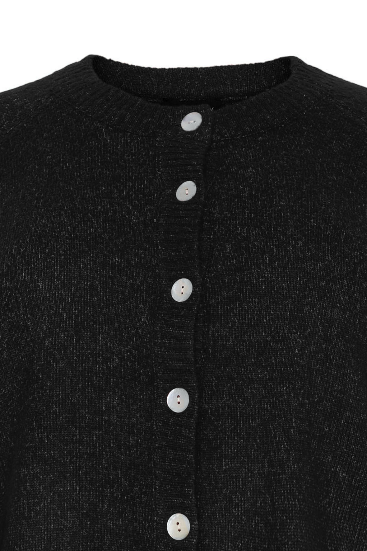 Sød strik cardigan der har knapstolpe og med ballonærmer fra No.1 by OX. Den er blød og vamset med flot melange farve der taler til øjnene. Den er ribstrikket på alle kanter, har rund halsudskæring samt lange raglan ærmer der har lidt ballon effekt, med ekstra høj ribstrik manchet. Medium grov i strikkestrukturen og ikke alt for tyk. Fremragende pasform uanset om du er plus size eller ej.
