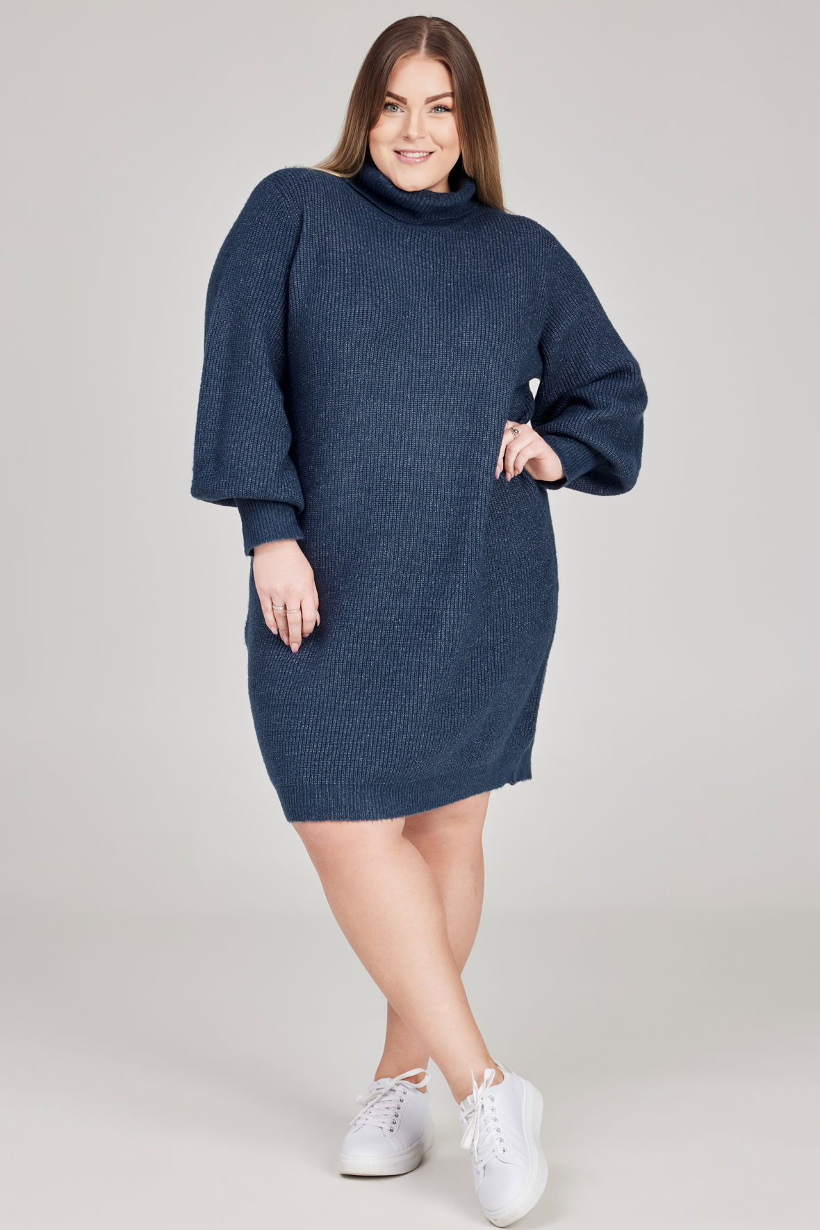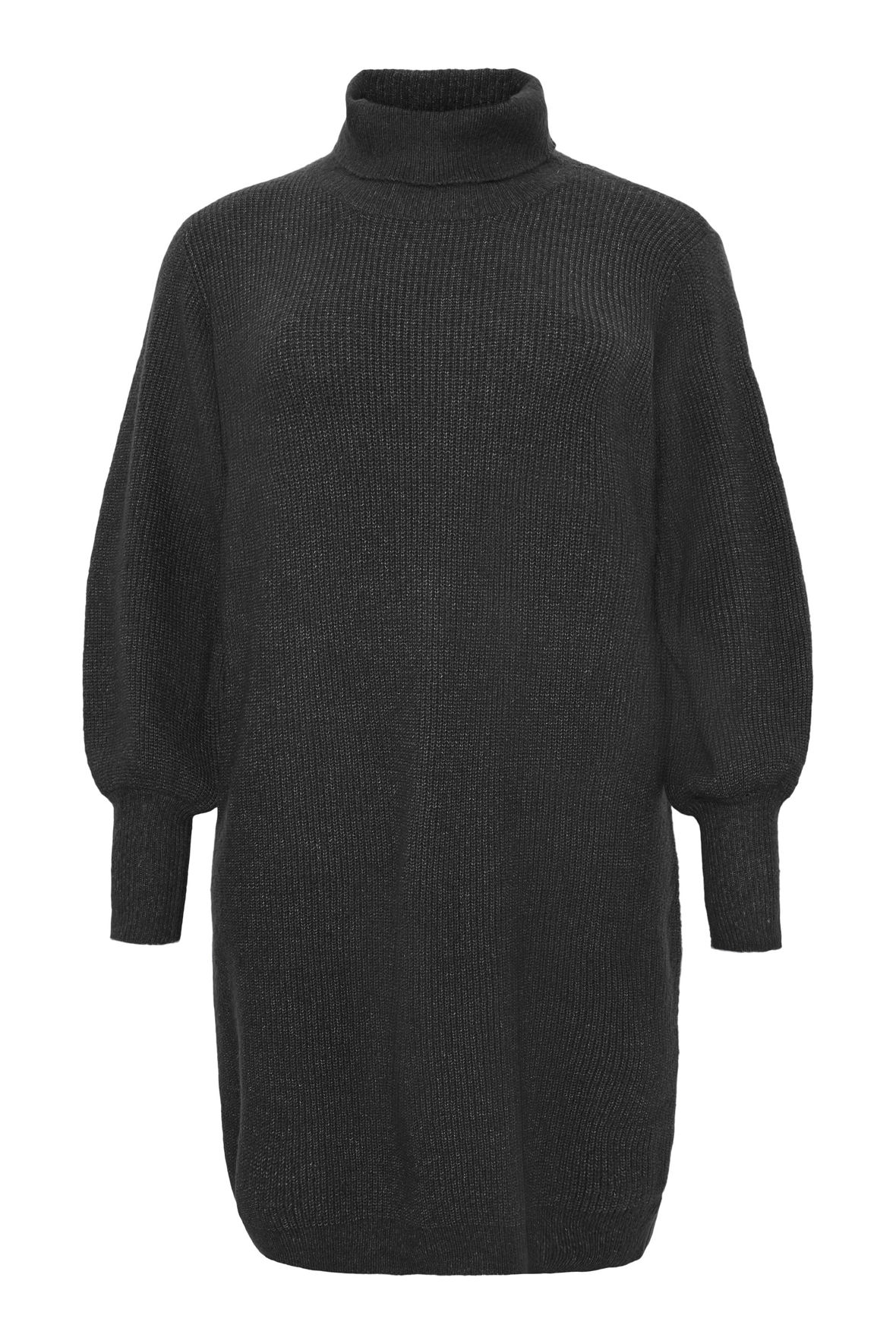Strikket kjole med rullekrave, så enkel og stilfuld i en hverdagskvalitet der både er blød og vamset. En som ikke krøller eller mister facon. Med flot og virkningsfuld effekt i ballonærmer der rigtig træder i karakter pga. manchetter med ribstrik. Den er tidløs og hævet over sæson. Længden går lige til knæ. Vi havde billeder af den samme kjole i anden farve, dem får du lige her så du får en fornemmelse af den på kroppen.