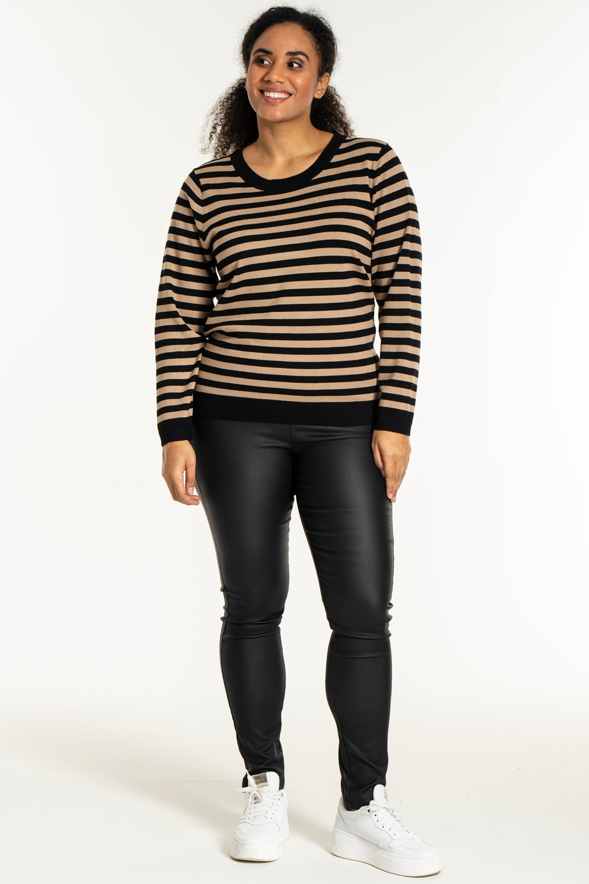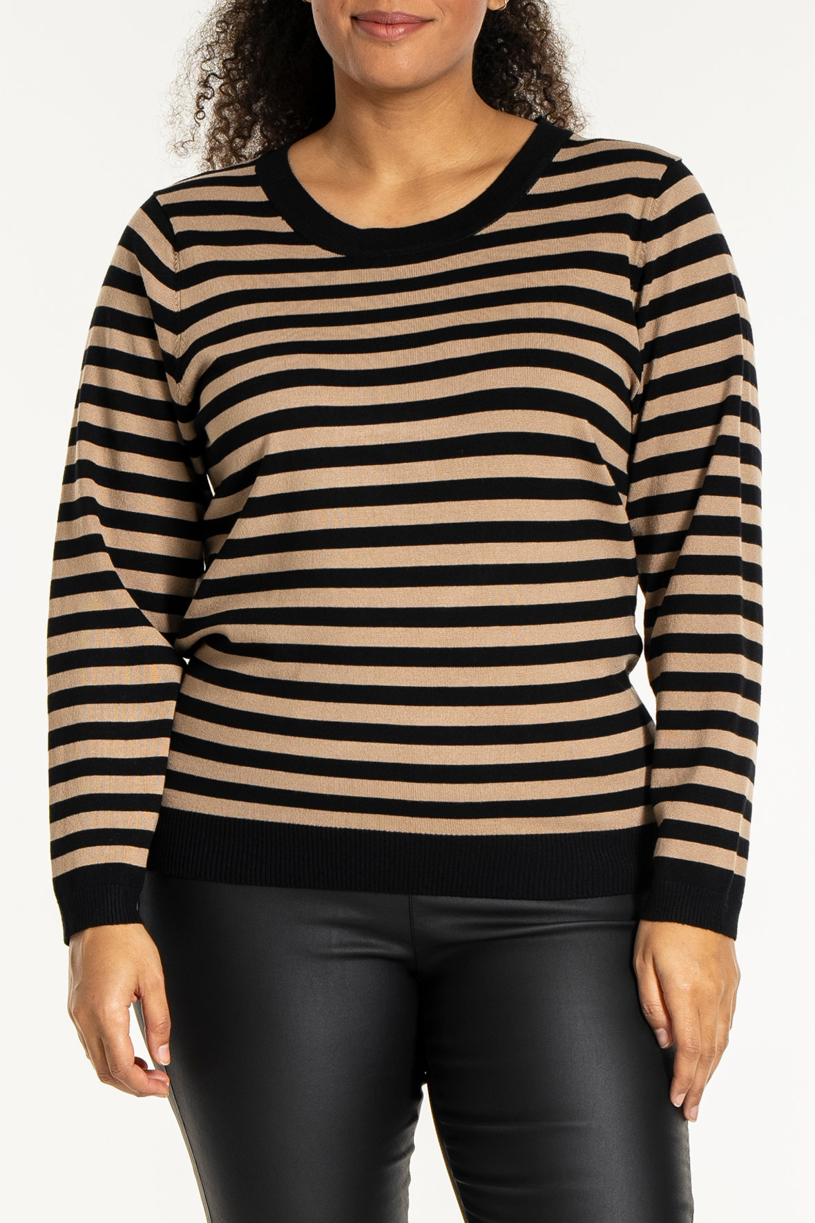 Helsinki kvaliteten fra Sandgaard her i en finstrikket let kvalitet som klarer den hårde hverdag. Den tåler vaskemaskine og tørretumbler uden at ændre farve, facon eller pasform og så krøller den ikke. Pulloveren/jumperen her er lavet som en tofarvet stribet strik med fine ribkanter. Den er gradueret i størrelserne så den passer så fint igennem størrelserne dvs om du er plus size eller ej har intet at sige.