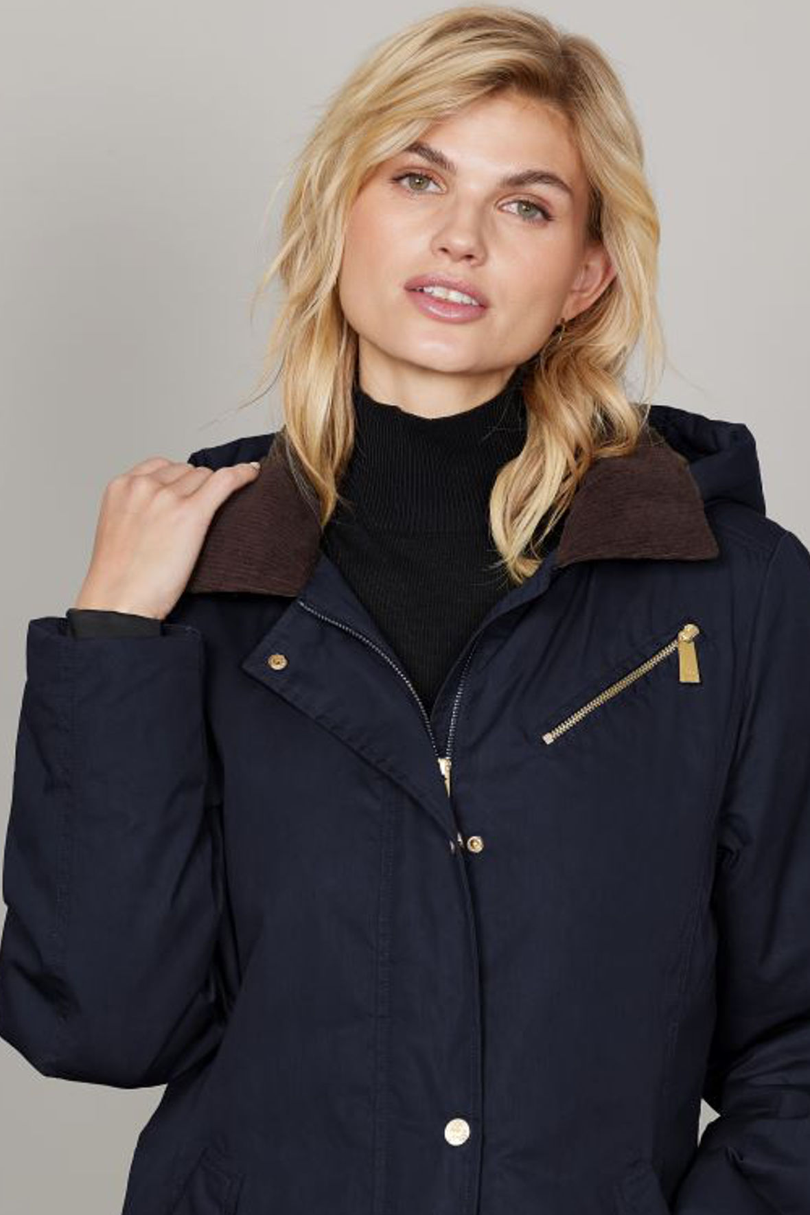 Mauda er designet med sans for detaljen: en aftagelig og justerbar varm hætte giver alsidighed, mens den klassiske fløjlskrave og det ternede foer tilføjer et tidløst, traditionelt udtryk. Jakken lukkes både med tovejs lynlås og knapper, hvilket giver ekstra beskyttelse mod vind og vejr.