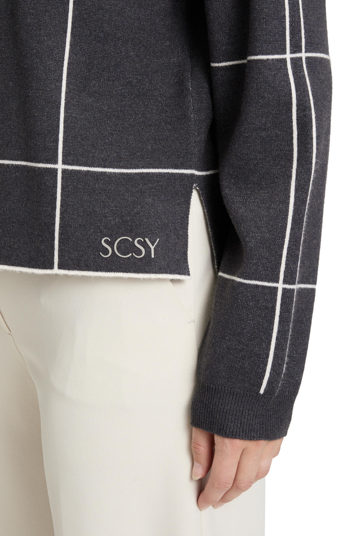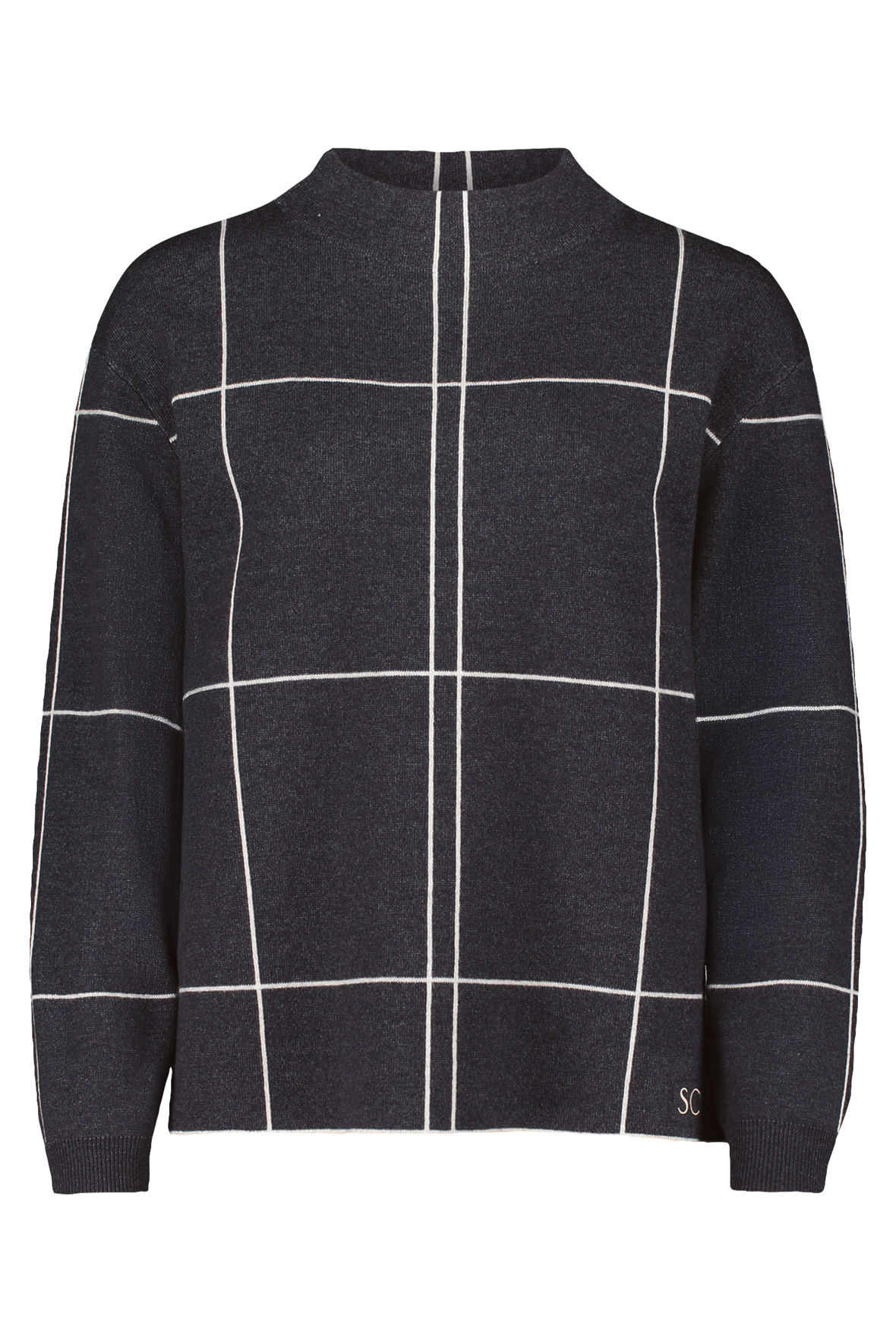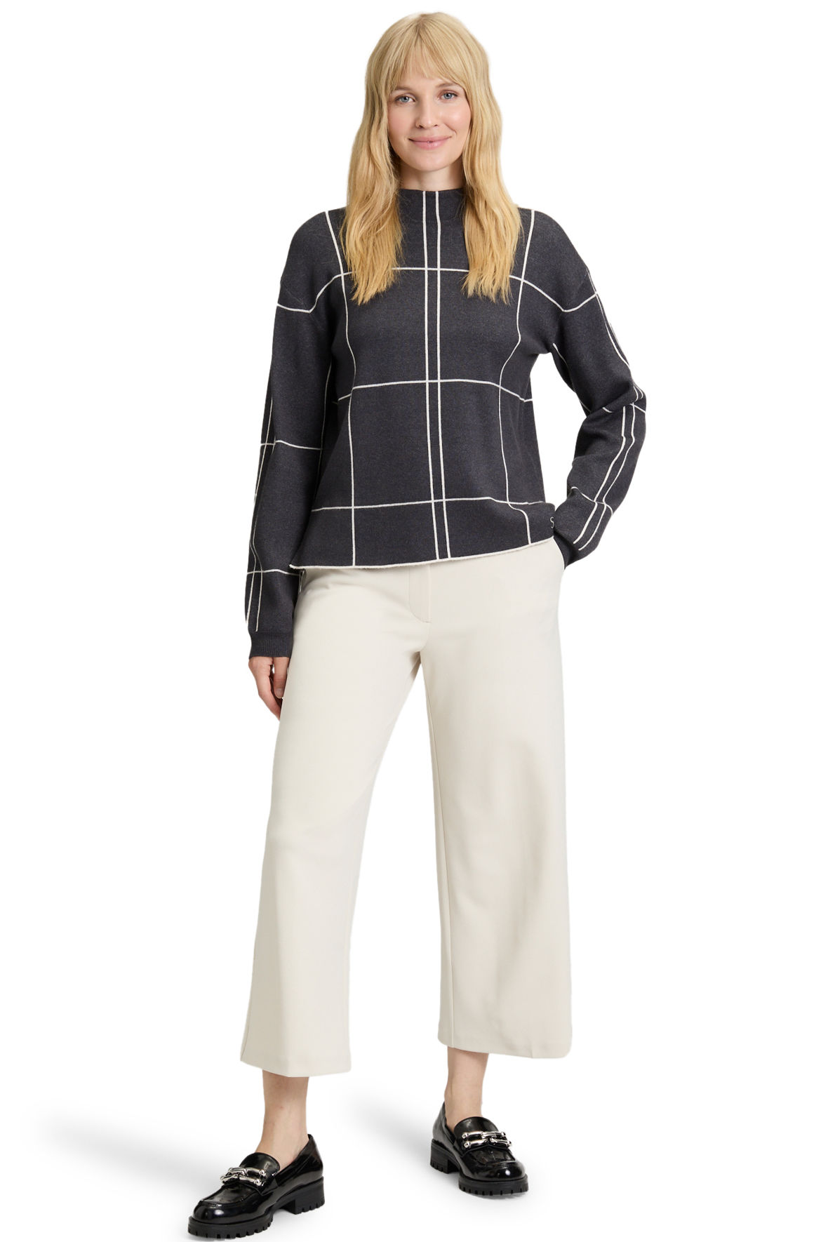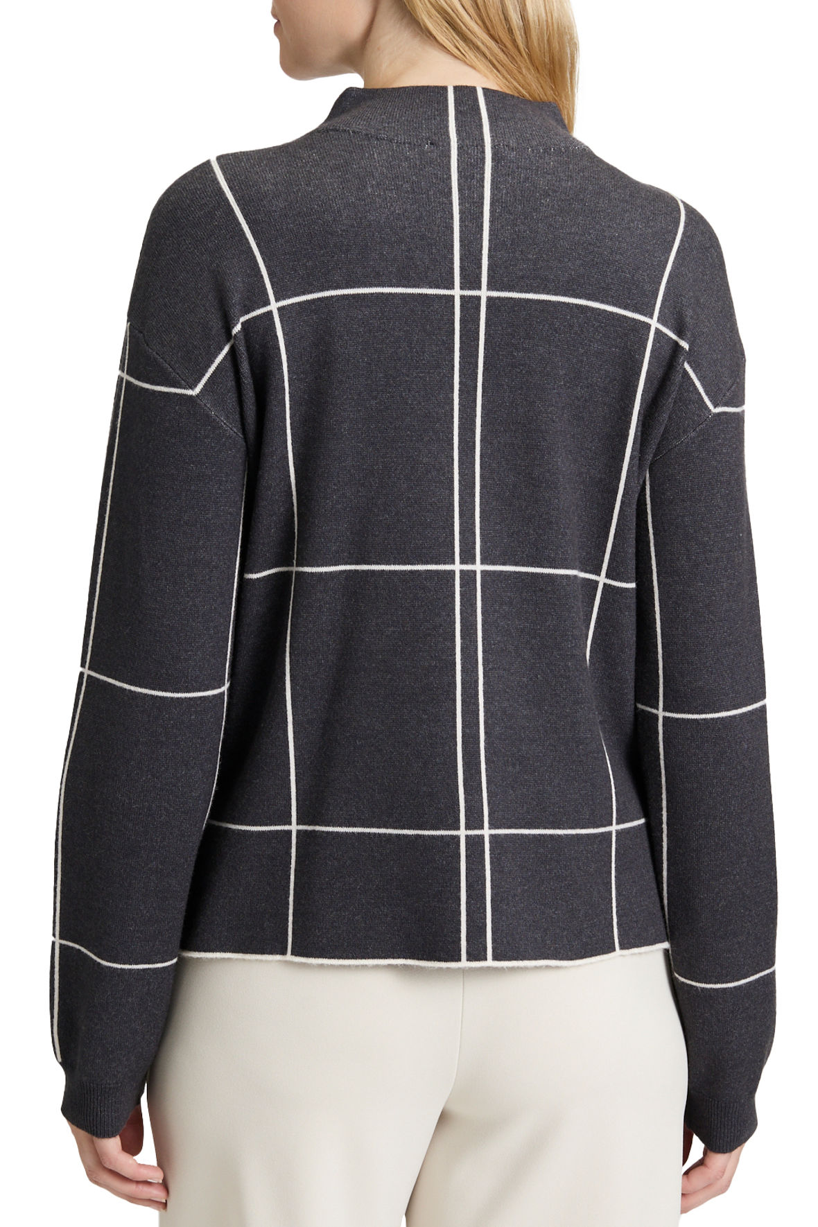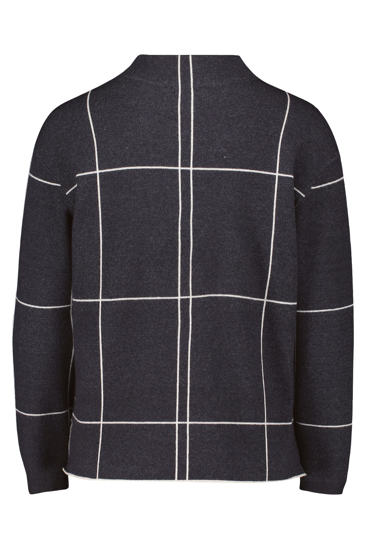 En So Cosy style fra Betty Barclay, serien der bøjer for absolut komfort og blødhed. Den er lavet i finstrik kvalitet med et flot hvidt ternet mønster der spiller op imod det grå.