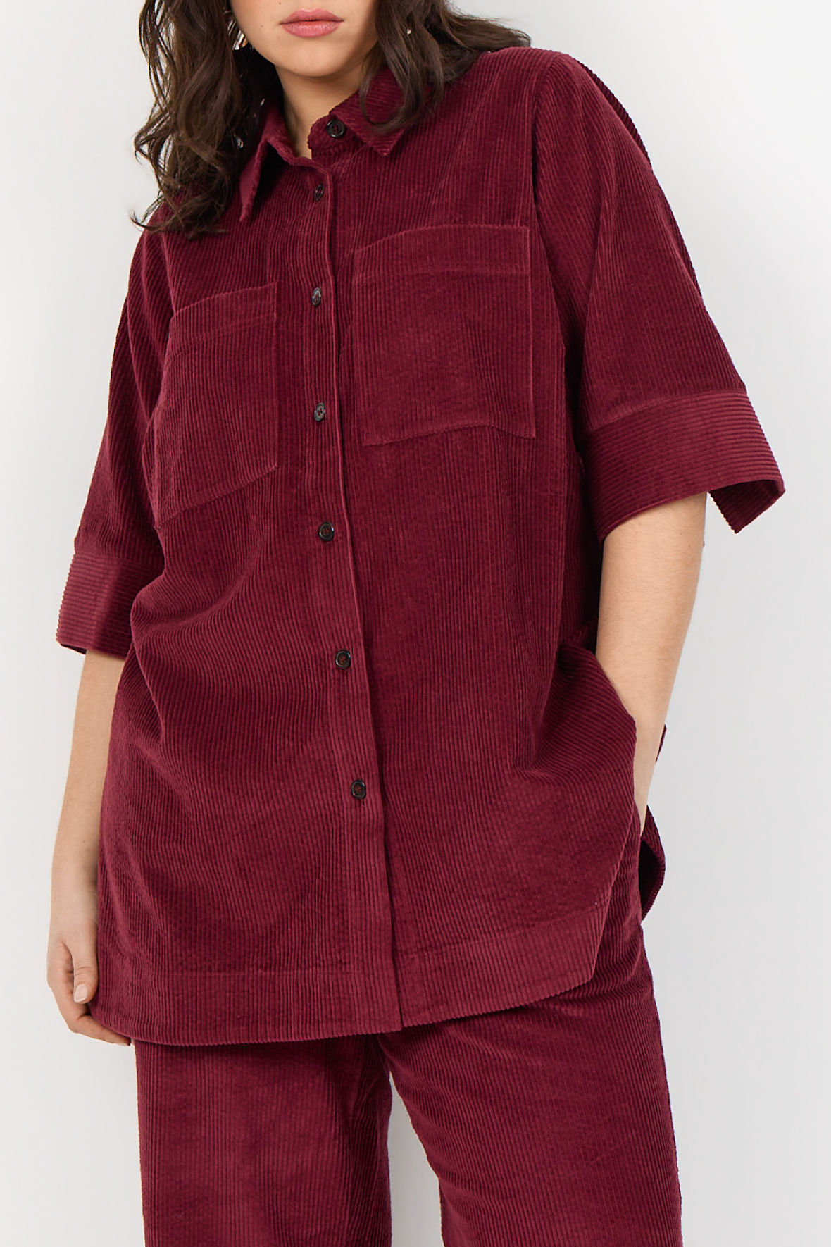 WA-Nadin 2 - Fløjls Skjorte - Mørkerød