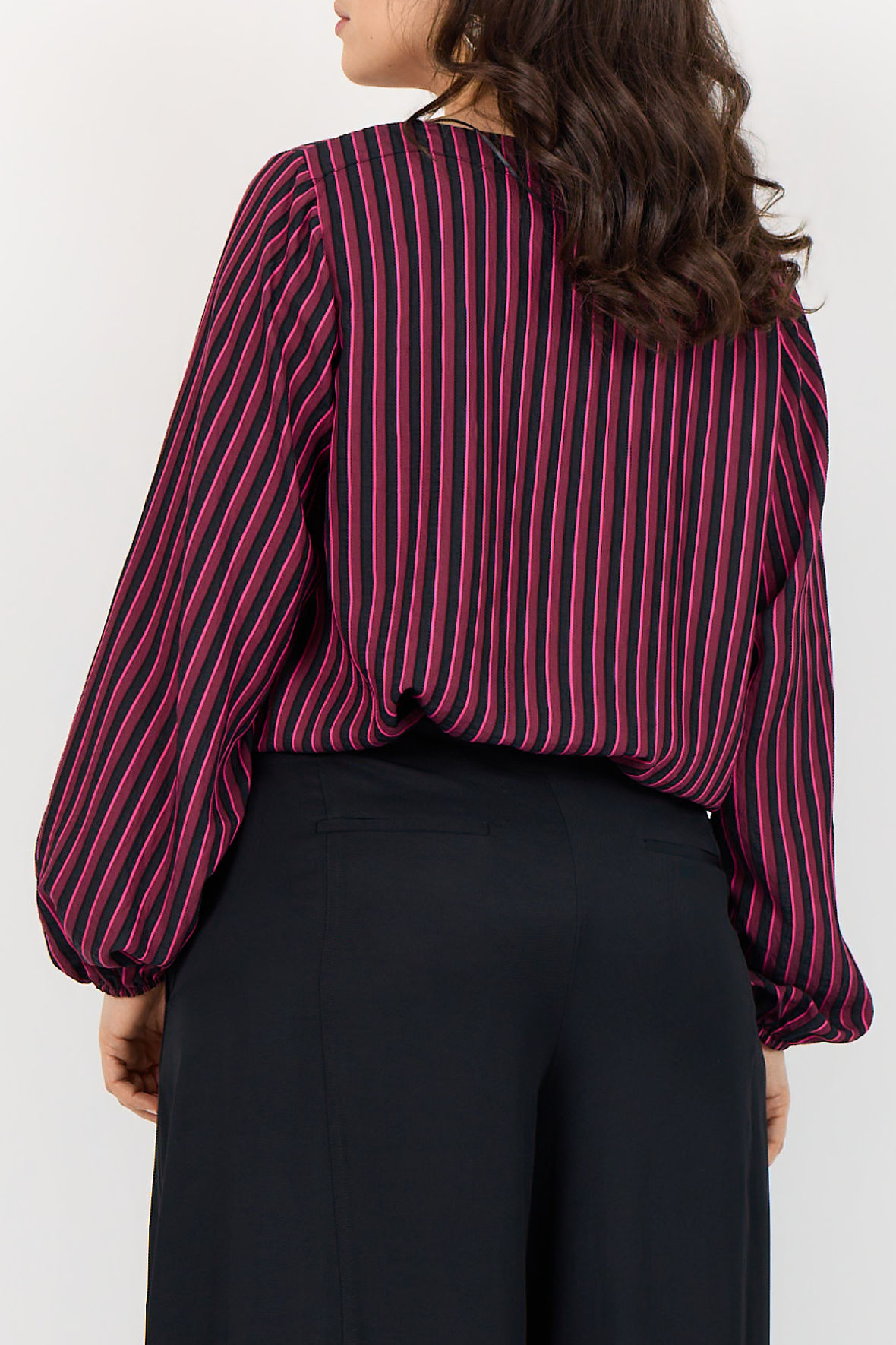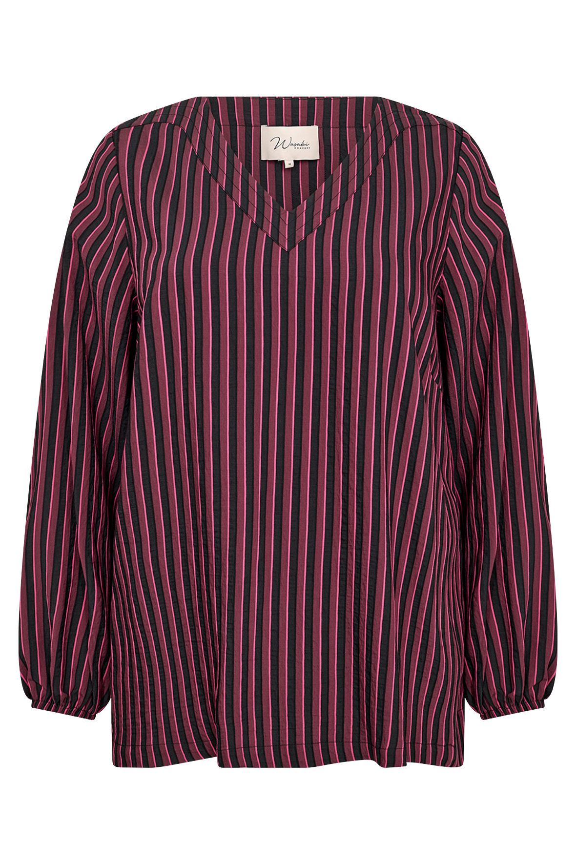 WA-Nichole 1 - Stribet Bluse - Mørkerød
