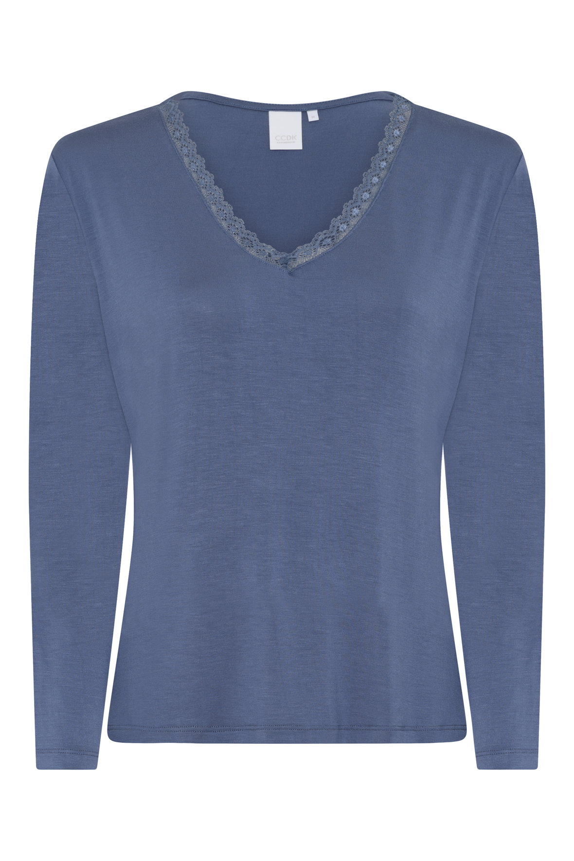 CCDK er vores danske specialist i nattøj. Her er det Jordan, den lette EcoVero viskose t-shirt med lange ærmer som har fået flot Vudskæring med transparent blondekant. Den er så let og fin og sikrer bare din komfort for natten. Du matcher den selv op med den underdel du lige føler for. Den er størrelsessvarende. Billeder på model fanger farven helt rigtigt.