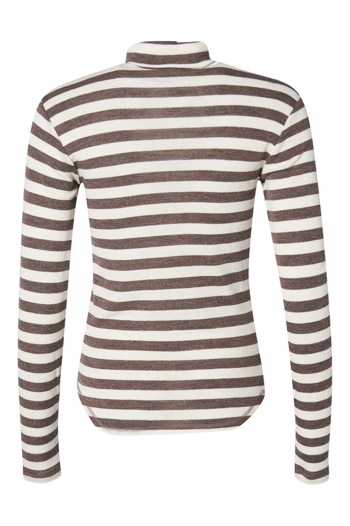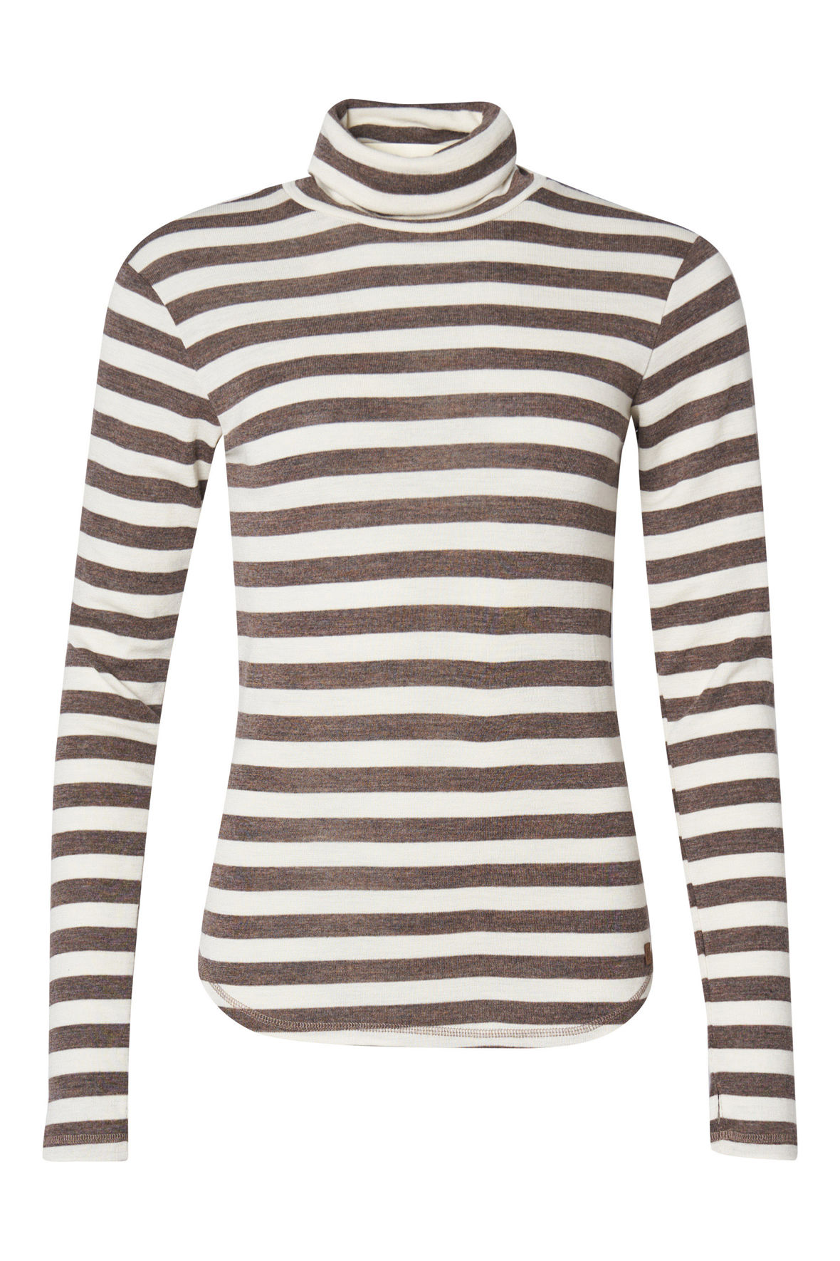 Lind LiSonia er en utrolig sød langærmet uld t-thirt med striber, rullekrave og lidt mere længde på ærmer der også har hul til tommelfingeren. Kvaliteten er en ren uld der har fået en tættere pasform. Den er blød og luksuriøs og samtidig ganske let, som gør den nem at have under andet. Uld giver dig naturlig varme og åndbarhed så komforten er på sit højeste. Den er størrelsessvarende.