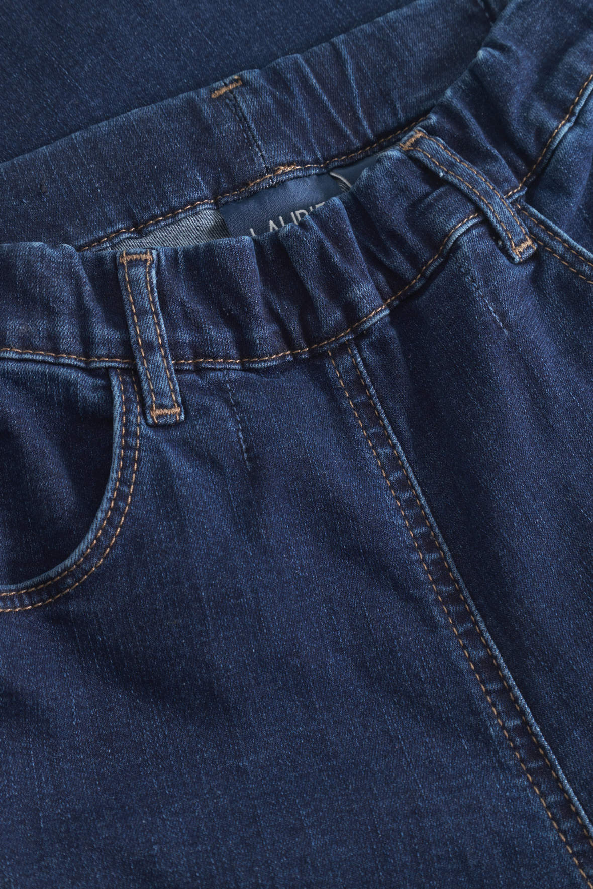 Laurie Donna er hentet fra Loose fit serien og har helt løst snit fra linning til ben samt er ensfarvet uden slid. Den har farvede stikninger der giver en flot effekt og indsnit ved talje/hofter er bare godt for figuren. Linning er bred og elastisk. Den er uden gylp samt lynlås og knap, det er helt perfekt for at give en slankere silhuette når der ikke er noget der buler ud. Men der er bæltestropper og forlommer. Meget elastisk kvalitet der også er let. Super moderne. Nemt at lægge op ved behov for endnu kortere længde end 80 cm.