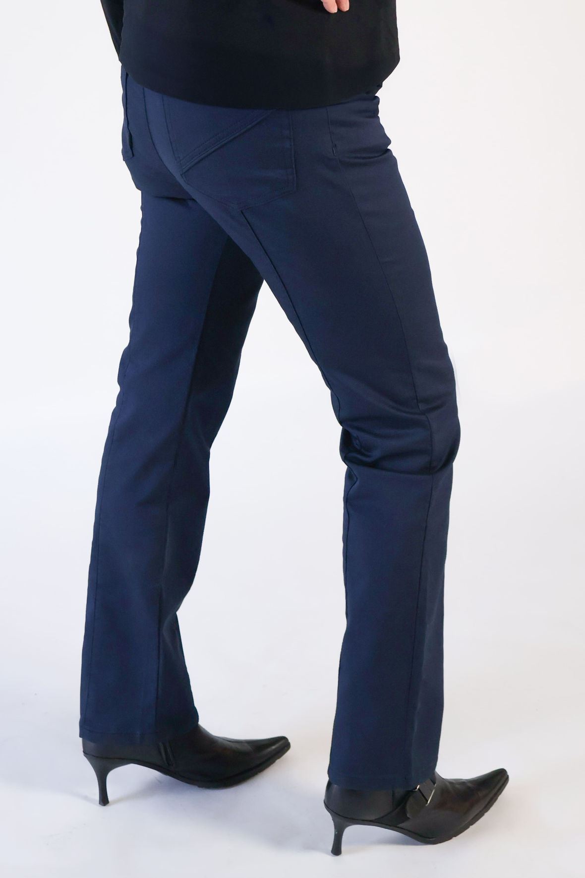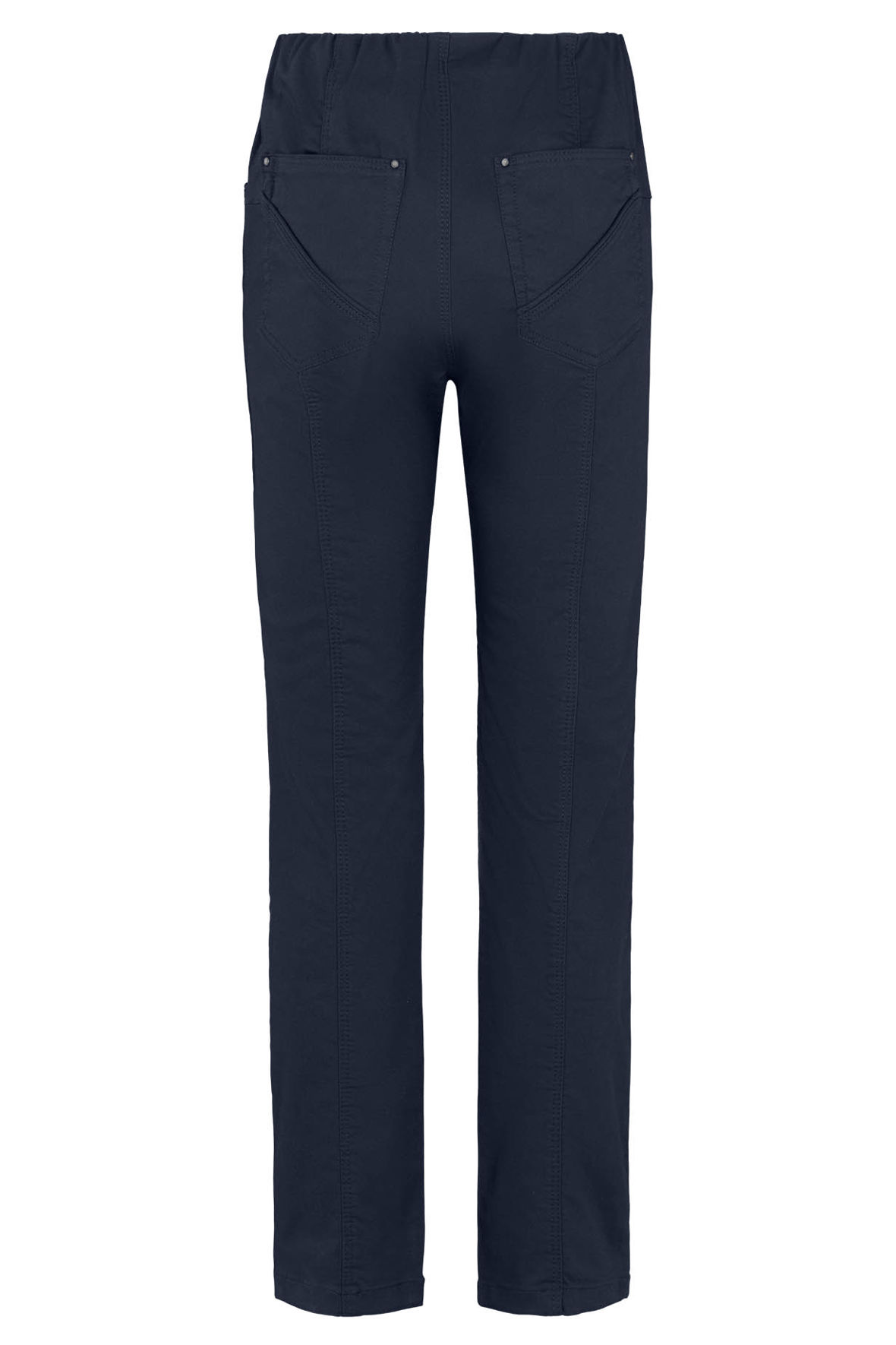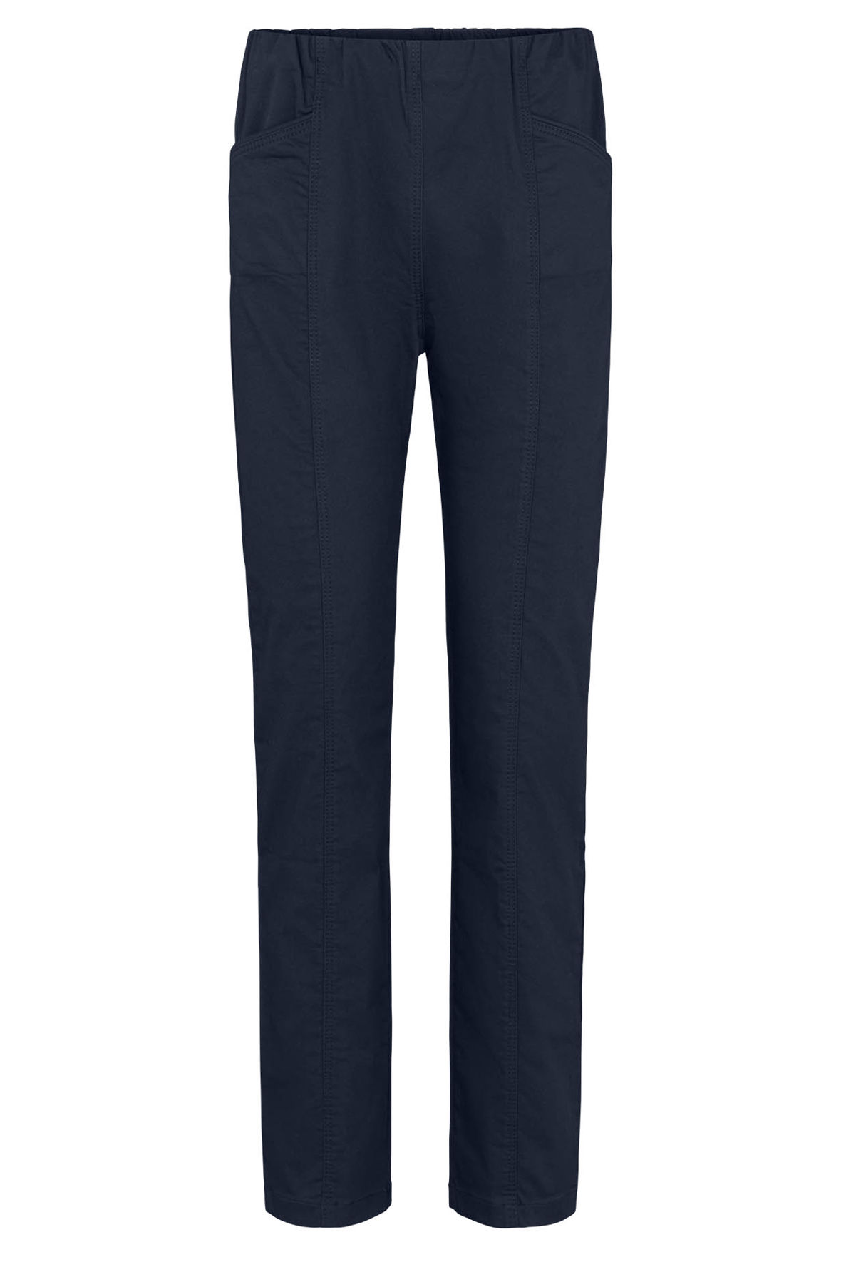 Slender modellen Rouge Regular i den så altid flotte mørkeblå er noget smallere end de øvrige modeller. Du vil gerne have smalle hofter, slanke lår, stadig med plads til lægge og knæ men med smallere snit til numsen. Og, har du lidt med maven, har den rigelig rummelighed her. Den har elastisk linning der er bred så den ikke graver sig ind. Den har for- og baglommer så der er ingen kompromiser her. Den er ikke udstyret med knap, gylp og lynlås - det vil du elske, det øger virkelig komforten. Bæltestropper skal du ikke undvære. Baglommer har skrå stikning som har en god indvirkning på numsen. Lodrette på kår giver dig en flot silhuette. Kvaliteten er let og elastisk.