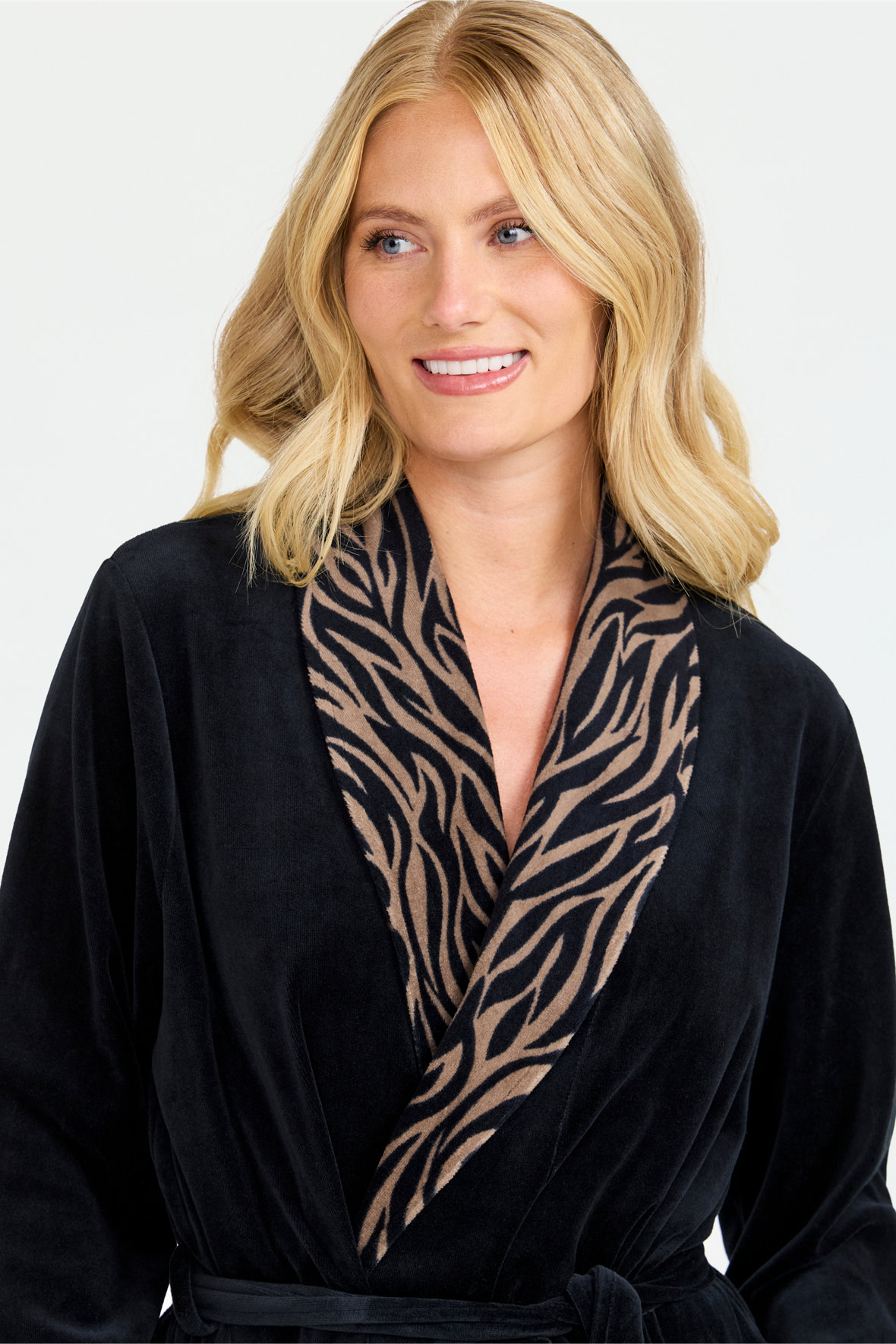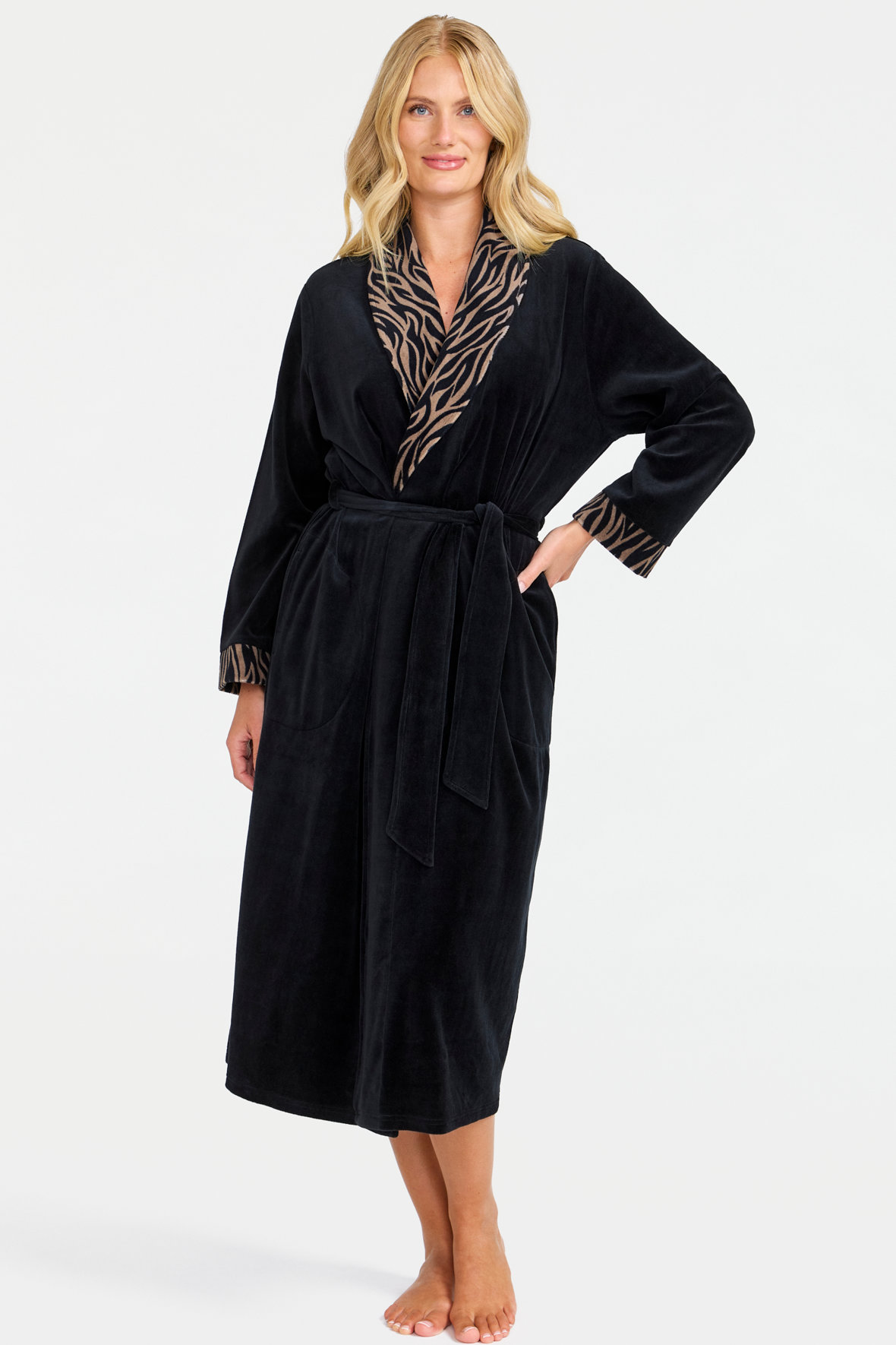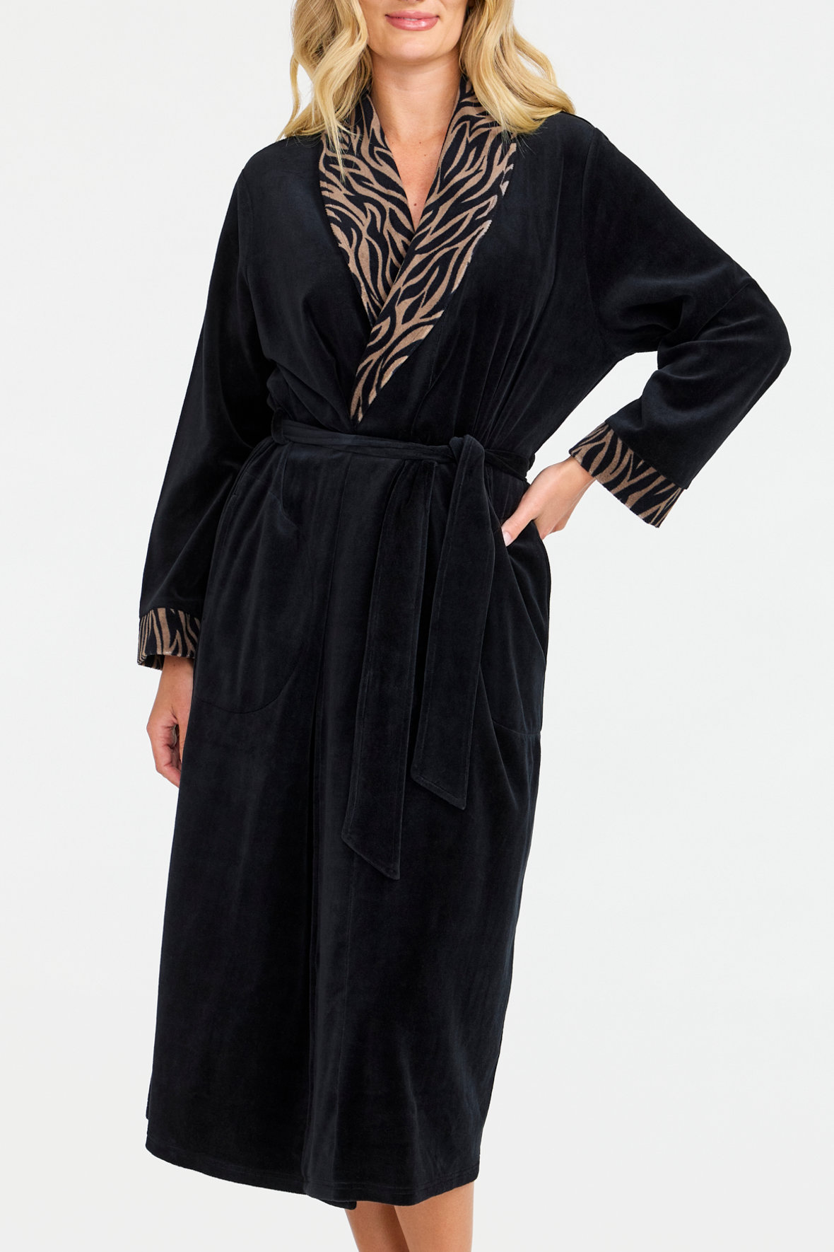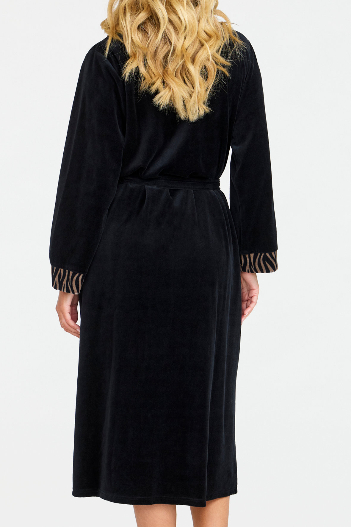 Så er det tid til lidt hverdags luksus, er det ikke. Damella har formået at lave en ganske elegant, trendy og ung morgenkåbe. Den har dyreprint detaljer på manchetter samt ved kraven/revers. Der er lommer i sidesømmen og stropper/løkker til det løse bånd. Den er lavet i en bomulds velour der ikke er så tyk. Den er lækker at hoppe i direkte fra sengen og den kan også suge vand hvis du kommer ud af badet. Super godt design der en kombination af det helt tidløse men også lige får dyreprint med uden at overgøre det. En kåbe uden alder men med mange anvendelsesmuligheder.