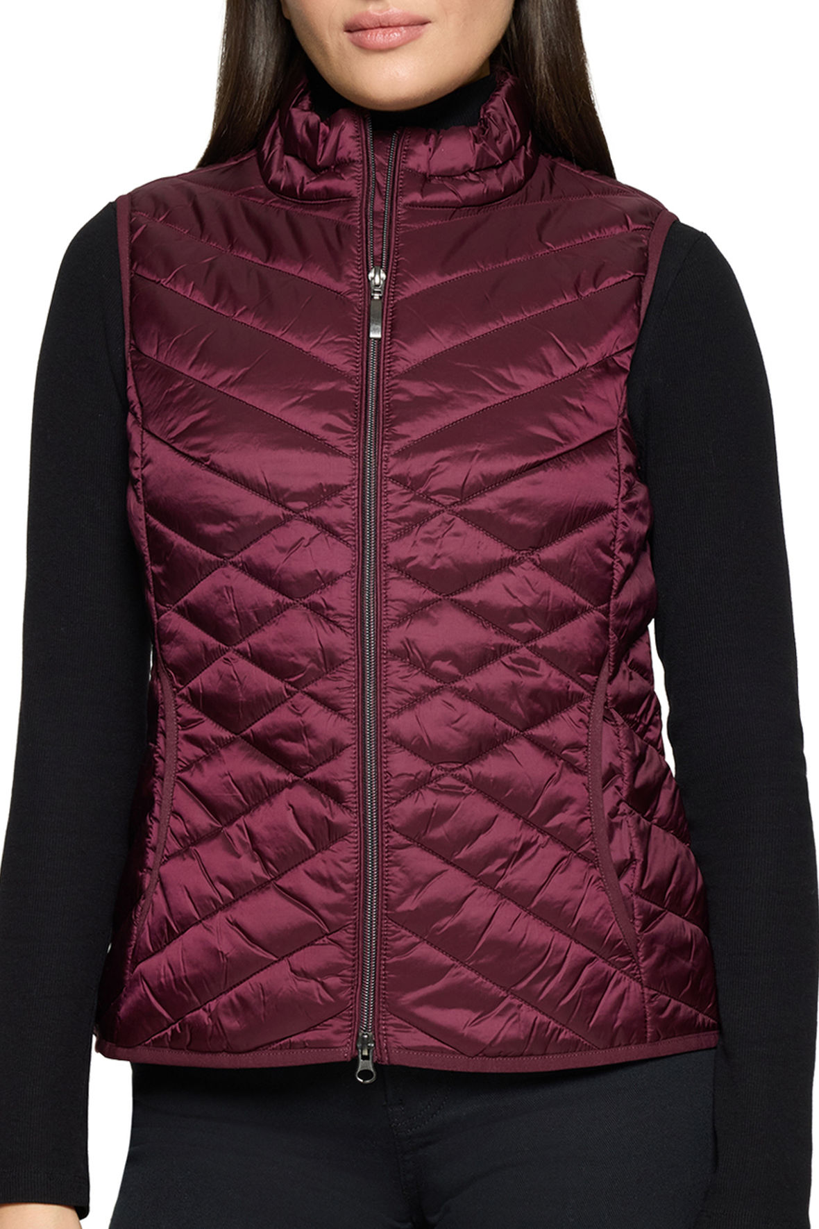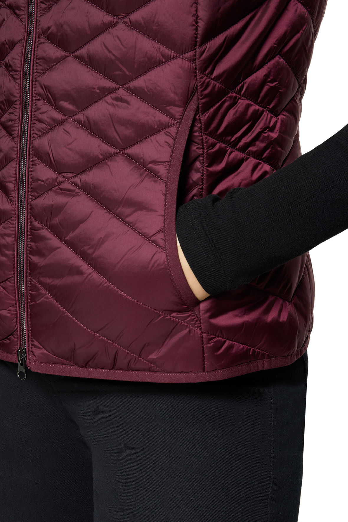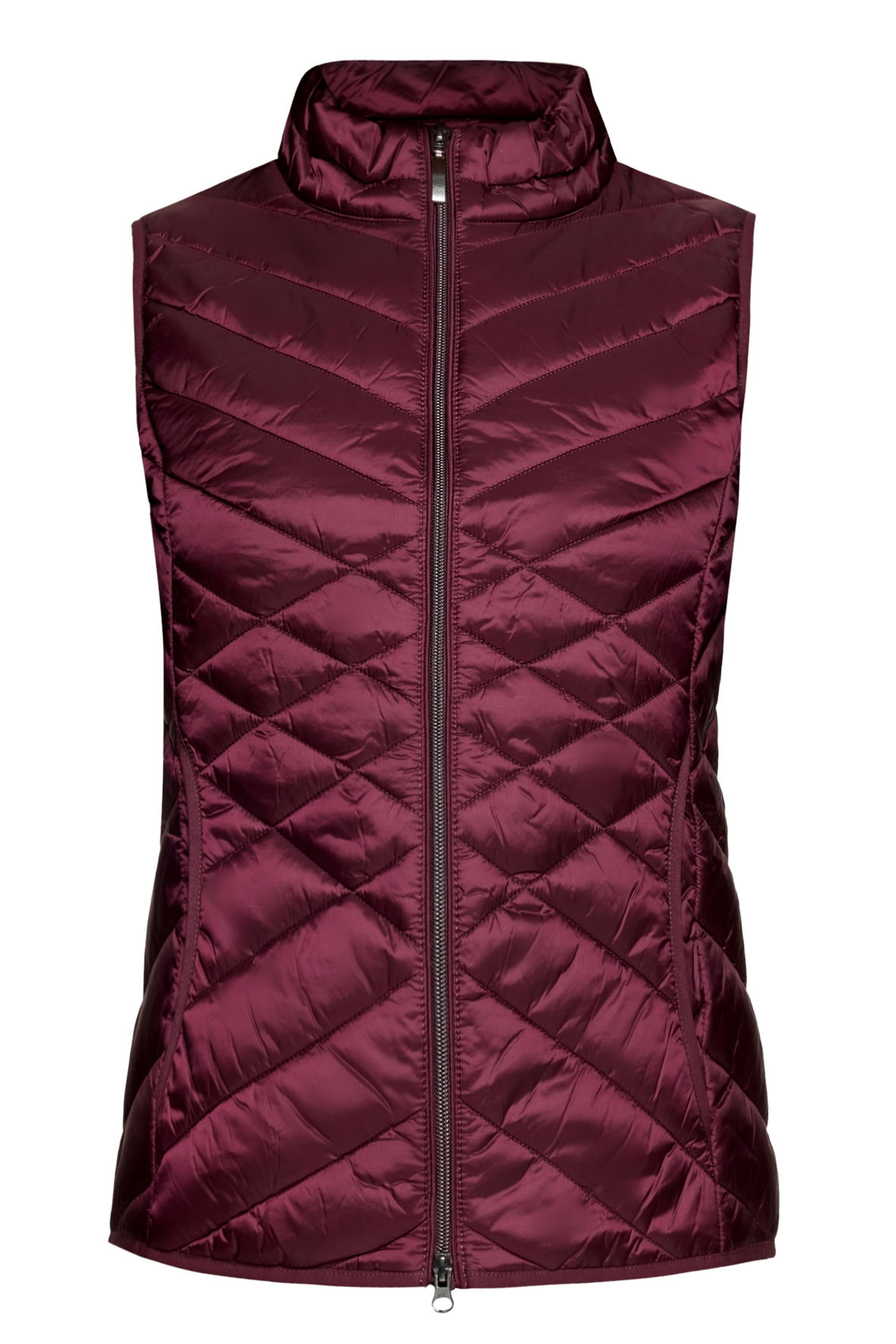 Quilt vest fra Betty Barclay med varm polyester vattering. Quilt mønster der har flot indvikning på figuren. Lavet med tone i tone piping på kanter og så har den tovejs lynlås. Dejlig høj i kraven og så har den lommer både udvendigt samt indvendigt. En vest med skindende overflade som passer så smart til hverdagen. Slut med at fryse under en lidt tynd jakke eller bare benytte den i overgangs perioden samt ind i sommeren. Ja den er helt uden årstid og bliver derved ved med at gøre sig gældende år efter år. Den er størrelsessvarende.