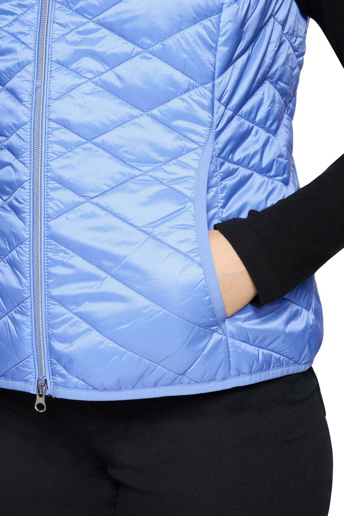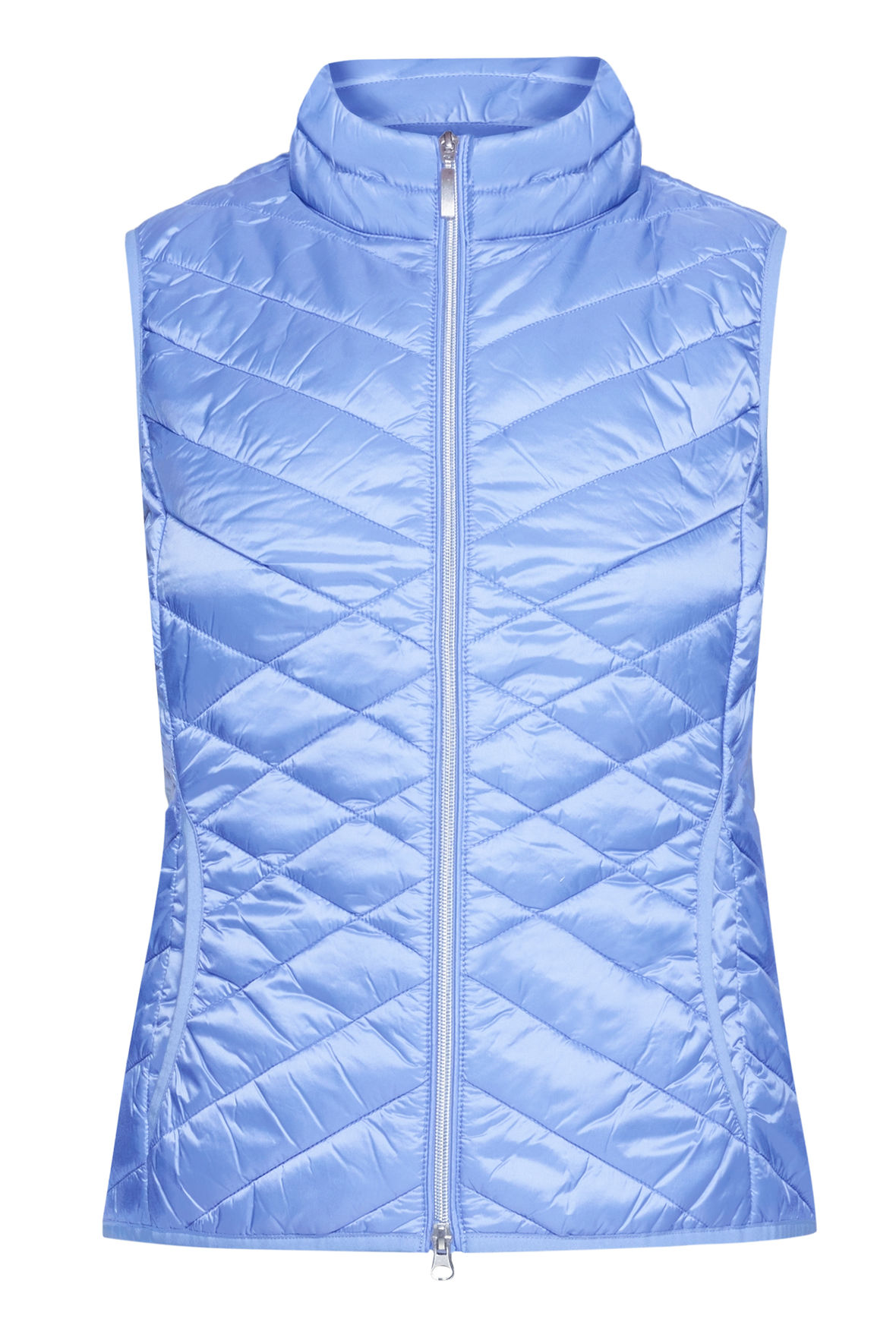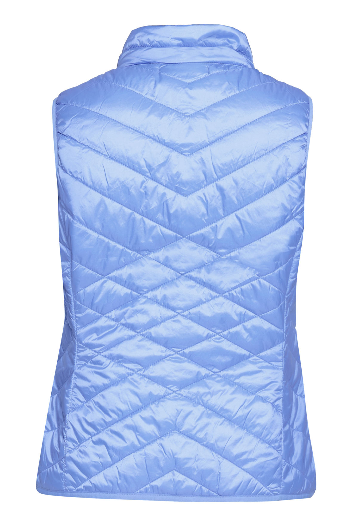 Quilt vest fra Betty Barclay med varm polyester vattering. Quilt mønster der har flot indvikning på figuren. Lavet med tone i tone piping på kanter og så har den tovejs lynlås. Dejlig høj i kraven og så har den lommer både udvendigt samt indvendigt. En vest med skindende overflade som passer så smart til hverdagen. Slut med at fryse under en lidt tynd jakke eller bare benytte den i overgangs perioden samt ind i sommeren. Ja den er helt uden årstid og bliver derved ved med at gøre sig gældende år efter år. Den er størrelsessvarende.