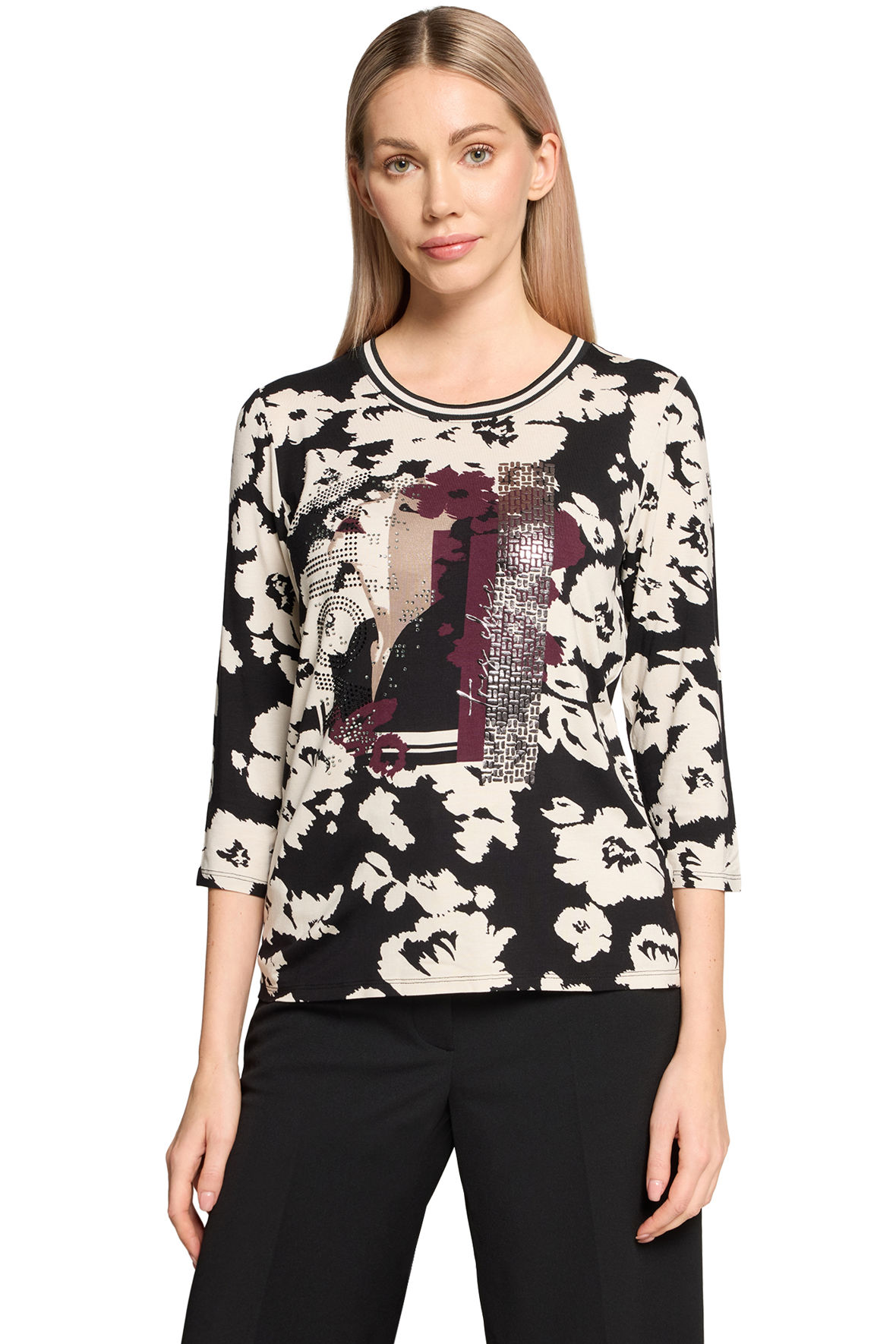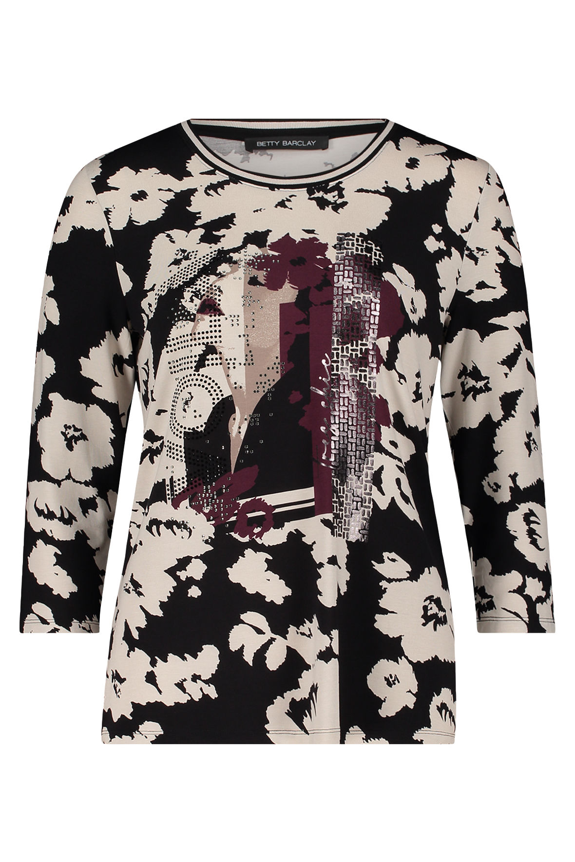 "Sådan en af de små hurtige" fra Betty Barclay, tænk sig vi har kunder der kommer ind i butikken og siger sådan. Men af og til er det også bare lige det der skal til, den kræver ikke så megen overvejelse. For sort, cream og mørkerød er jo sæsonen. Printet er sort bund med cream print i abstrakte blomster, og som lidt "spravl" har den fået et lifligt drys af søvlprint og similisten, det er bare altid flot. Den er med sporty kant i halsen og ærmer i 3/4 længde. Nu ved du hvordan en af de små hurtige ser ud ;-) Kvaliteten er let viskose som gør den som skabt til flerlags løsninger.