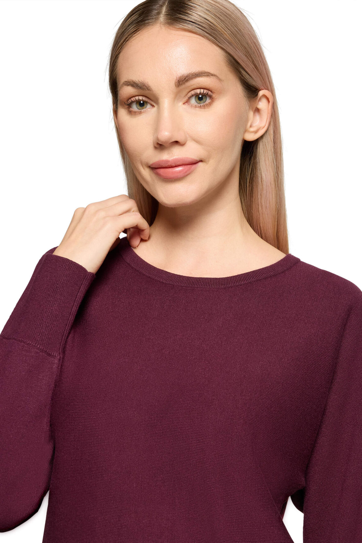 Det er vanvittigt hvad der kan lade sig gøre til prisen. Her er du i en finstrikket viskose, en stabil viskose, den ændrer ikke farve, facon og krøller slet ikke. MEN det er der så mange der kan, den her har Betty Barclay lavet som hel forside og hel bagside der er samlet i siden, det ser så vildt godt ud at samlesømmen udgår fra halsen og lige ned til håndled. Det er lige før jeg kniber en tåre ;-) Den har rund halsudskæring, ekstra brede manchetter og slutter stærkt ved hofter med bred kant der går over i en sløjfe som du selv kan binde. Den er på alle måder sofistikeret, bærer elegancen og leverer bare den god fornemmelse når du tager den på.