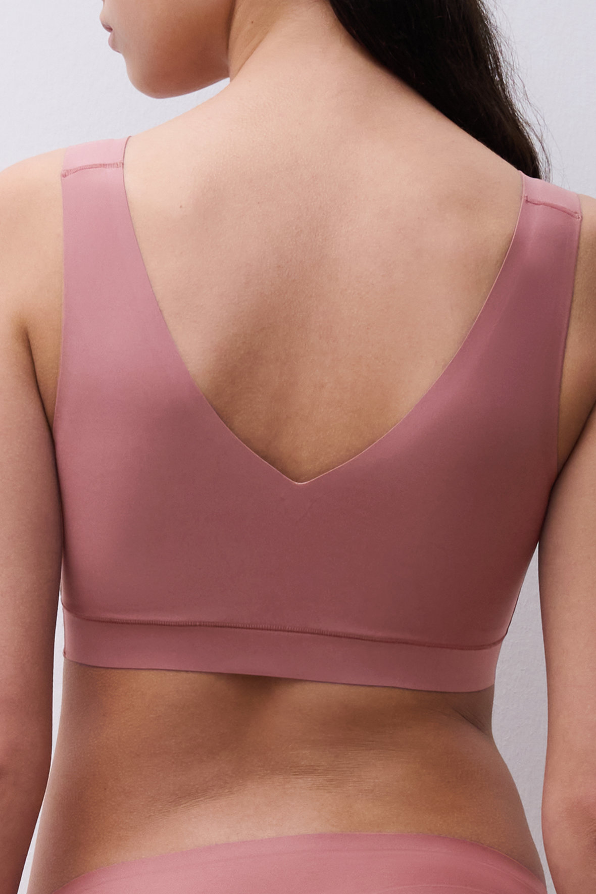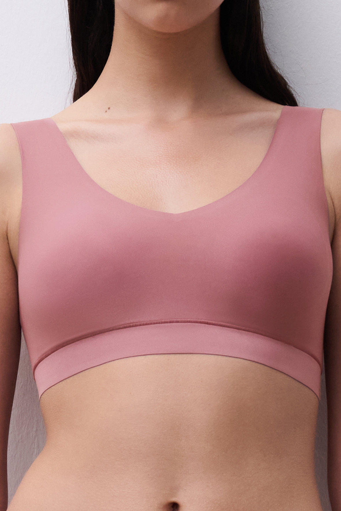 Chantelle Soft Stretch padded top er den her lækre top med foring/vattering i skåle, brede stropper der er lavet i en seamless mikrofiber med et fåtal af syninger. Kanter er laserskåret og limet i det omfang at det er holdbart. Den er derfor fantastisk under tætsiddende tøj hvor den ikke bliver synlig. Den er åndbar, komfortabel og blød til dig der ønsker en naturlig barm. Den har v-udskæring. Den er bedst egnet til barmen mellem A og G skål. Mærk selv friheden. Den har flex størrelse og spænder derfor over to str. Øko-Tex certificeret.