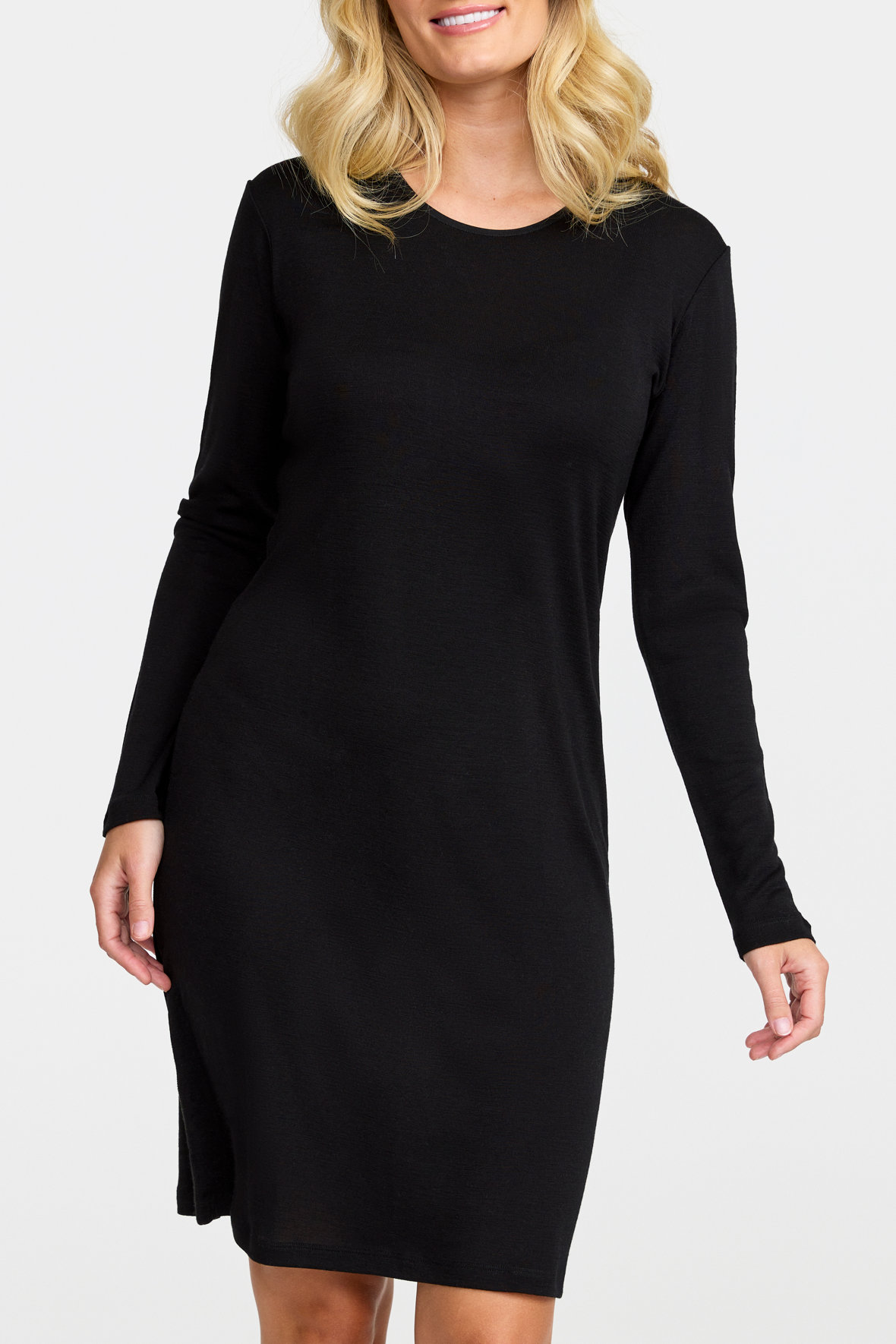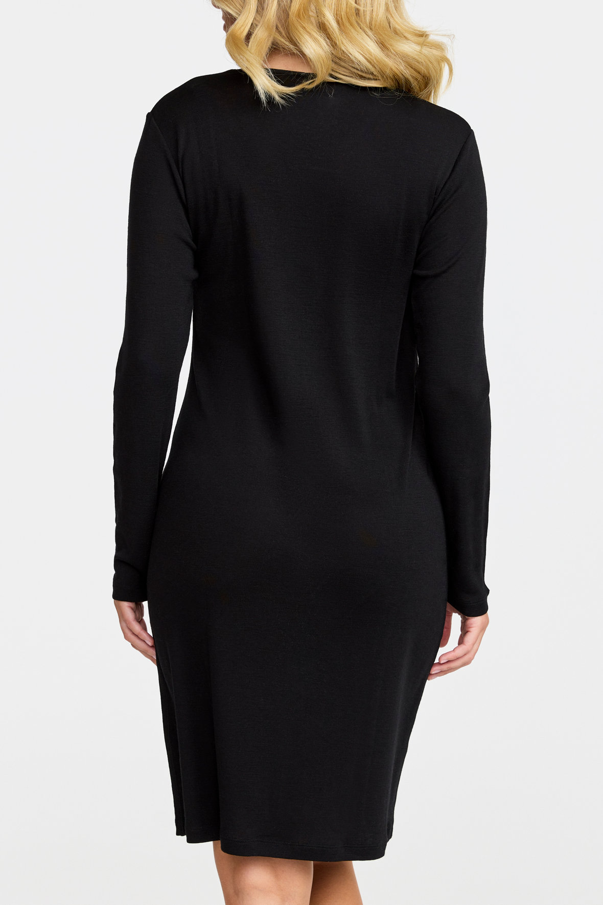 Nemlig den kan begge dele. Victoria som serien hedder er lavet i en dejlig let Merinould. Med lange ærmer og rund halsudskæring samt knælangt snit. Den er temperaturregulerende og åndbar. Benytter du den som underkjole vil kjolen du har udenover glide nemt henover. Lad det være slut med at fryse når det er mest koldt.