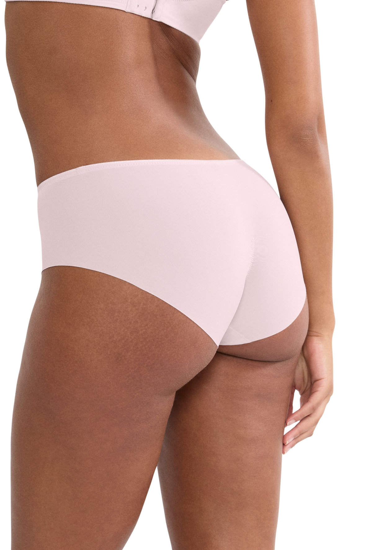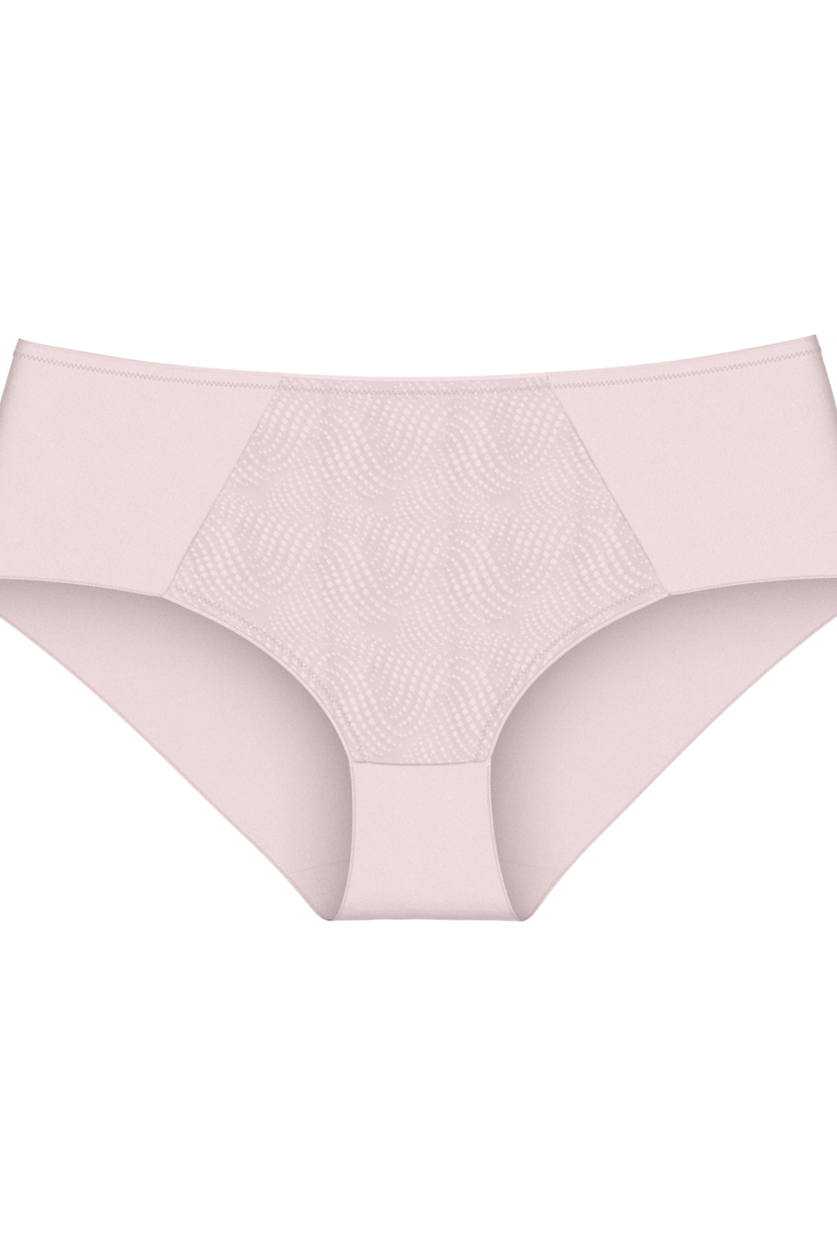 Minimizer Hipster trussen i en så søde nye farve Tender Pink. Den er usynlig under tætsiddende tøj. Den erså smuk med Jacquard vævning på forstykket og lige under blank satin vævning ved benskæringer. Elastisk mikrofiber på resten. Super flotte hoftestykker og så en præsentation af numsen der tager kegler, trussen er nemlig udstyret med rynket elastik mellem balderne. Den er laserskåret og har en absolut minimum af syninger. Bred bomulds kile i buden.
