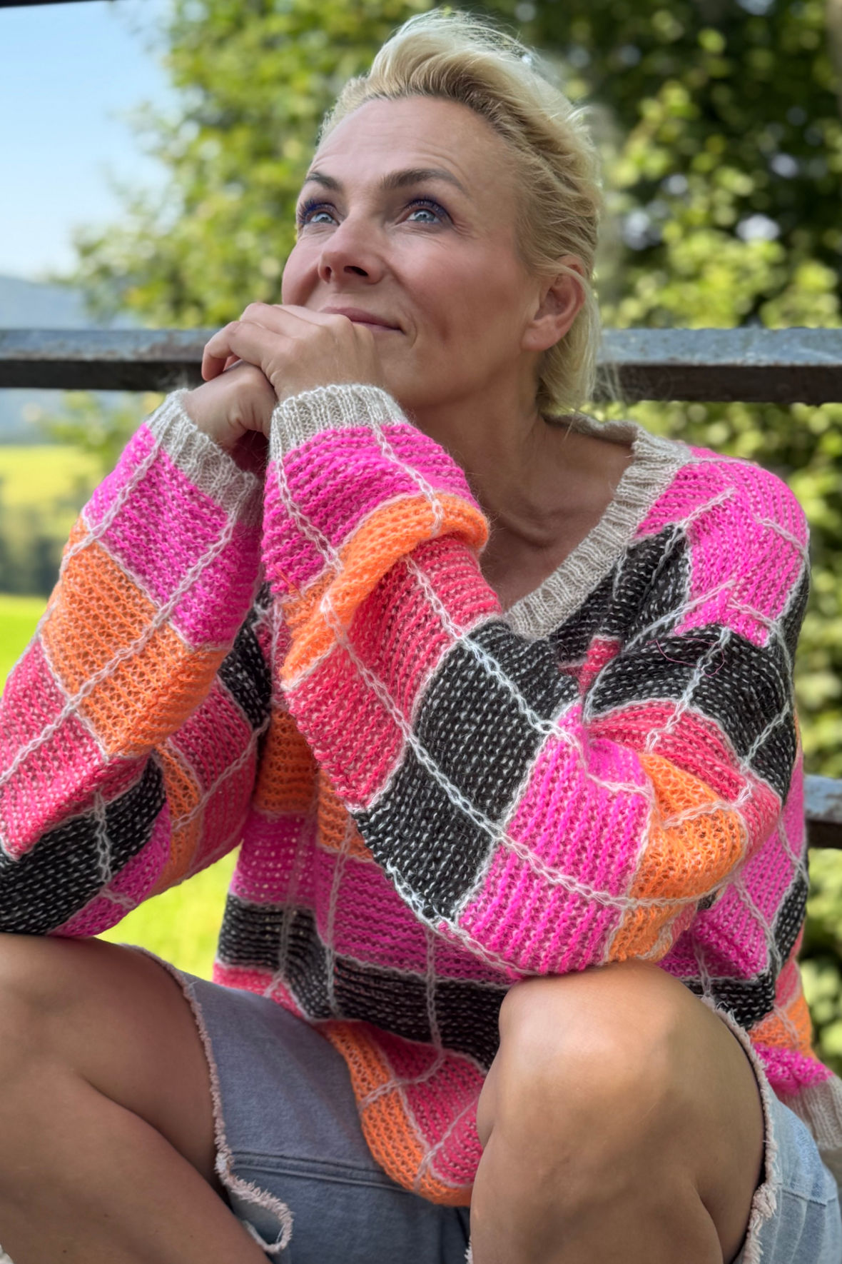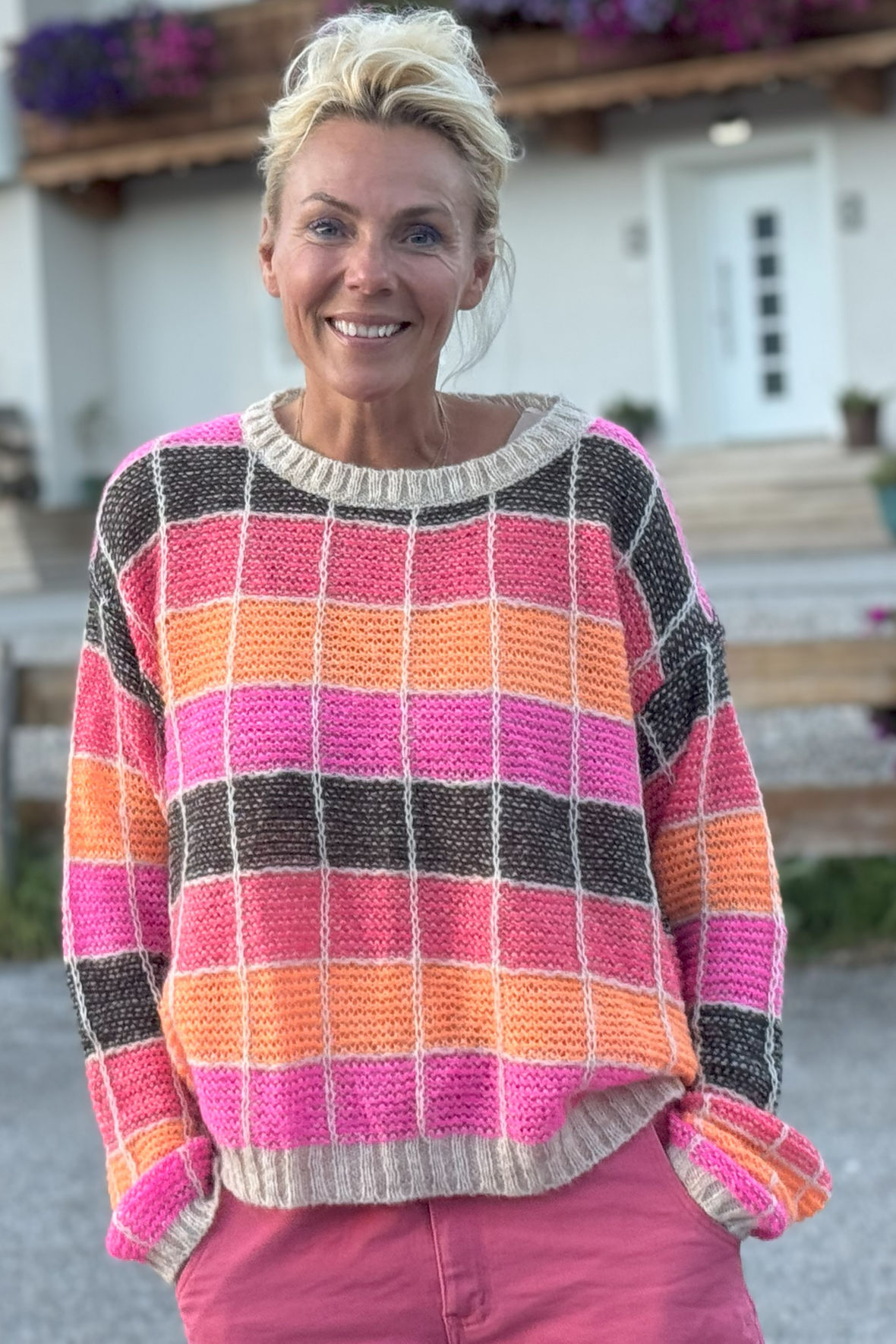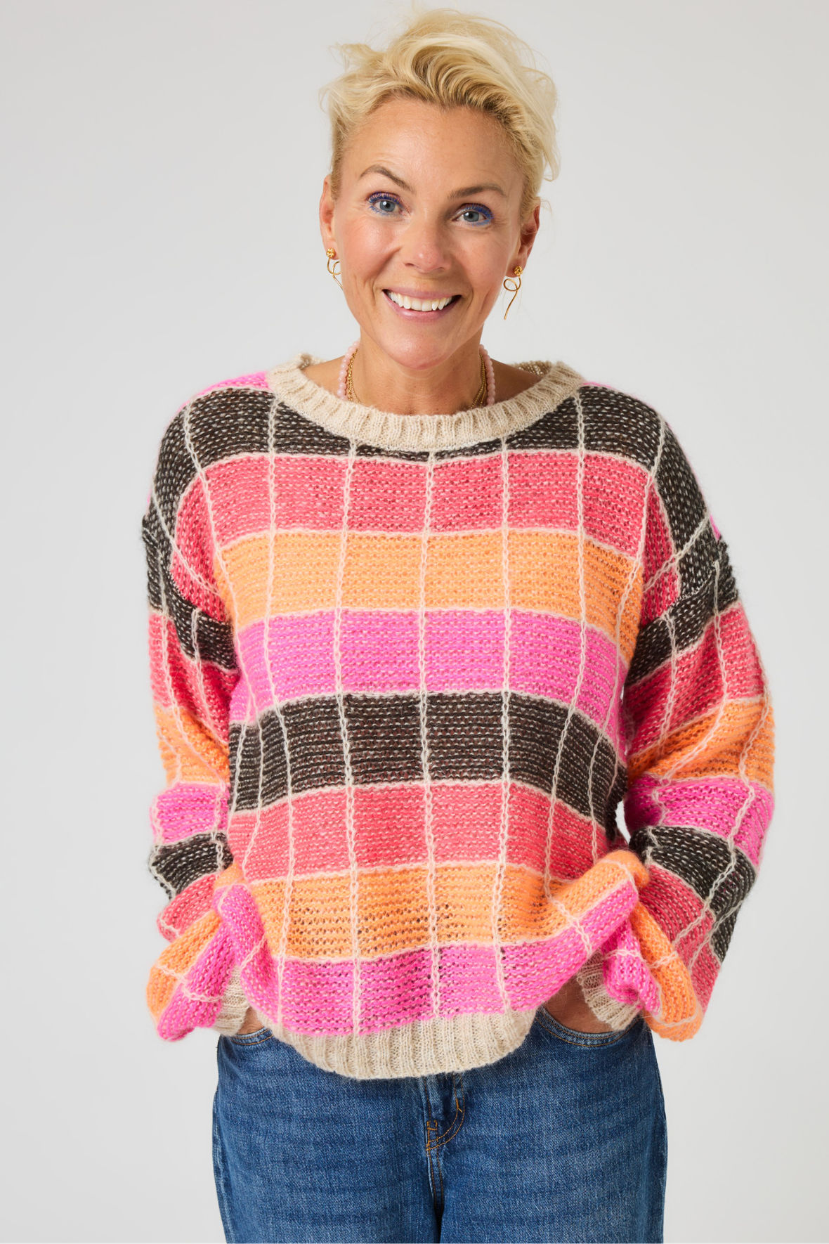Der er øjeblikke, hvor alt, du har brug for, er at trække i noget, der føles som et kram. Og, nede på Alpehotellet Edelweiss ser det altså sådan ud til fyraften. Lene er trukket i “Ro på"-sweateren, der er skabt til de dage, hvor du giver dig selv lov til bare at være – uden planer, uden hast, bare ro. Lene Beier har designet denne klassiske, men legende strik, hvor hver eneste detalje vidner om kvalitet og omtanke. Den bløde italienske mohairblanding giver et luftigt og luksuriøst udtryk, der indbyder til varme stunder og et langsommere tempo. “Ro på" er en påmindelse om at trække vejret og finde glæden i det enkle. Brug den, når du skal ud i verden – eller blive hjemme og nyde dagen i dit eget tempo. Den har rund halsudskæring samt lange ærmer, flot farverigt mønster og ribkanter. Den har en let, afslappet pasform, der giver både komfort og bevægelsesfrihed.
