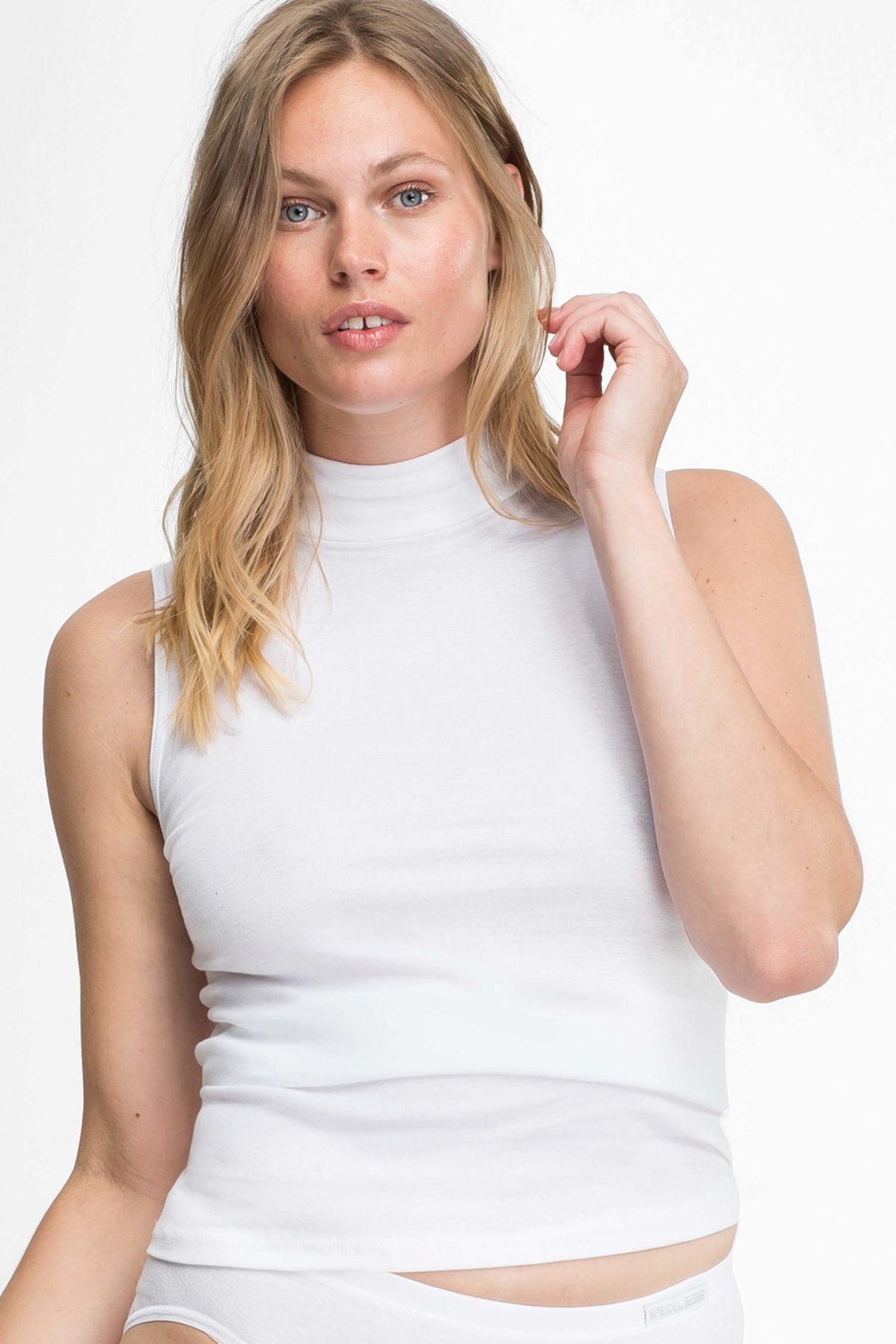 Cityshirt undertrøje lavet i økologisk bomuld som har mange anvendelsesmuligheder, den er glimrende under men også over. Med turtleneck hals, uden ærmer og med en tæt pasform. Uden sidesømme da den er rundstrikket. Meget holdbar kvalitet der også er åndbar. Rigtig god til alle kropstyper. Produceret i Ungarn af Speidel.