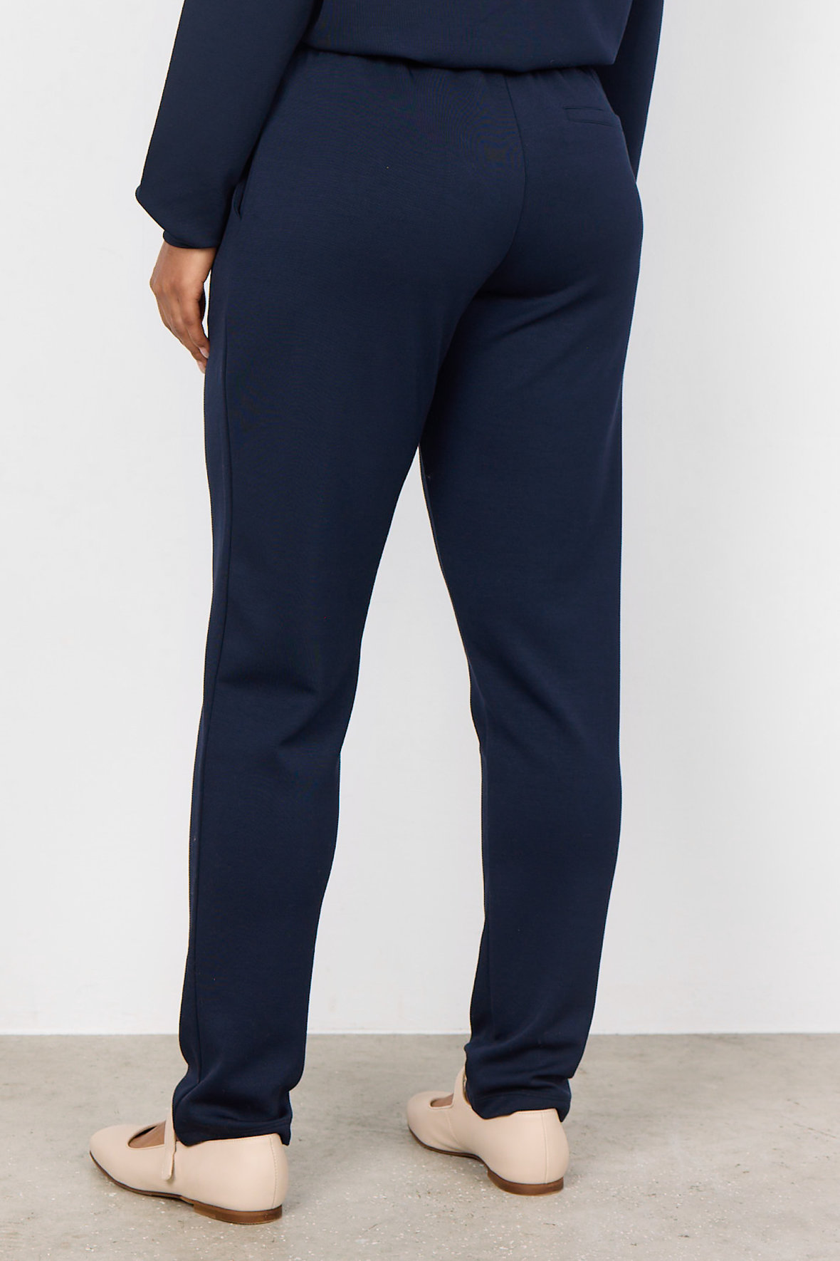 Sc-Banu allerede der ved du at det ikke kan blive blødere og mere komfortabelt i Soya regi. Sweatpants i den bløde blanding af modal og polyester samt elastan. Det er opskriften til ikke at have noget der driller dig og heller ikke giver "knæ". Kvaliteten er så nem at forelske sig i. De er med justerbar talje og har flad elastik fortil så det elegante look bevares. Du får franske lommer fortil og har en enkelt blændet paspellomme bag.