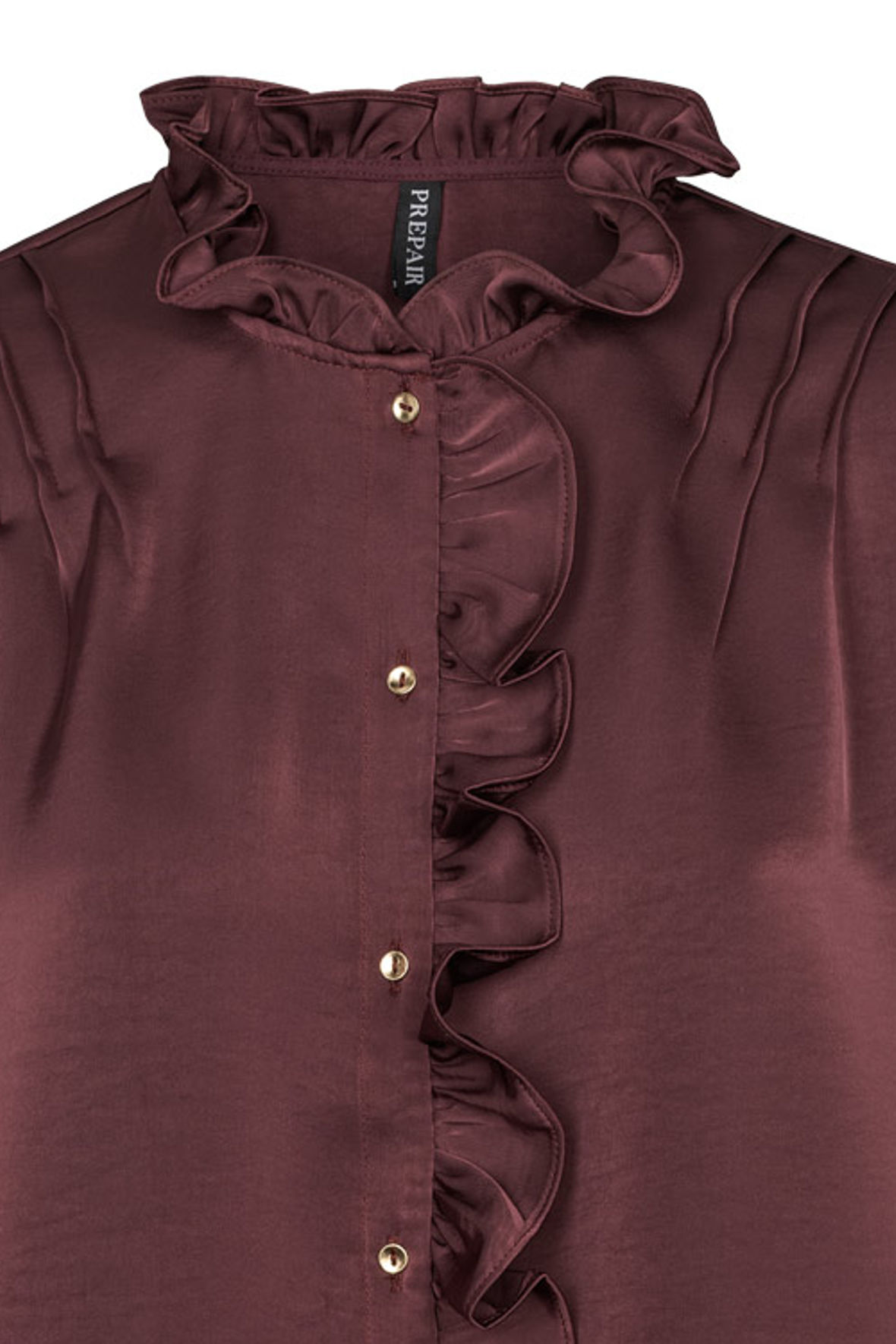 Pompøs er vel rette udtryk for Gaya skjorteblusen fra Prepair. Den er blevet så smuk i en fuldfed polyestersatin som giver den sarte feminine glød der skinner og som falder flot. Prepair er bare så gode til kvaliteten og de mange detaljer som forbliver dna'et. Gaya har flæsekrave der forstætter ned i knapstolpen med guldknapper. Bryst/skulderstykket er prydet med læg. Ærmer har volumen der rigtig kommer til sin ret med de brede smock manchetter. Fuldført ikke. Ryggen er lavet helt glat uden skillesøm.