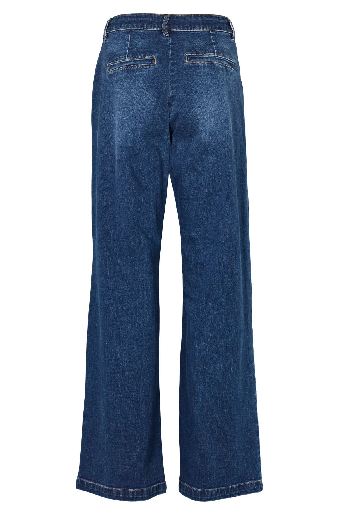 Malia Jeans fra Prepair fanger trenden med flare - altså vidde ved ankler - og har også løse lår. Buksen har stræk men er ikke nær så meget som når de skal sidde tæt, de rer også elastisk linning med knap, gylp, lynlås og bæltestropper. De er lavet med franske forlommer og har paspoleret baglommer til pynt. De er lavet med tone i tone stikninger på ben og har orange øverst ved livet.