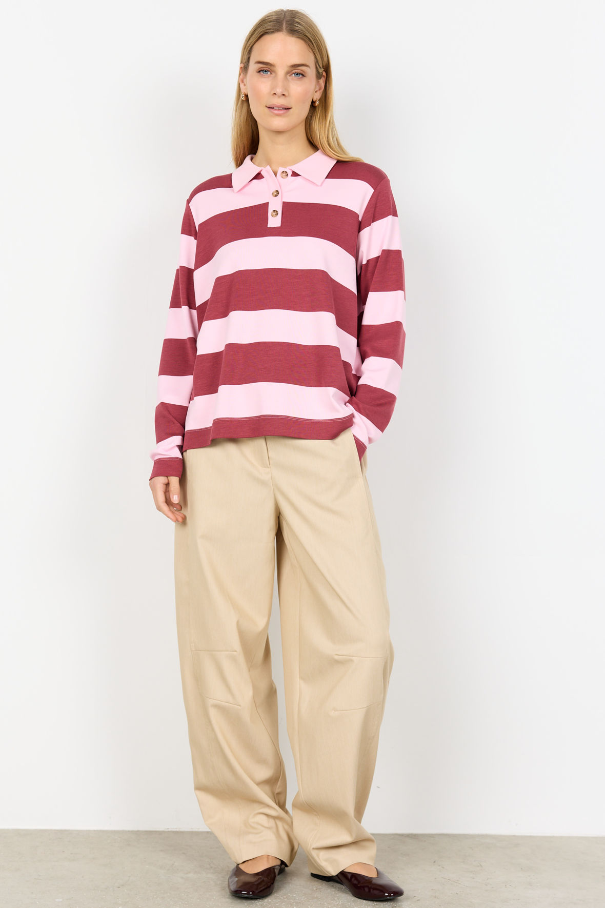 Hvis du er til det bløde så er sc-Barni kvaliteten du skal forkæle dig selv med. Den er indbegrebet, lavet i en blanding af Modal og polyester. Den holder sig fint i form og er så nem at have med at gøre. den krøller heller ikke. Du vil opleve den som var det en sweater også hvad angår plads. Den har polo krave og kort knapstolpe, har lange ærmer og et helt løst snit der falder flot, og så er den lang. Blokstriber går du ikke galt i byen med det er altid drønsmart og fanger trenden med striber der kommer i højeste gear.