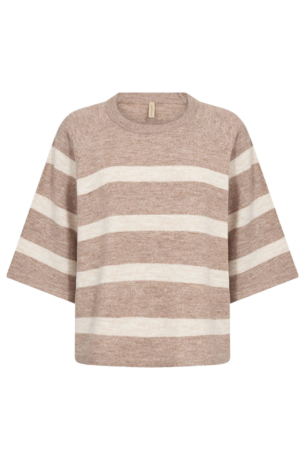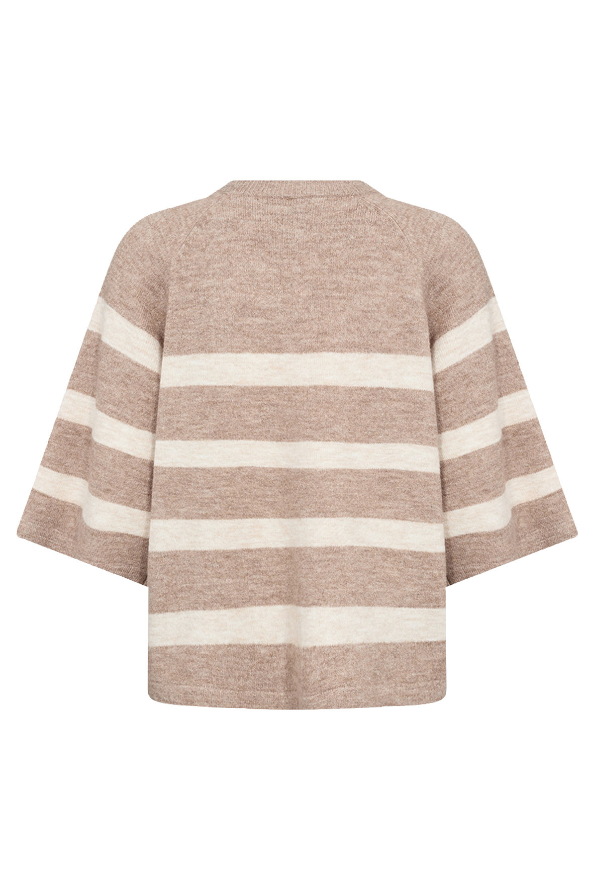Vildt flot og elegant strik hverdags stikket pullover med flotte afdæmpede striber og en krop der ikke er så lang. Sc-Orlean er lige til at gå til for den er med rund hals, har påsatte raglan ærmer der er løse og i 3/4 længde. Vandrette brede striber bidrager til det elegante og en ro for øjet. Kroppen er løs. Kvaltieten er en mellem tyk en af slagsen med melange garn der er blandet så den ikke ændrer sig eller kradser. Der er ikke så meget at betænke sig på da prisen også er i bund, den fanger trenden med stribe og oversize look. Men her vil du føle dig tilpas, det er jeg ret sikker på.