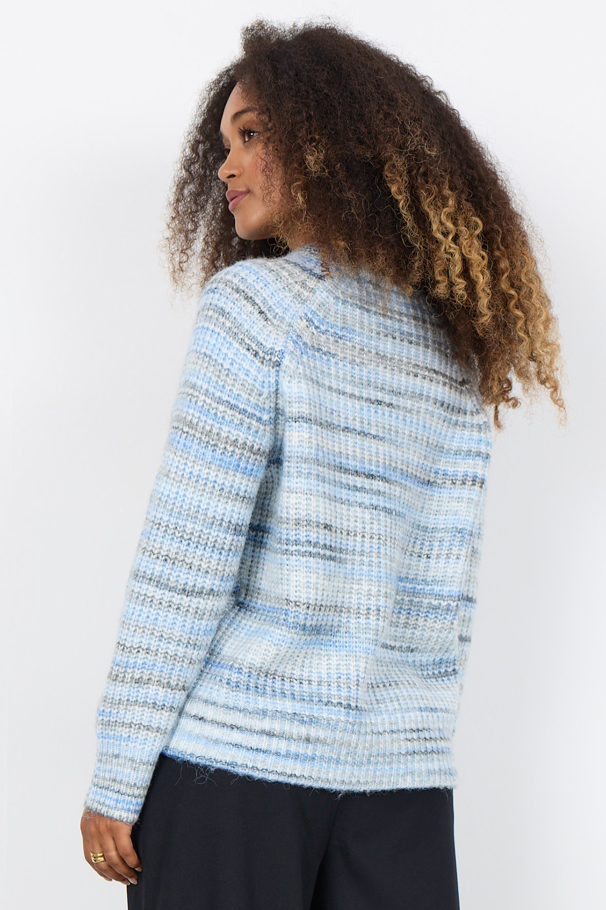 Med sc-Berete bliver det straks mere vamset, hun er nemlig en smuk strikbluse med ribmønster. Rund omkring halsen og med påsatte raglan ærmer i fuld længde. Den er dejlig kraftig og er lavet i en kvalitet der holder sig flot, den kradser heller ikke. Flotte farver der er sat sammen i en dynamisk kombination. Alt i alt en casual hverdags pullover som nok skal holder dig varm og flot. Snittet er løst og komfy.