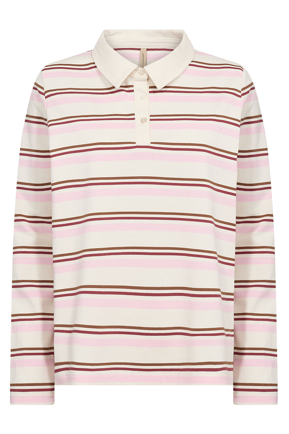 Langærmet t-shirt med polo krave og kort knapstolpe der har striber i forskellige farver og bredder. Sc-Base har en loose fitted pasform du hurtigt finder dig til rette i, der er god længde på kroppen så der er lille slids i siden. Den er lavet i ren økologisk bomuld og du vil opleve den som lidt mere kraftig/gedigen.