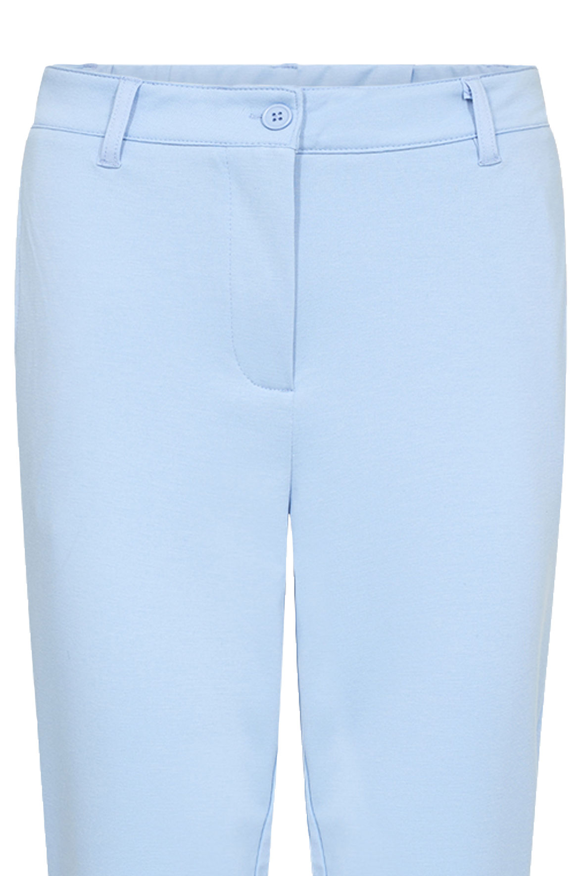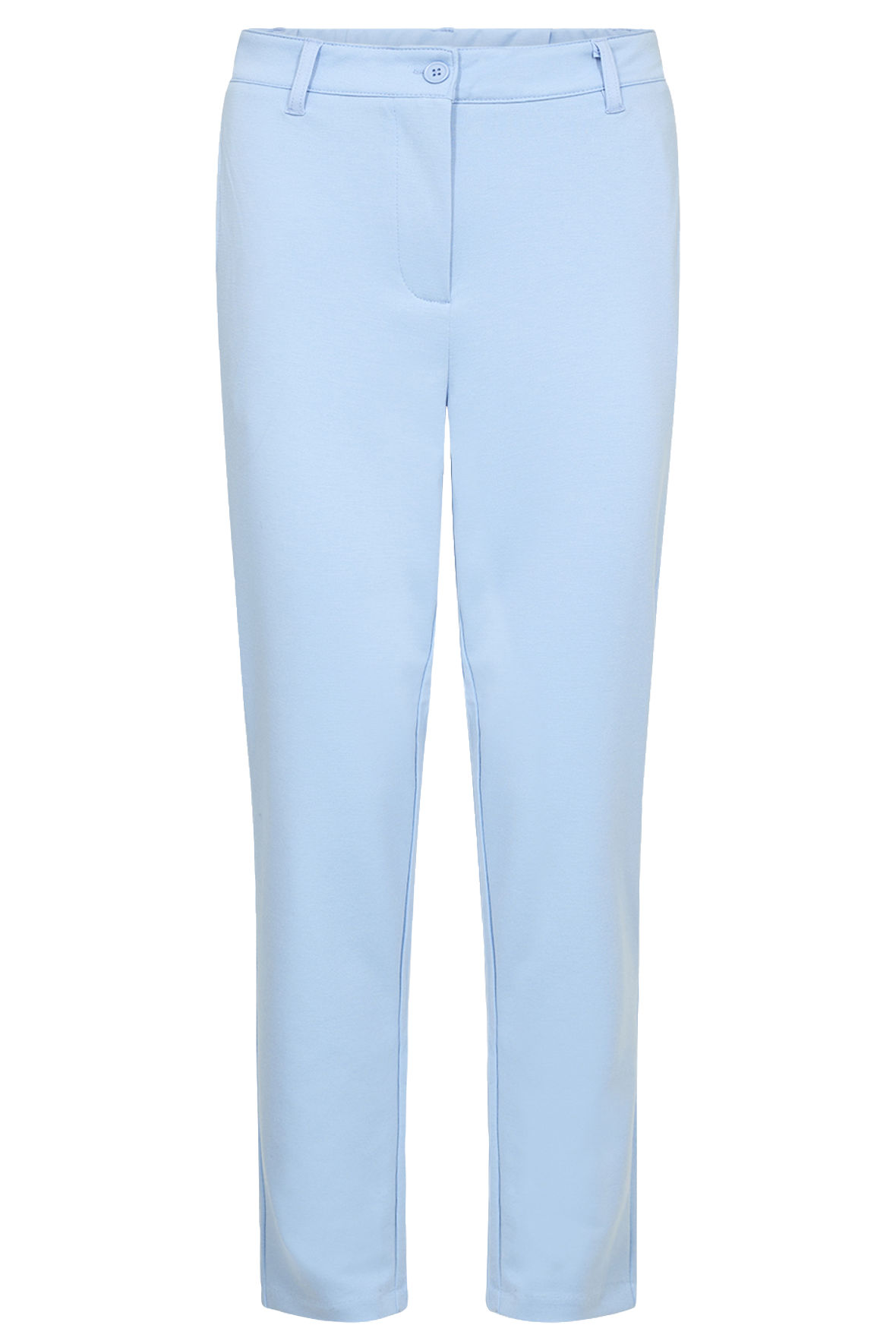 WasabiConcept bukserne der passer til blazeren. Det er en performance buks lavet med business look elegant enkel og i en lækker kvalitet du kan holde ud. Fri bevægelighed og komfort opnås ved at blande garner nærmest som en joggingbuks. Pasformen kommer til sin ret hvis du har kurver ;-) den er med middelhøj talje og har et snit der går tæt på, det er godt for figuren og øjet. Med lommer for og paspoleret bag med knap. Har knaplukke, gylp og lynlås samt bæltestropper. Elastisk linning. Har du brug for at suite op køber du blazeren til wupti og du er klar til at tage magten. Da der ikke er taget billeder af den på model i lyseblå, ja så får du lige samme model i anden farve. Flot ikke ;-)