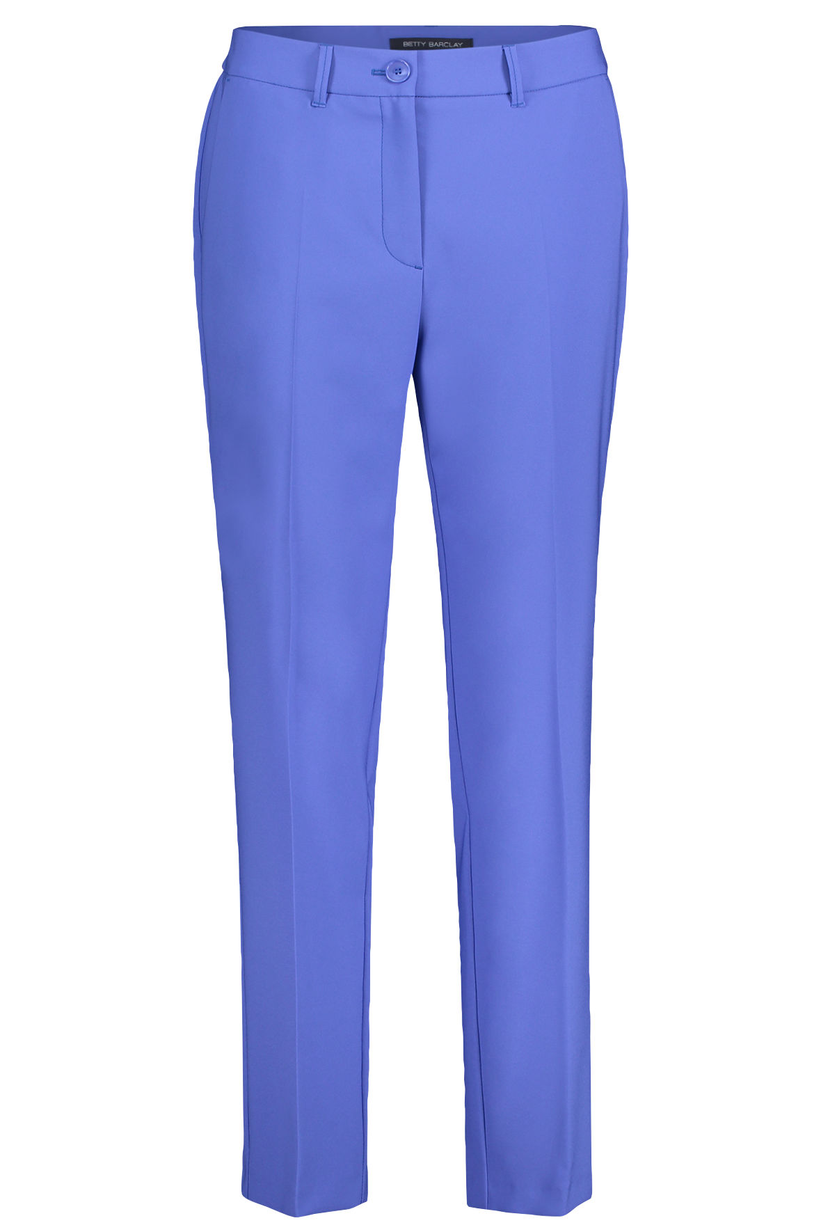 Modellen hedder Nele Relaxed, nuvel det er en mere formel eller læs pænere buks, med en afslappet komfort. Og, farven er helt fantastisk, nærmest elektrisk blå med satin skær. De har fast linning med bæltestropper samt knap og lynlås. Franske lommer foran og paspolerede lommer til pynt bag. Med pressefold for og bag der er selvvalgt. Den er uden stræk og er lavet så den ikke krøller. Lavtaljet med kortere benlængde og et snit der er smalt. En dejlig buks til hverdagen og som så nemt kan gå i vaskemaskinen.