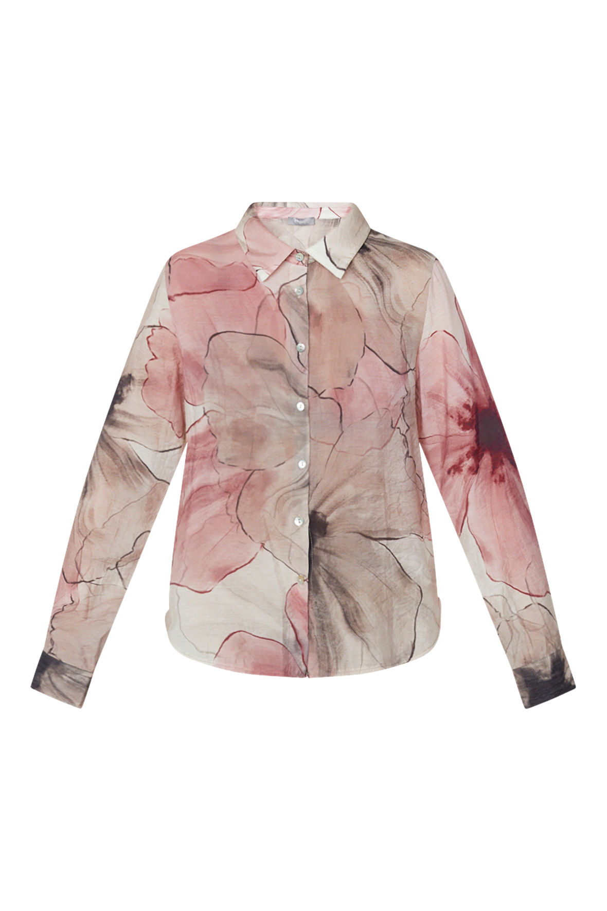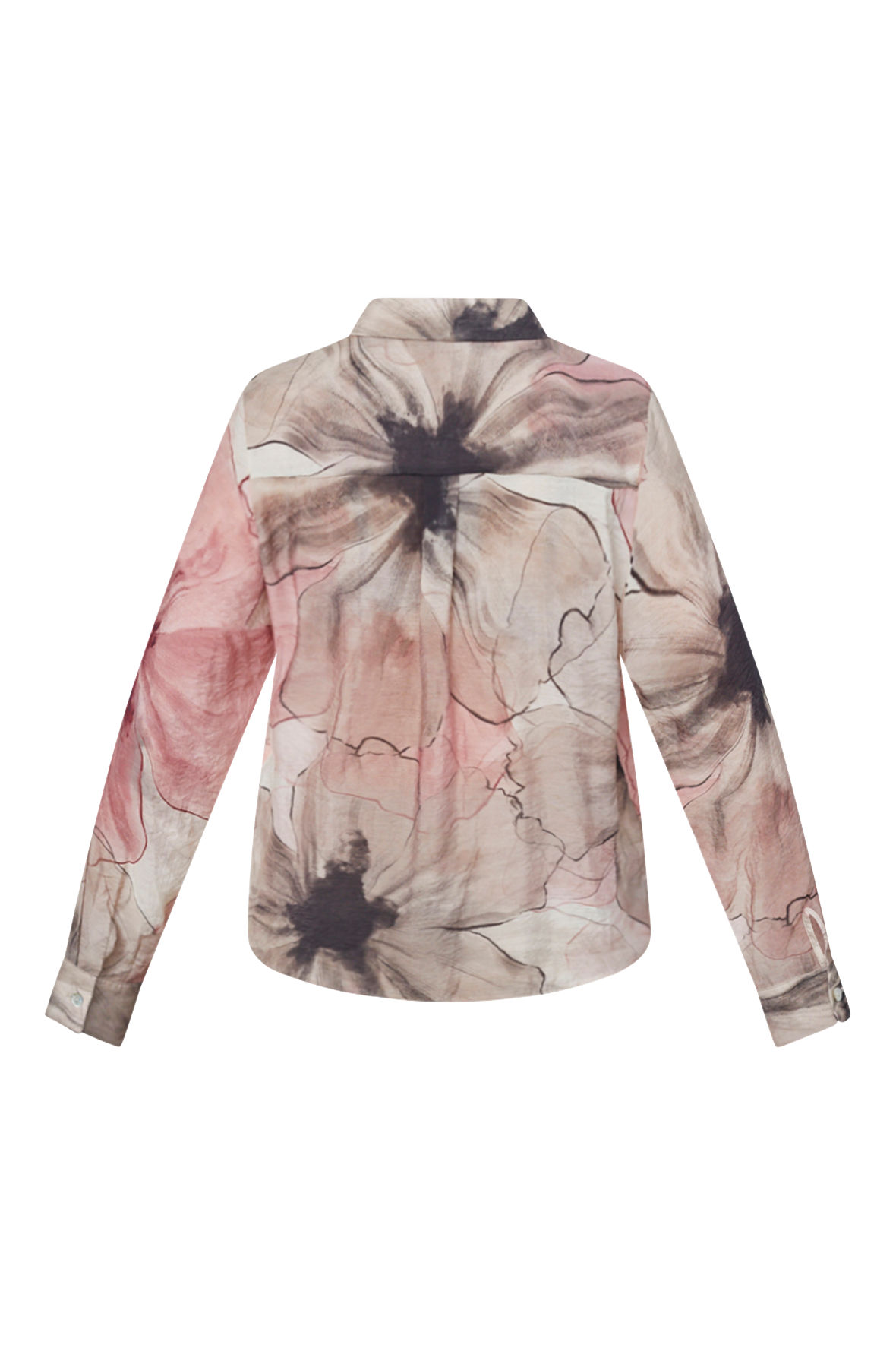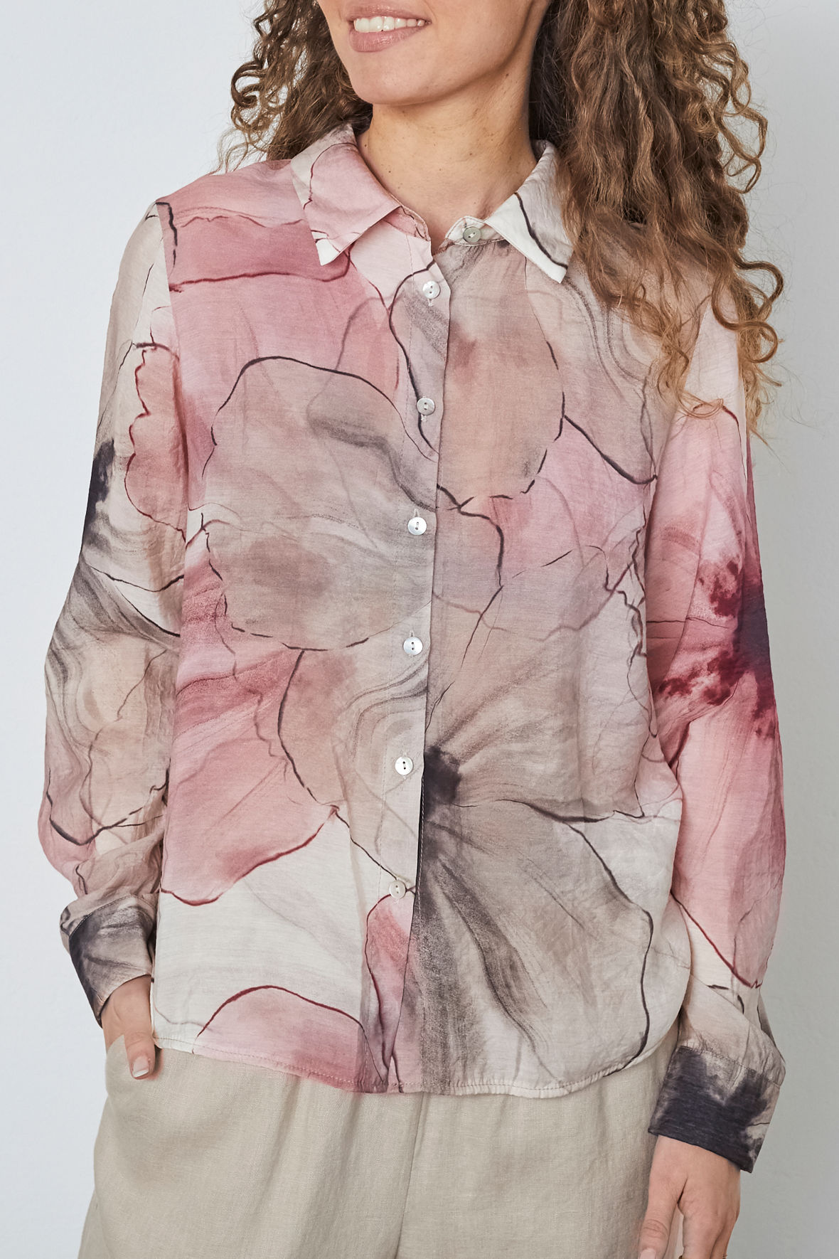 Printskorten der blev til på baggrund af kjolen i samme subtile look. ETKarli er har samme lækre feeling mod huden for en ordentlig viskose kvalitet fornægter sig íkke. Samme flotte forale tema. Den er med skjortekrave med cut away krave, og bemærk knapstolpen herunder med smukke perlemors knapper. Ærmer der går til håndled og slutter med knapmanchet. Med straight fit pasform der ikke går for tæt. Den runder nederst så den går lidt op i siden, wupti det giver lidt længere ben. Ryggen har skillesøm med læg, der lige netop er en praktisk detalje når nu den er fastvævet, det giver dig ekstra bevægelihed selvom den er loose. Elton har bare et gennemført instink detaljerne.