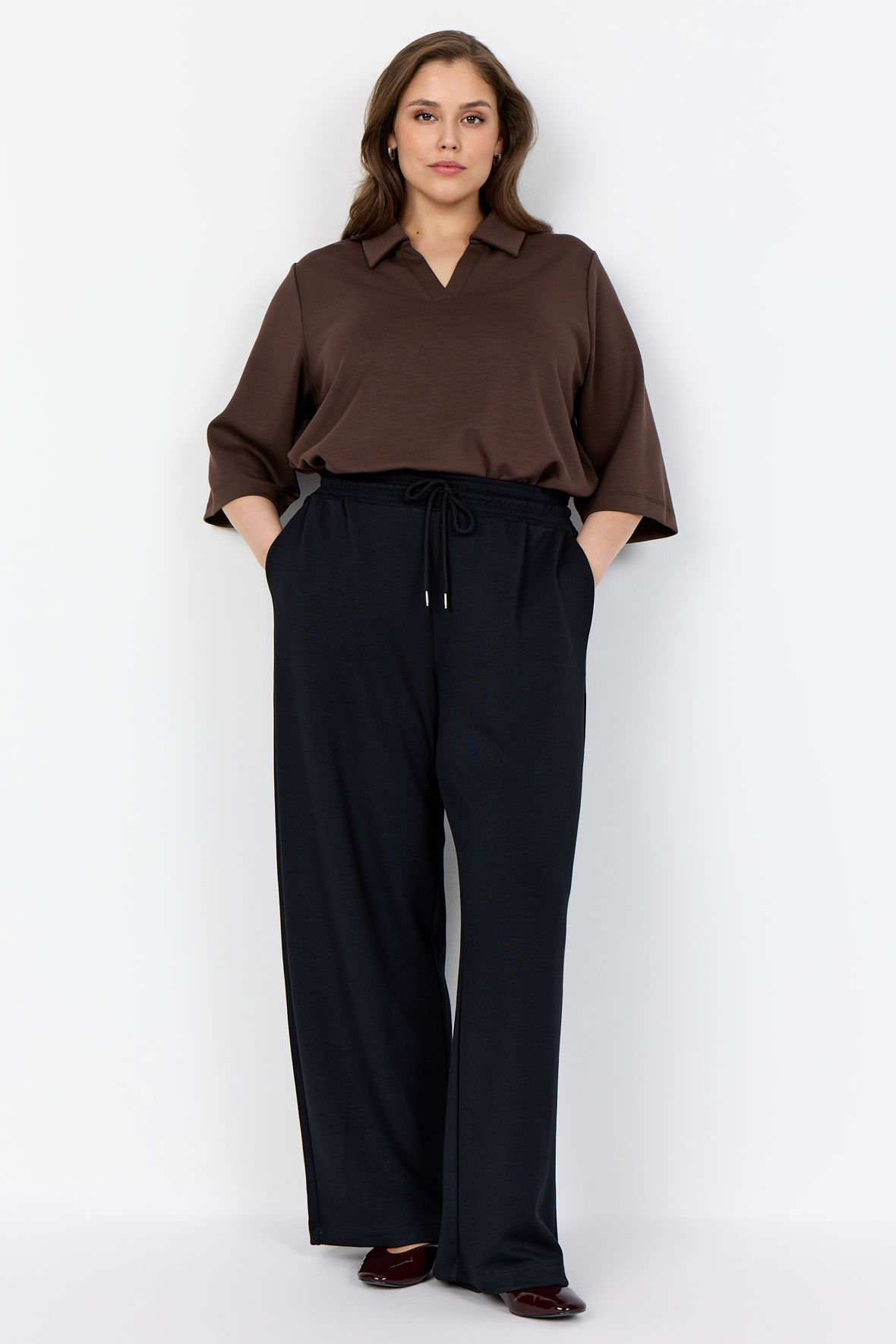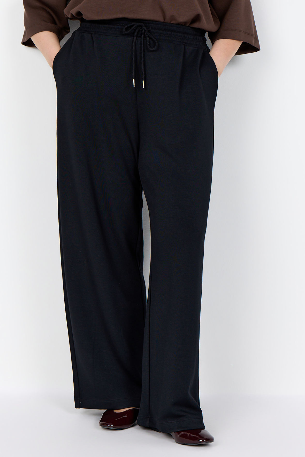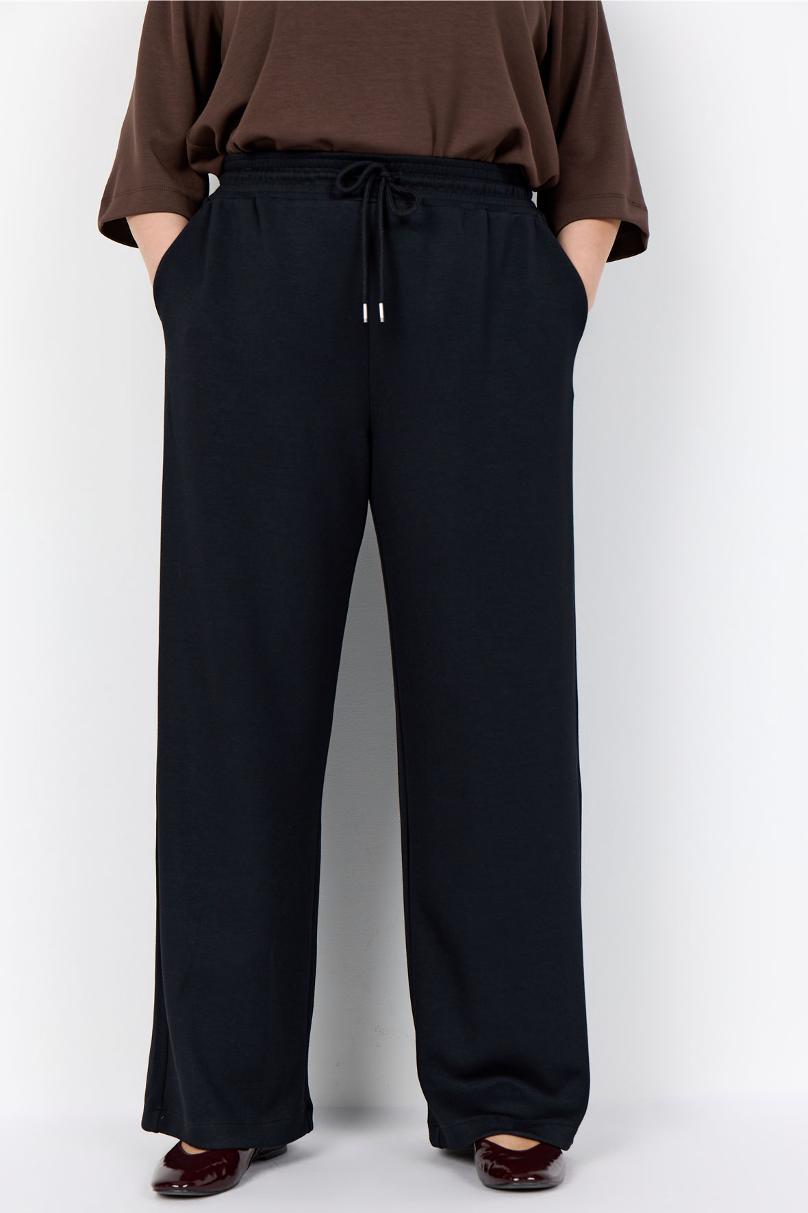Wa-Sabina er garantien for komfort, kvaliteten er Jersey altså en blød og strækbar der holder sig. Kuffert venlig, får ikke knæ og ændrer ikke farve. Den er så taknemlig, men den er fakisk også så flot. Den har et elegant look, hvis du lige sætter en overdel til der trækker op, og finder du en t-shirt er du klar til sofaen ;- ) De her styles der kan begge dele er bare så smarte. Buksen har bred elastisk linning der giver en god støtte og er med snører, herunder er der franske lommer. De har høj talje og lange lige ben der giver et flot slankt udseende.